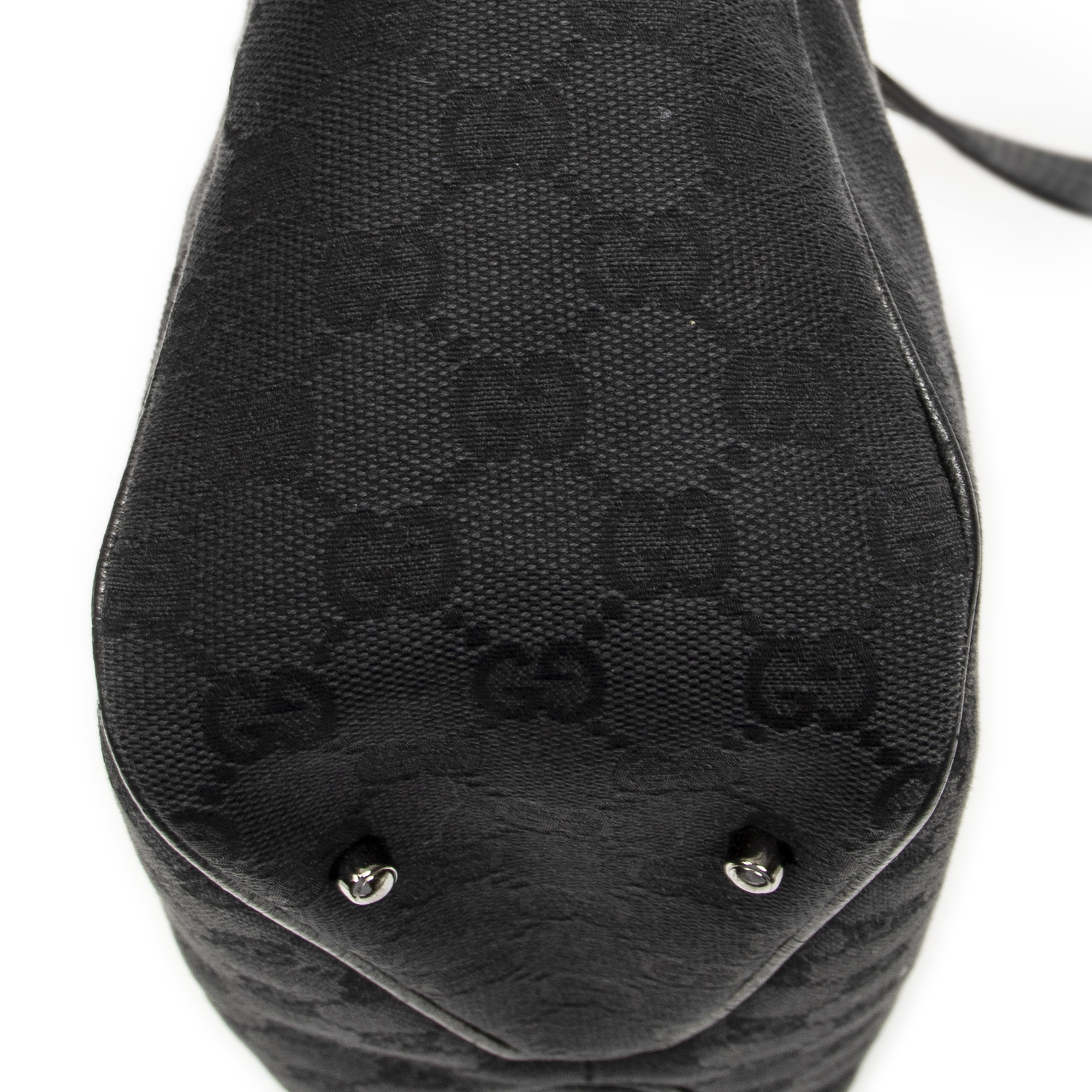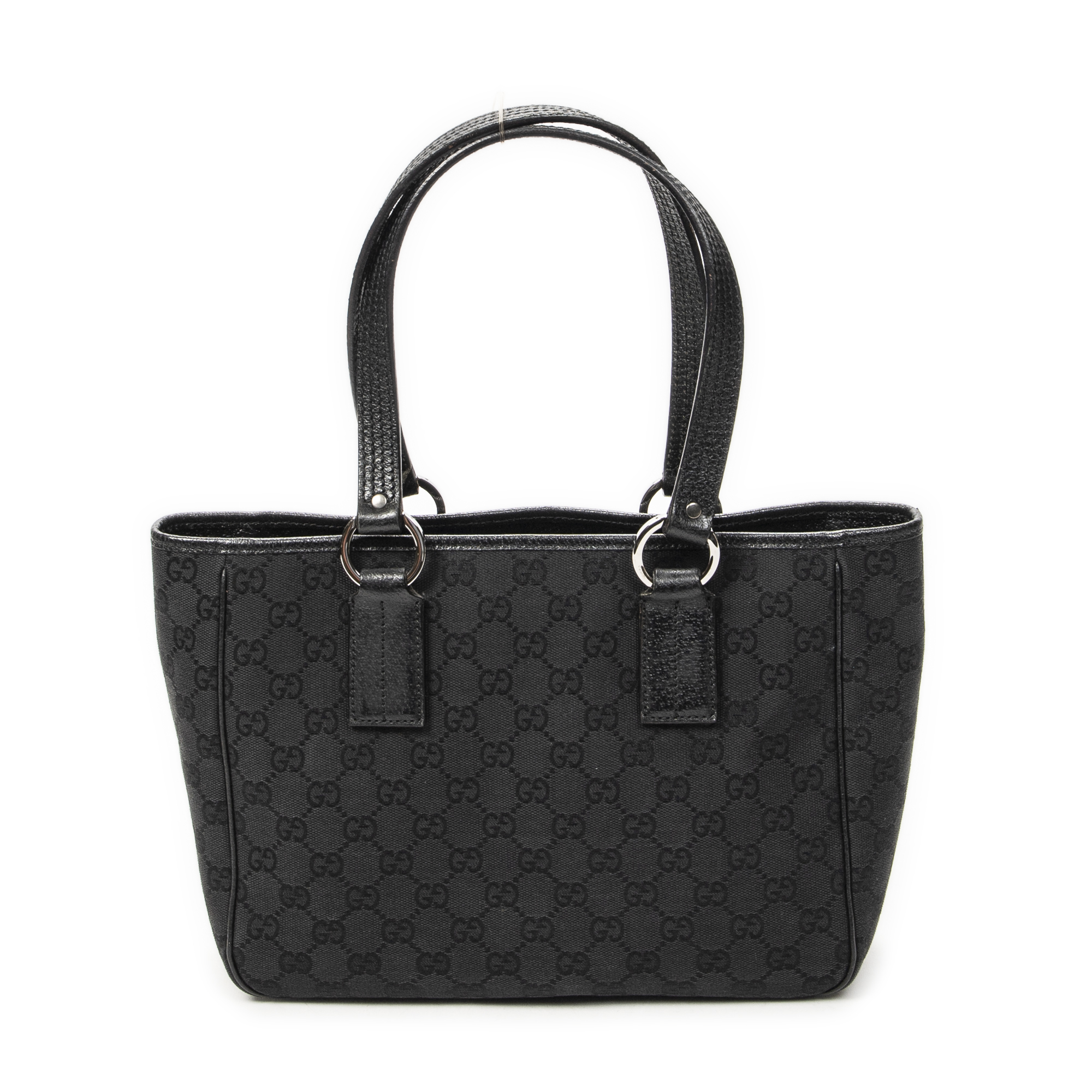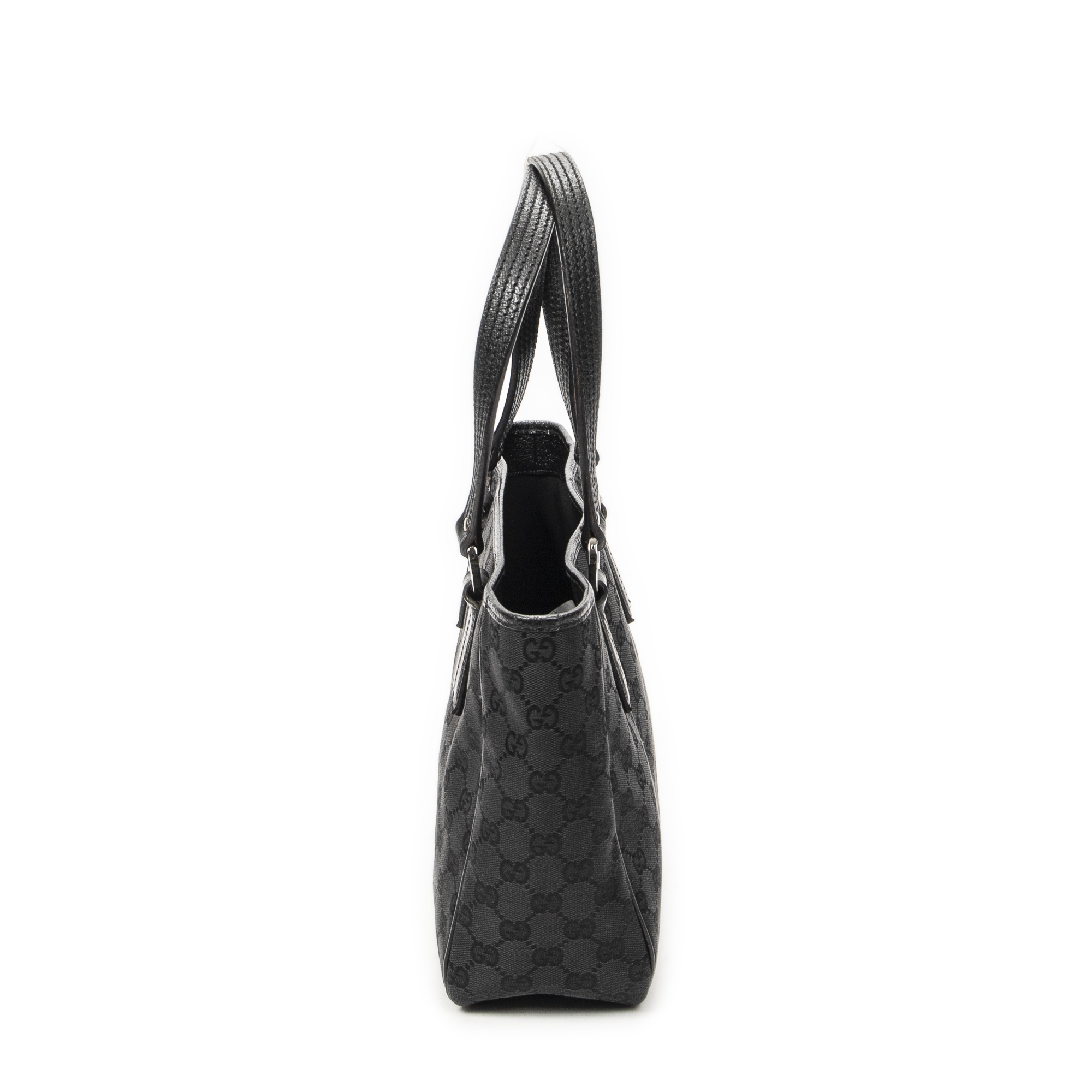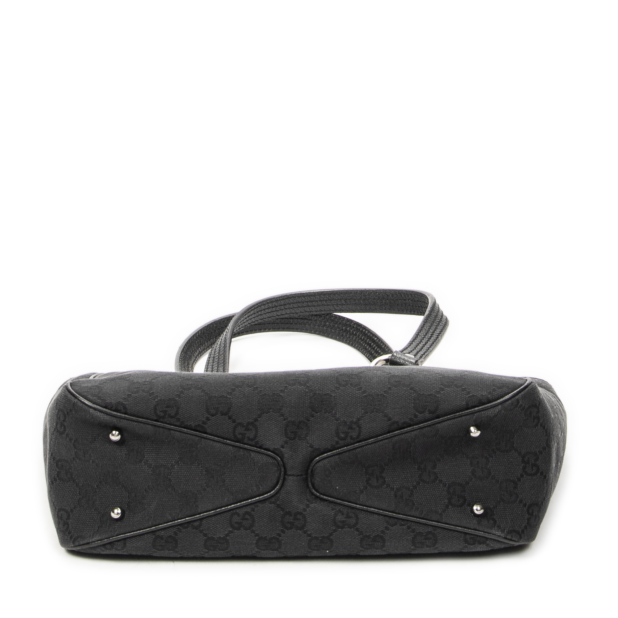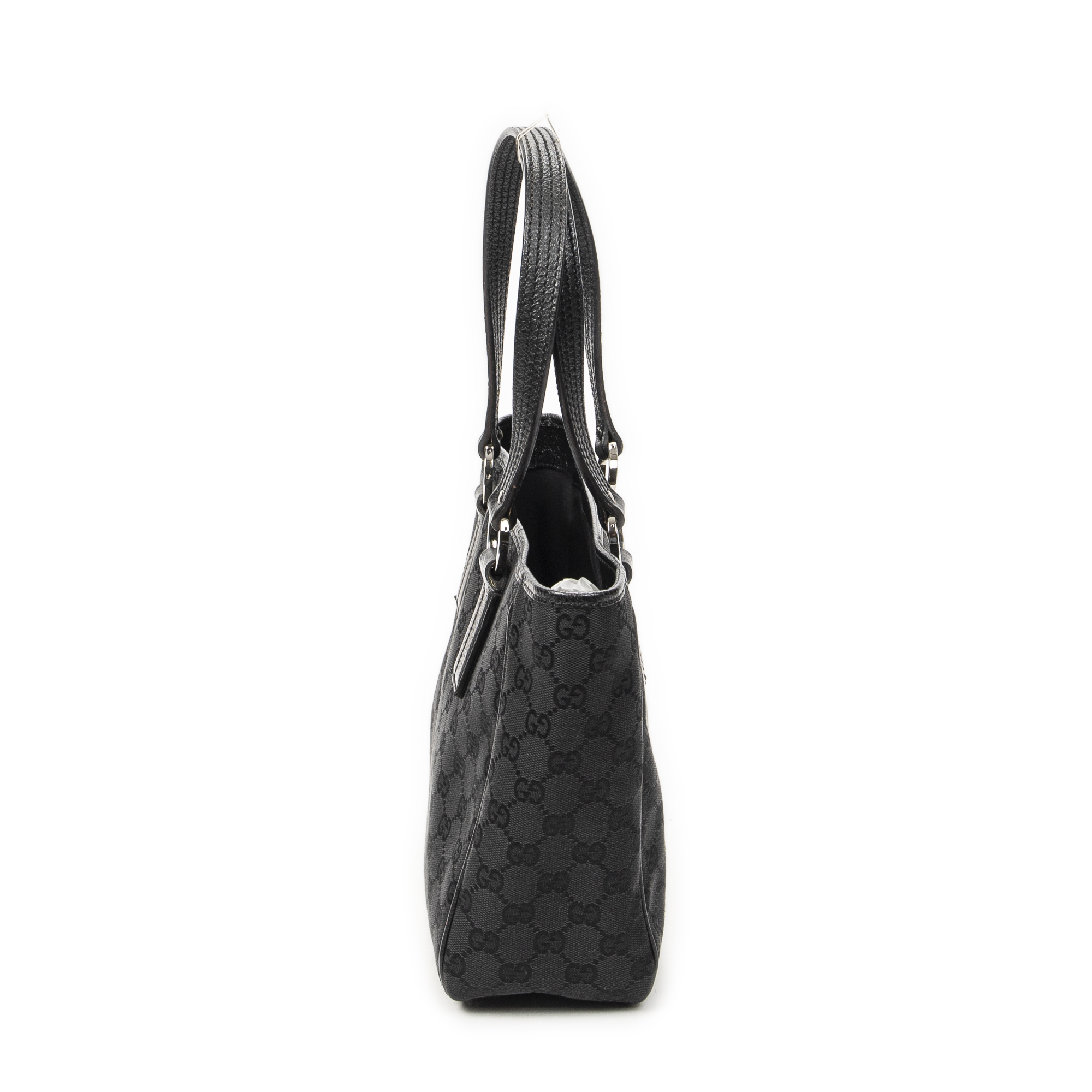 Gucci Shoulder Bag Small Shoulder Tote in Black Monogrammed Canvas and Silver hardware. The product is in Excellent Condition (A).