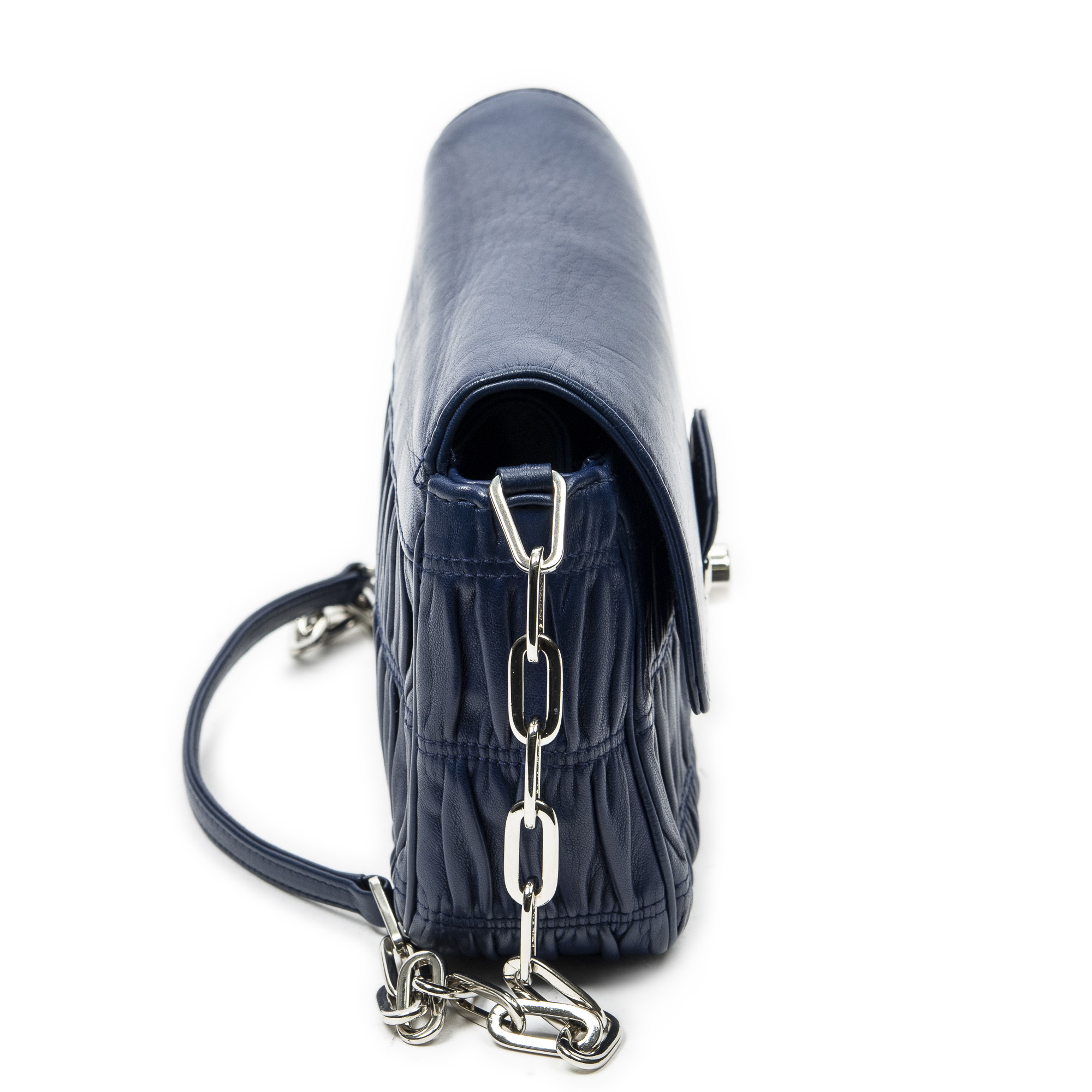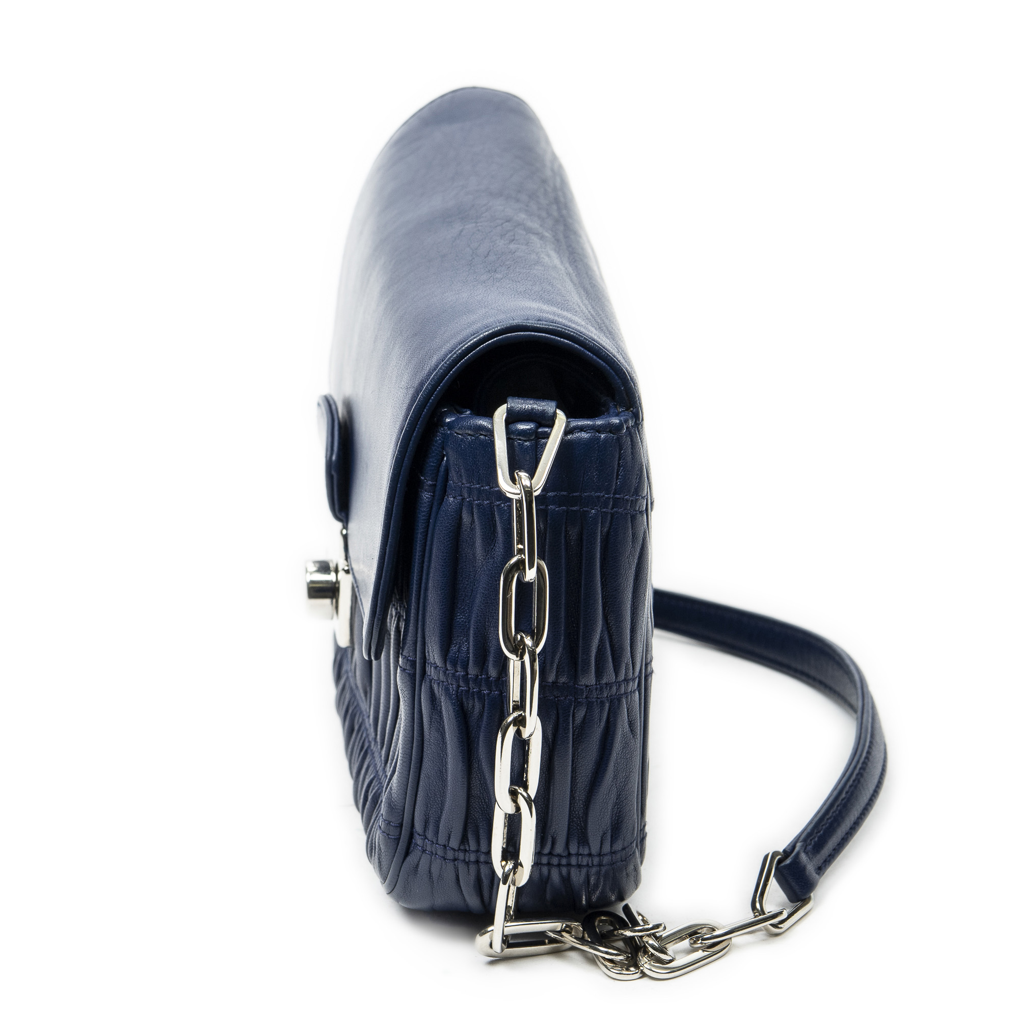 Description : Prada Shoulder Bag Small Sound Chain Flap in Navy Nappa Gaufre Leather and Silver hardware. The product is in Excellent Condition (A). Dimensions: 22x15x6 cm SKU: ABC4426 Serial number: 10/113 Accessories Included: Key in Clochette; Dustbag Delivery: We have a 5 to 7 business days delivery policy, hassle-free and duties/tariffs included! BrandCo Paris finds rare and top condition items at great deals, they are worth your patience! Shop with confidence - All BrandCo Paris items are carefully selected and authenticated by our team of experts. All the items come with an authenticity certificate and packaging delivered by BrandCo Paris. Item Condition Grading Table N (Like New) AA (Perfect Condition) A (Excellent Condition) AB (Very Good Condition) B (Good/Fair)