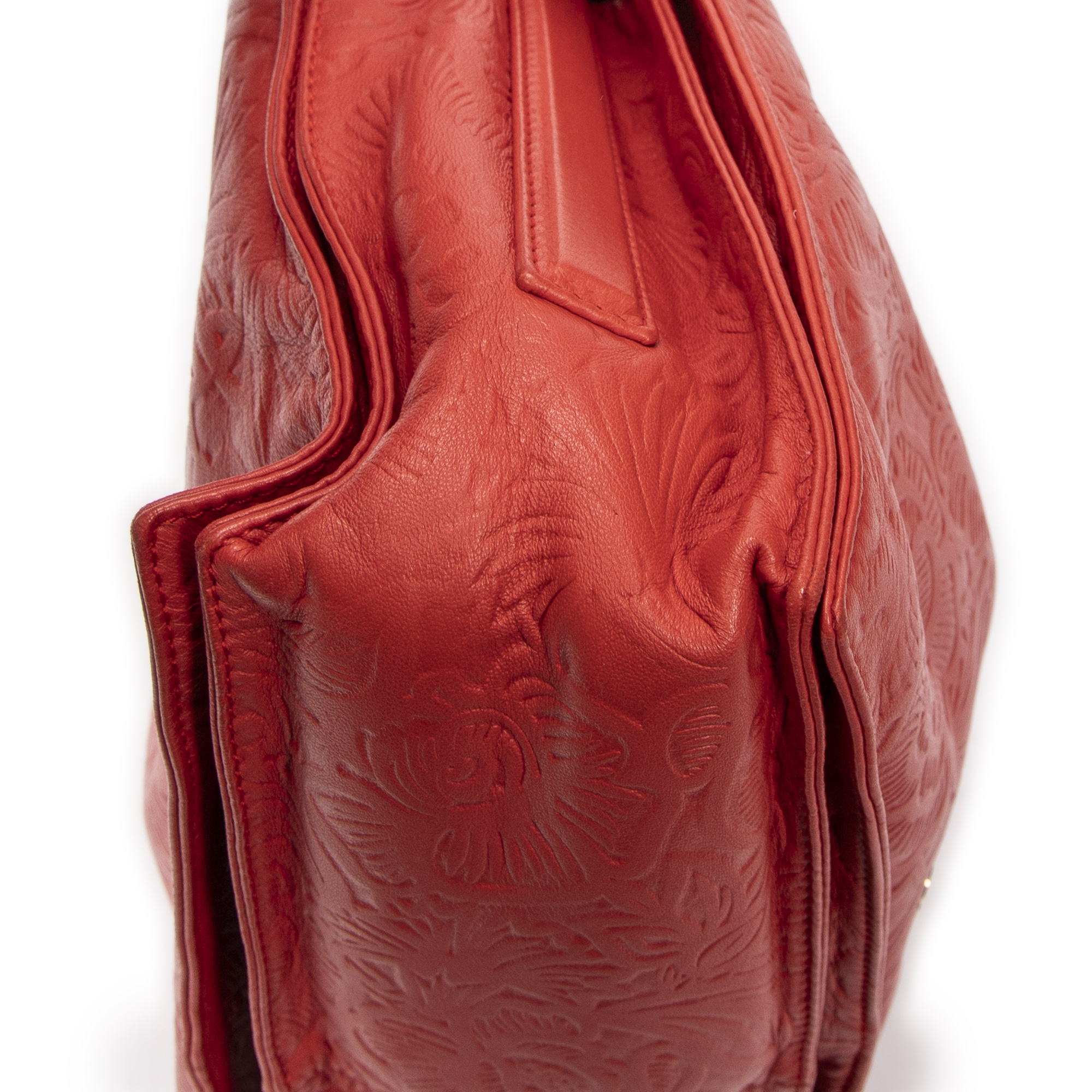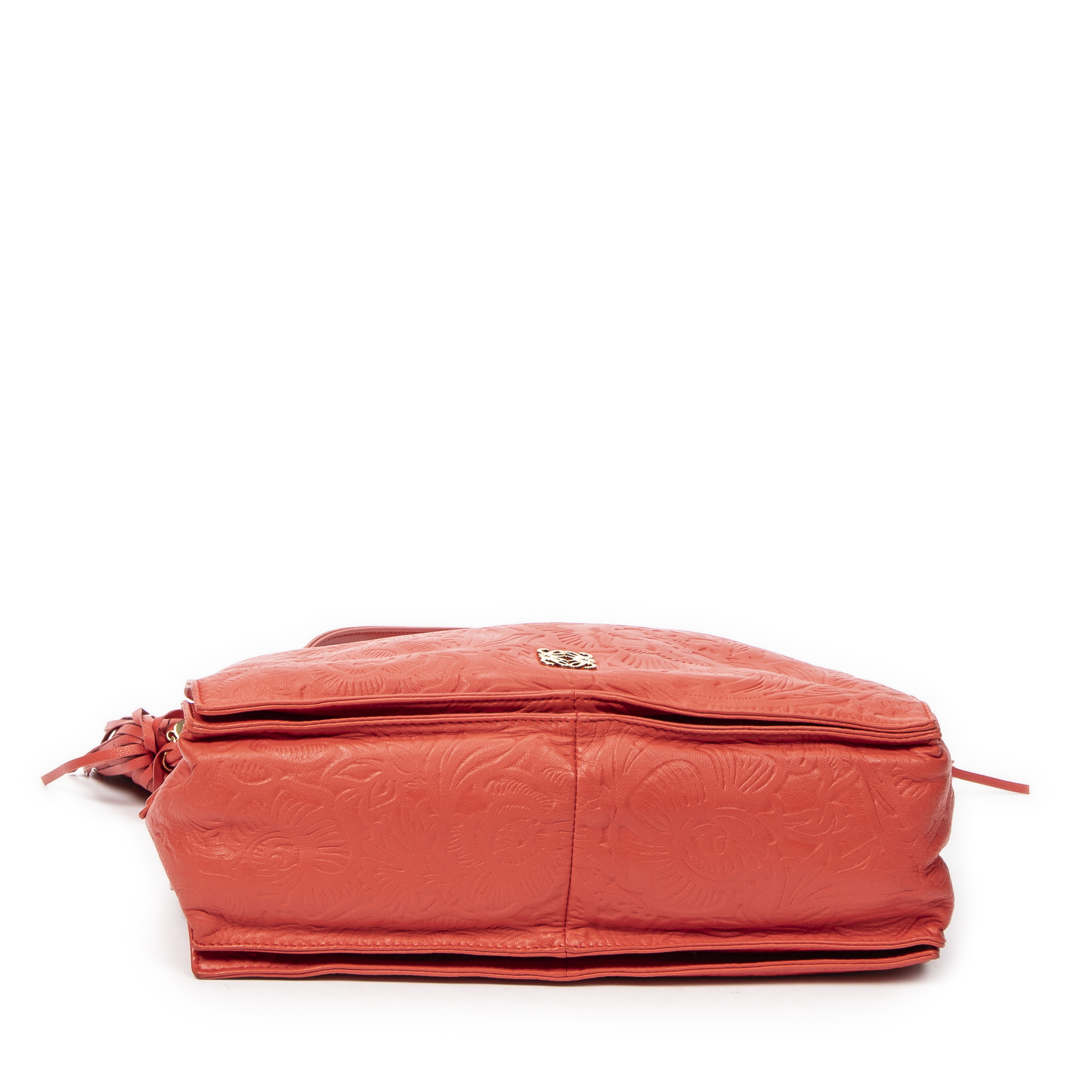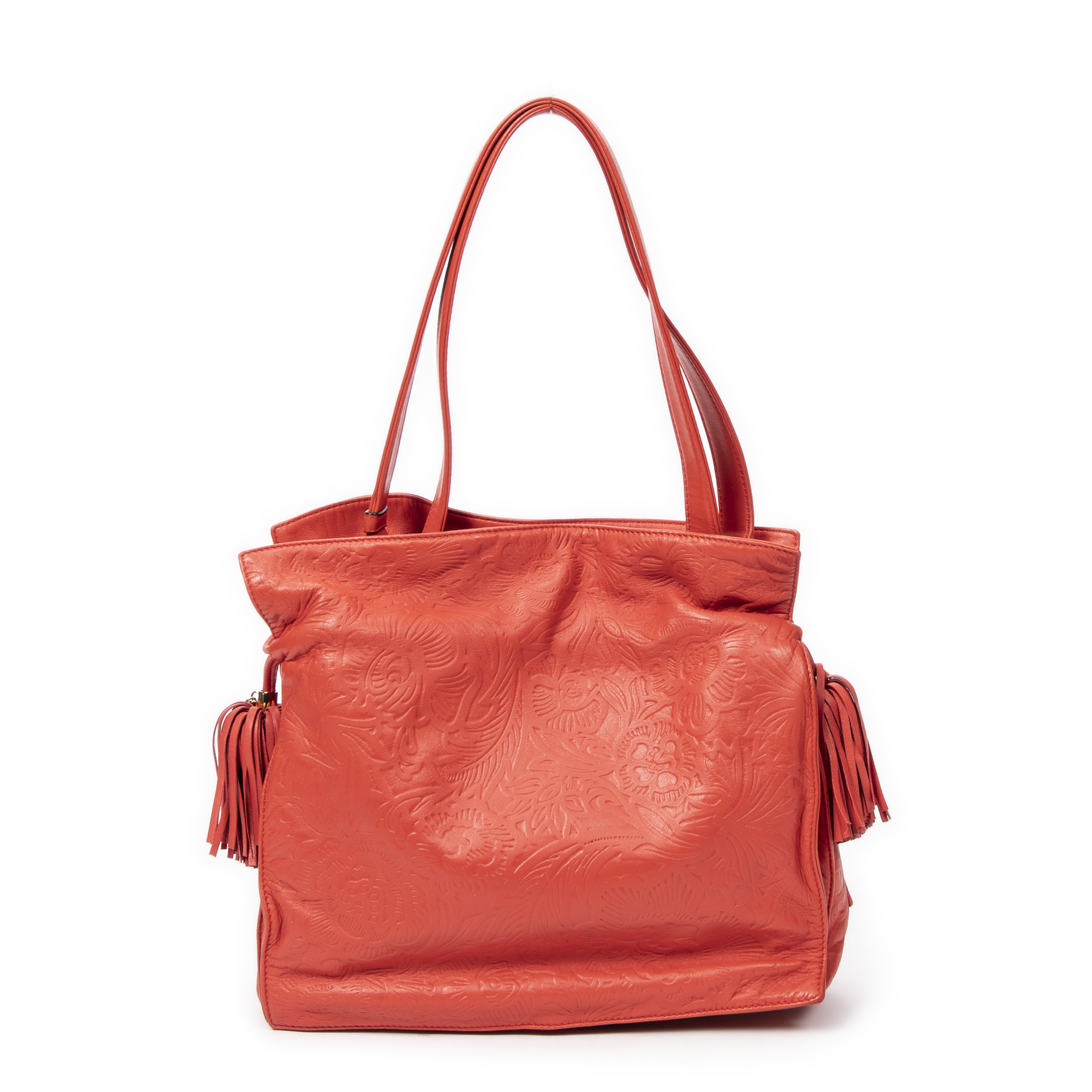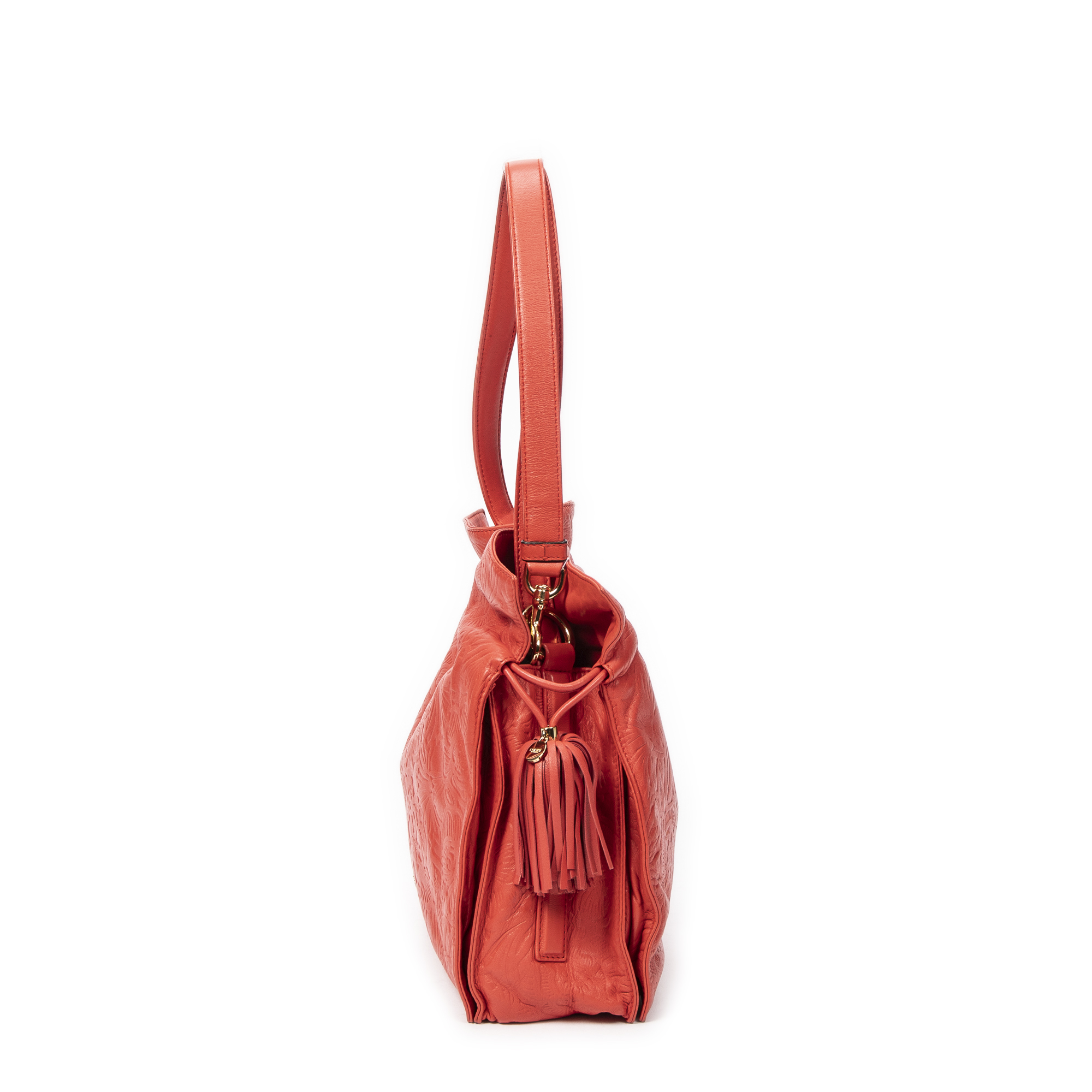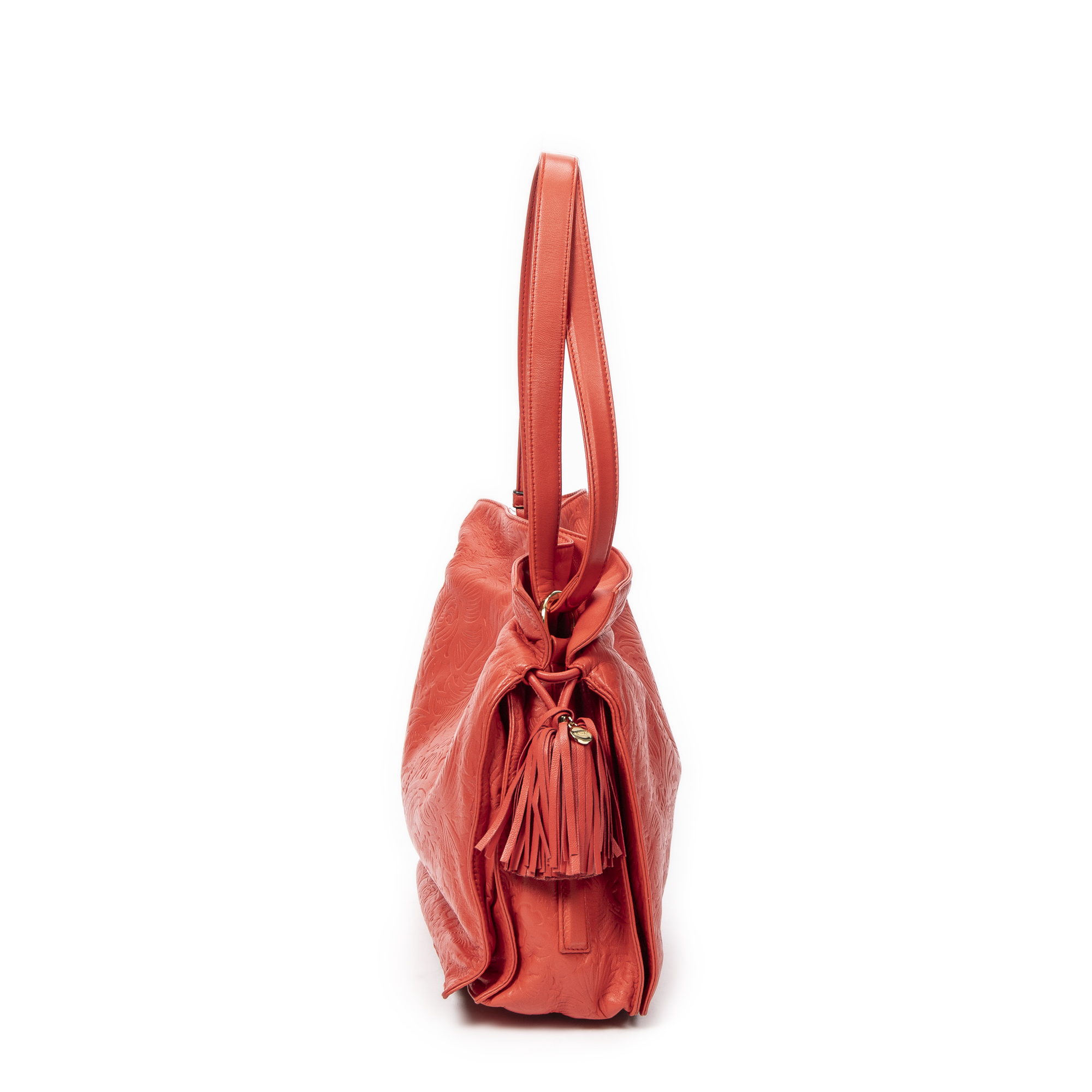 Loewe Shoulder Bag Small Tassel Flamenco in Orange Embossed Calfskin Leather and Gold hardware. The product is in Perfect Condition (AA).