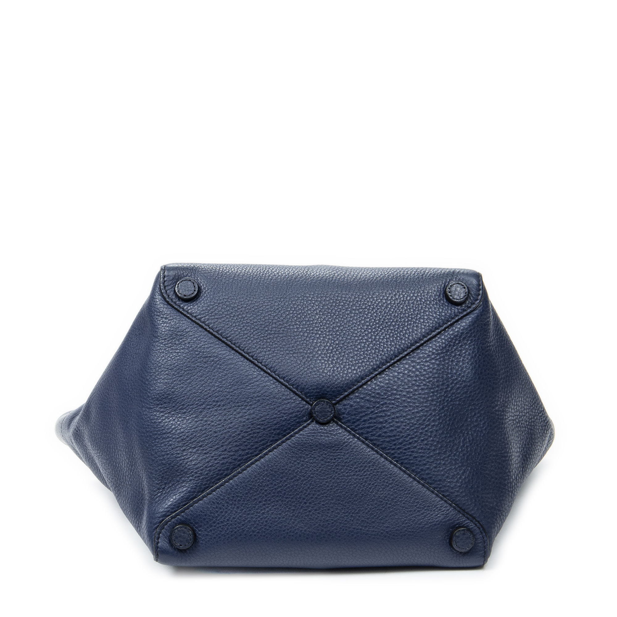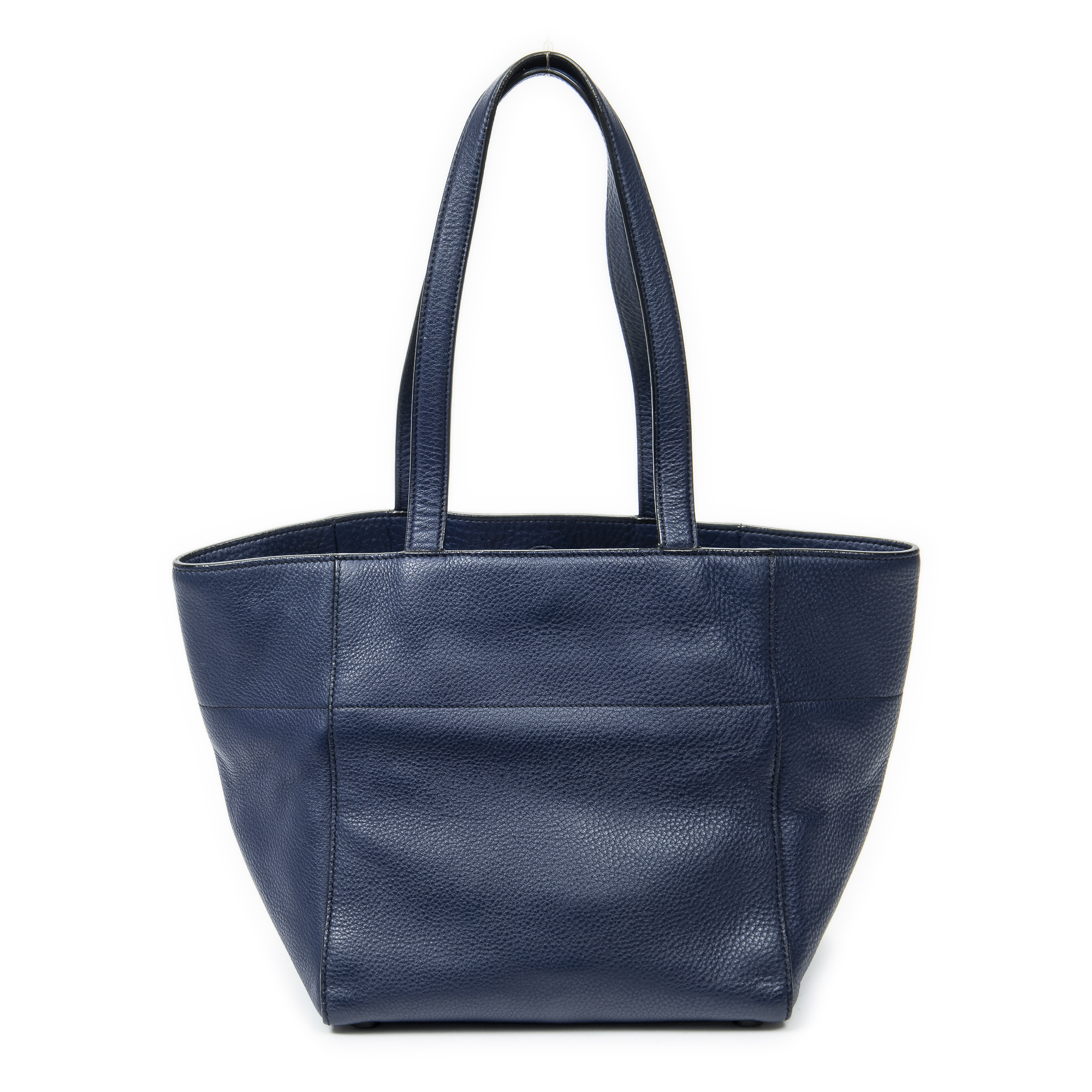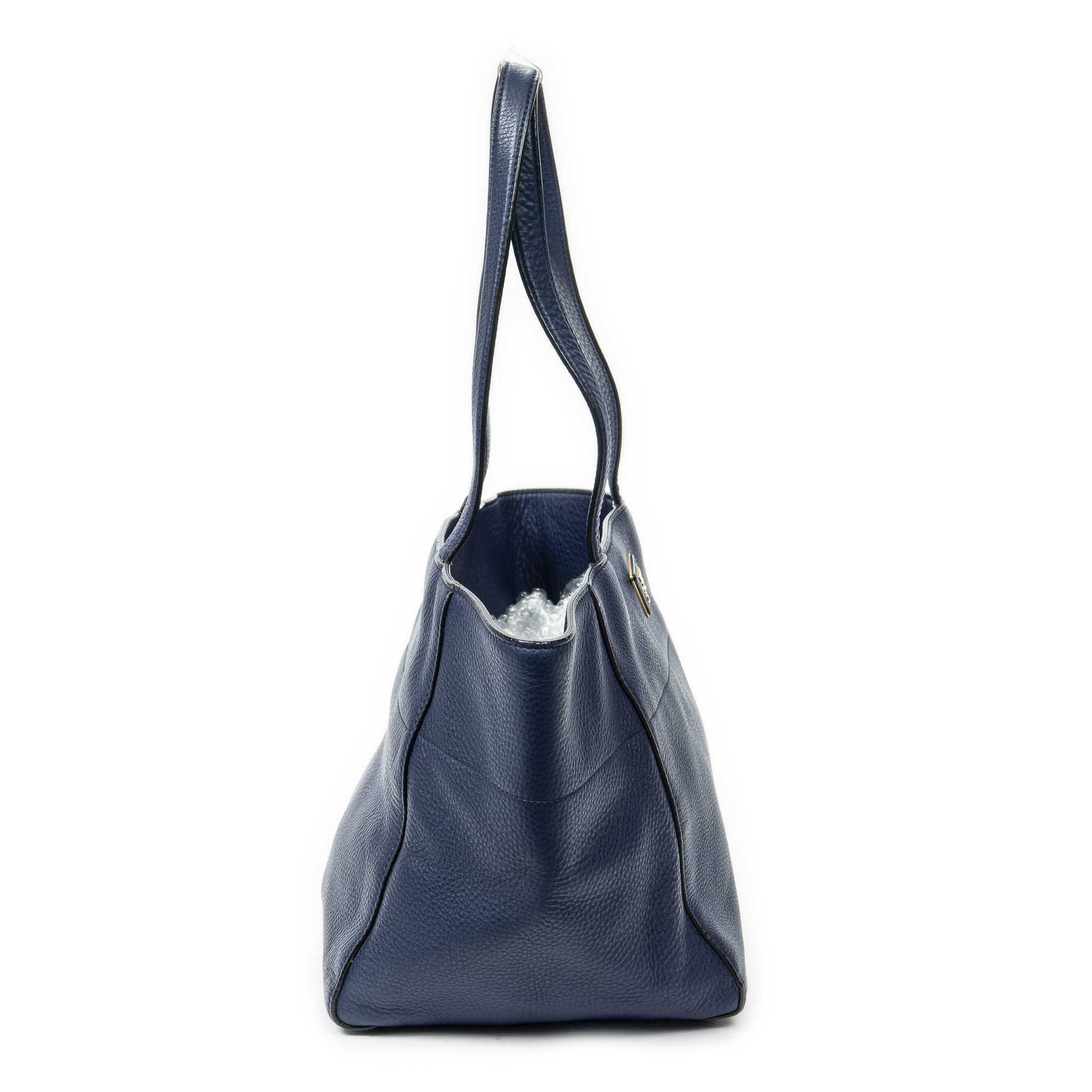 Prada Shoulder bag Small Trapeze Shopper in Navy Vitello Phenix Leather and Gold hardware. The product is in Excellent Condition (A).