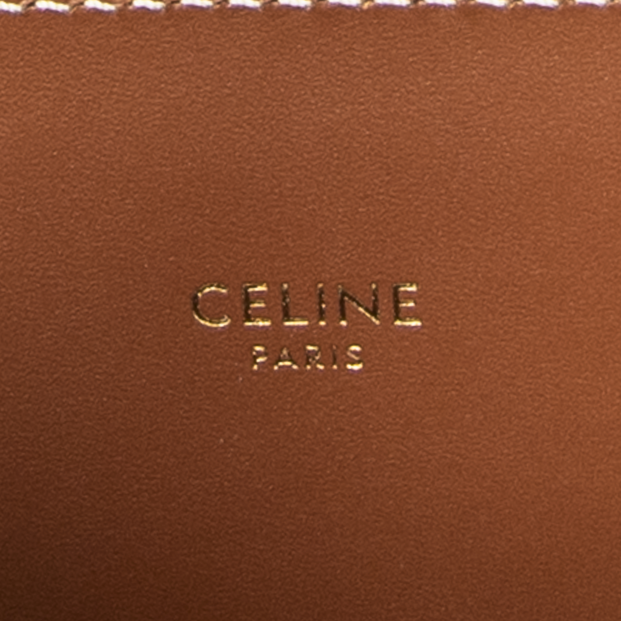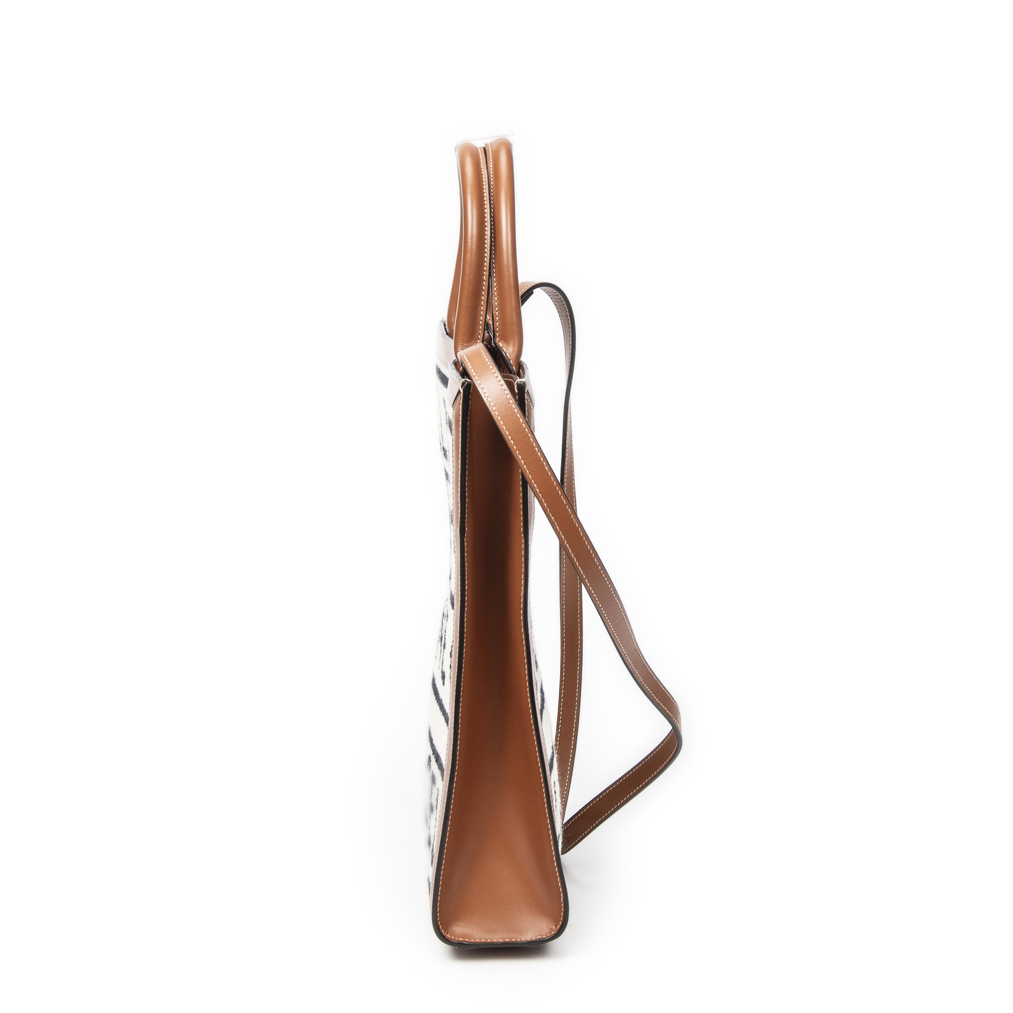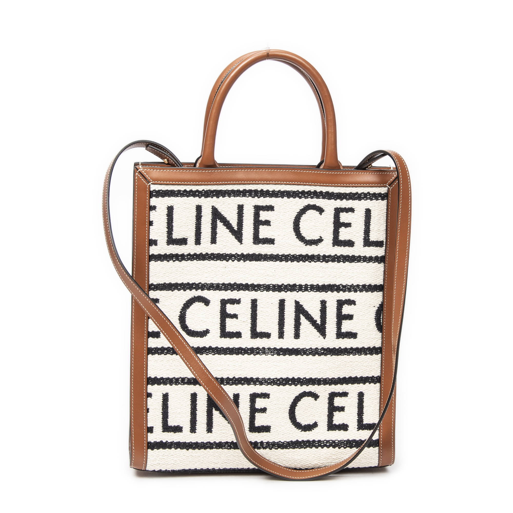Celine Shoulder Bag Small Vertical Cabas in Beige/Brown Printed Canvas and Gold hardware. The product is in Excellent Condition (A).
