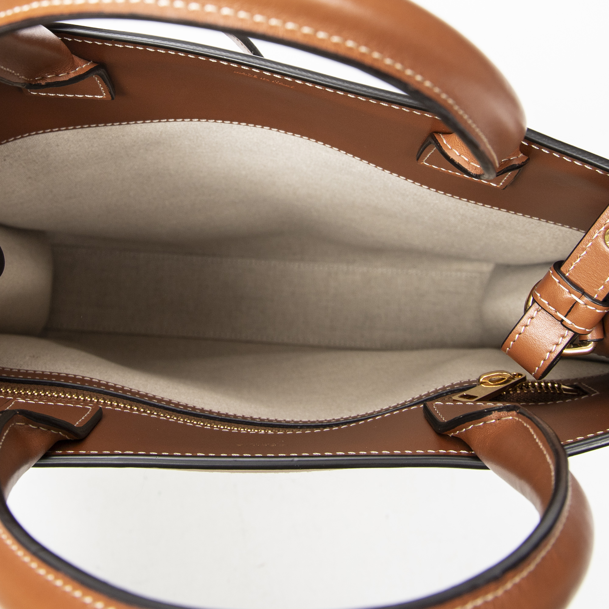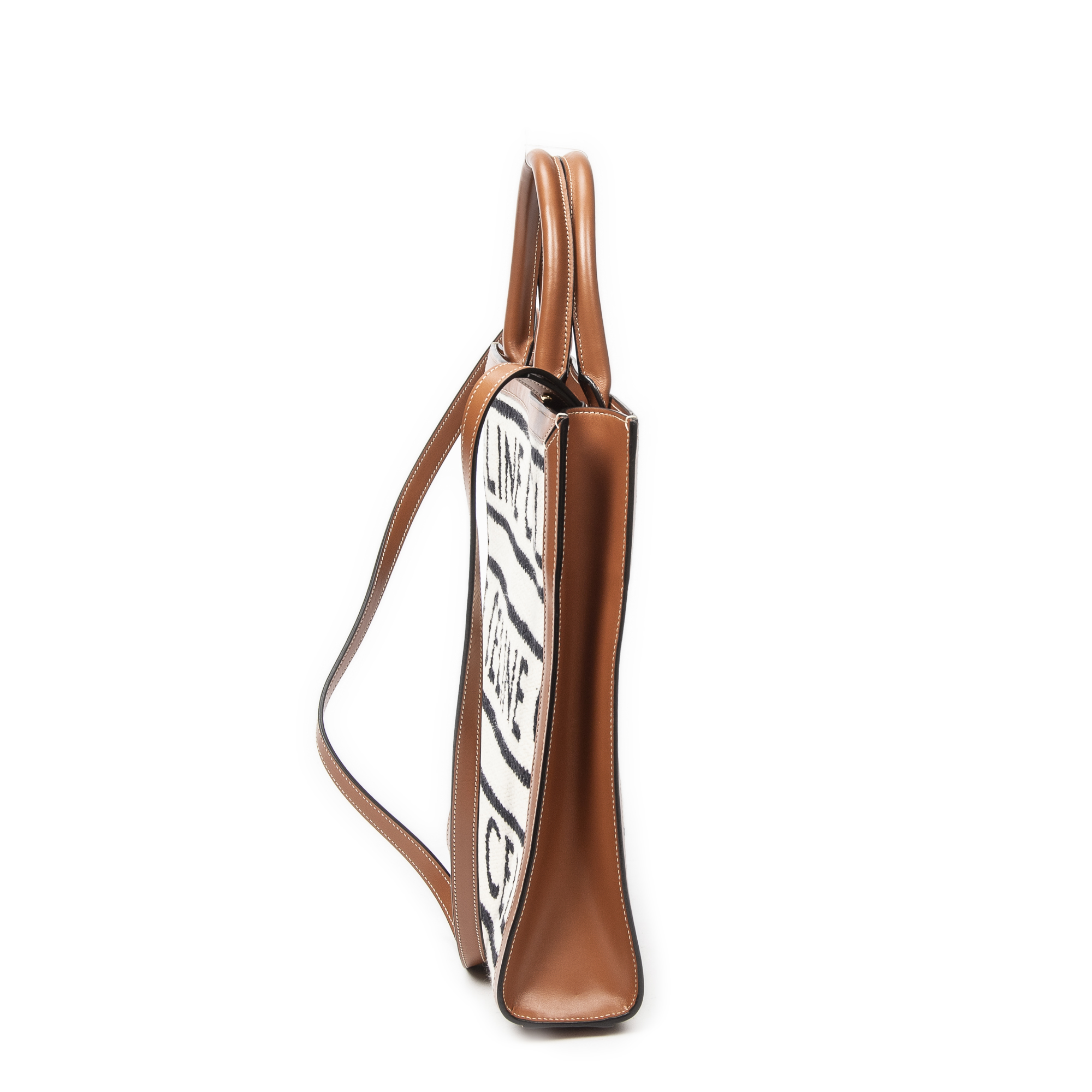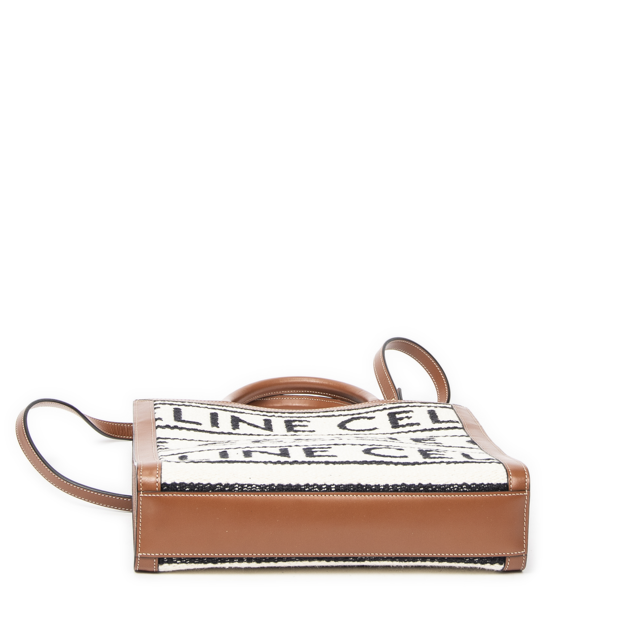 Celine Shoulder Bag Small Vertical Cabas in Beige/Brown Printed Canvas and Gold hardware. The product is in Excellent Condition (A).