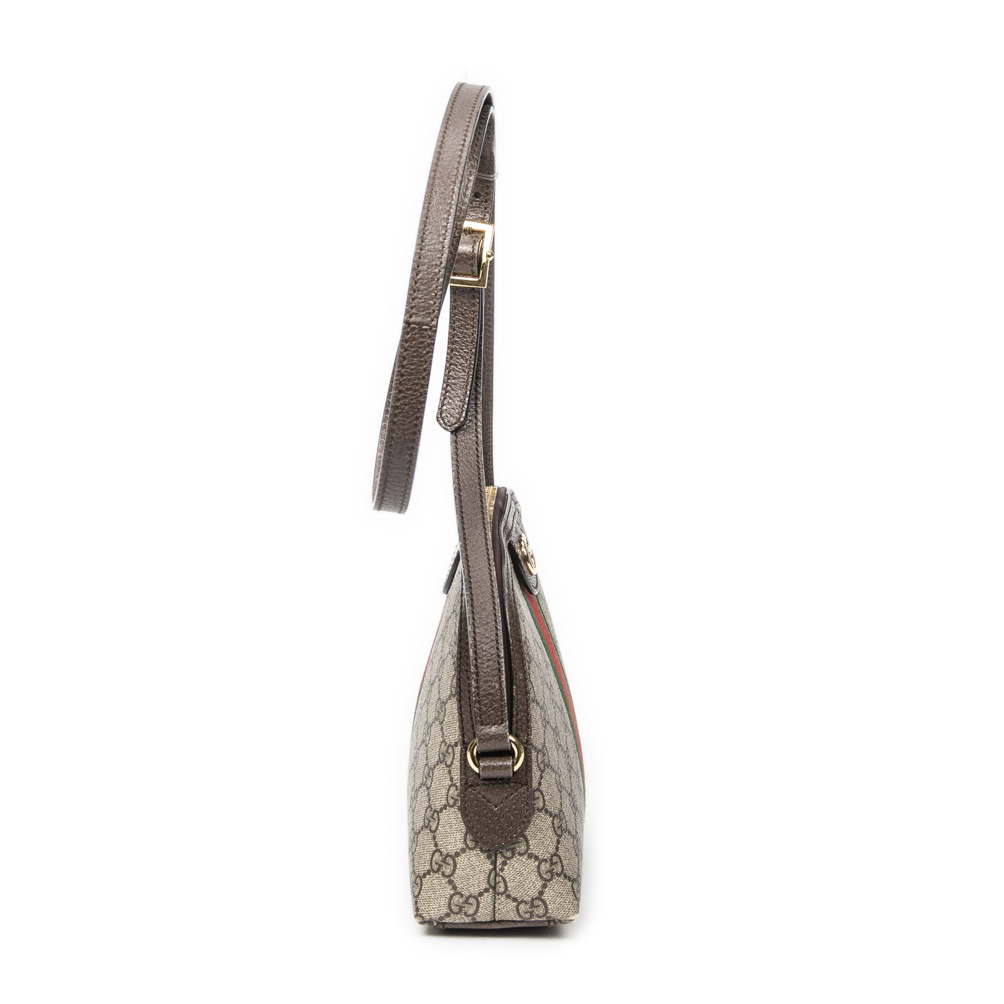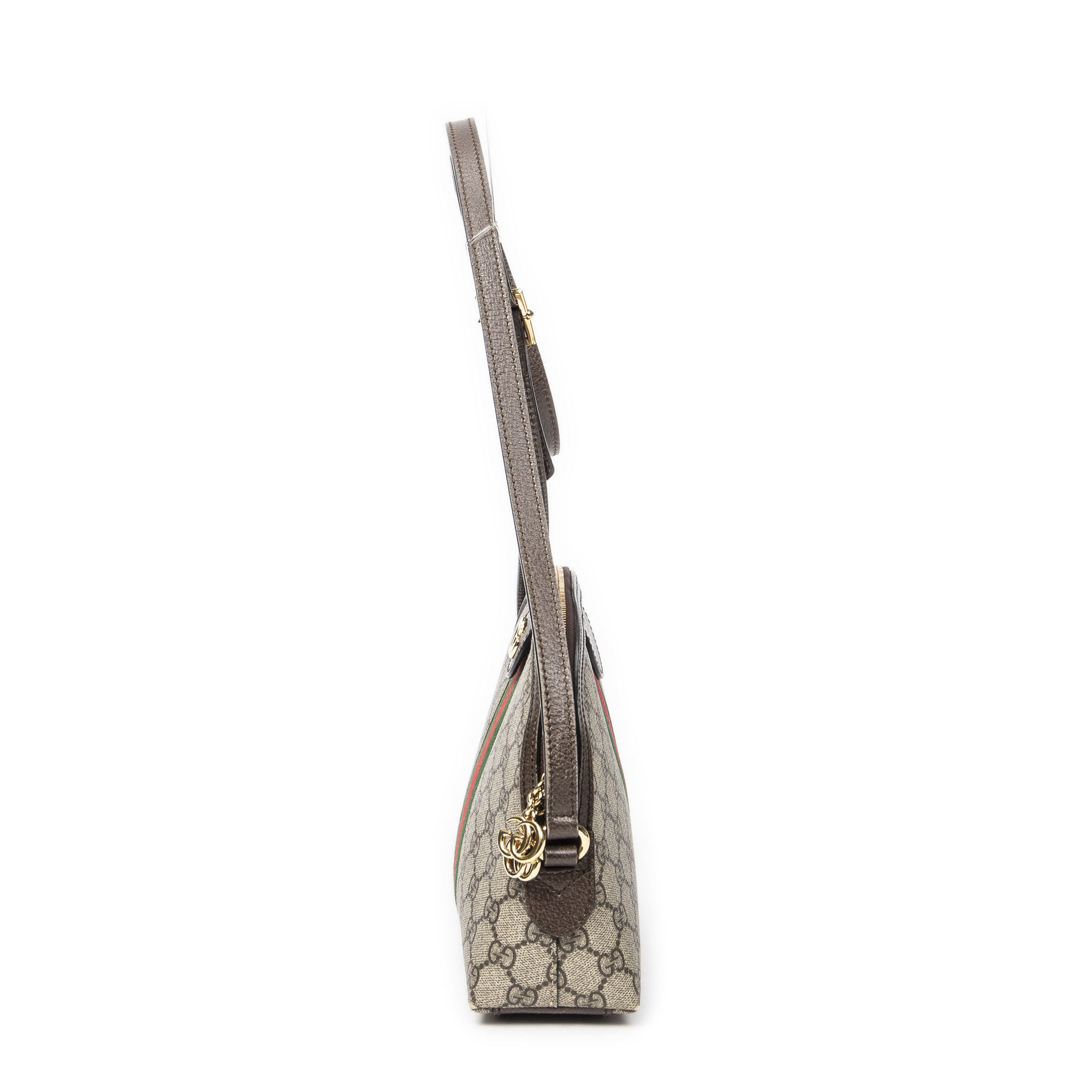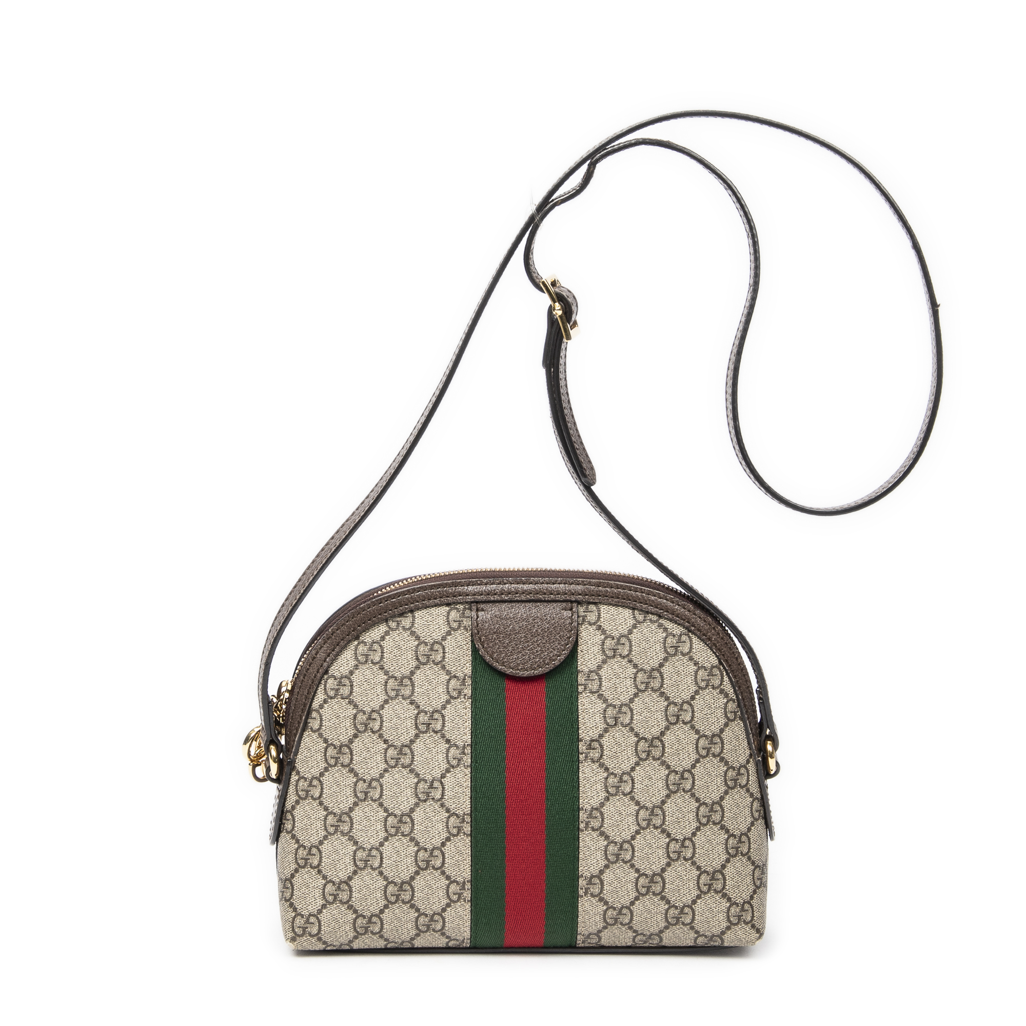 Gucci Shoulder Bag Small Web Ophidia Dome in Beige/Brown Supreme Coated Canvas and Gold hardware. The product is in Very Good Condition (AB).