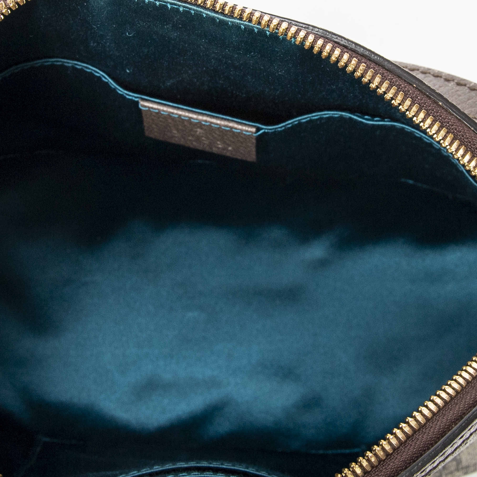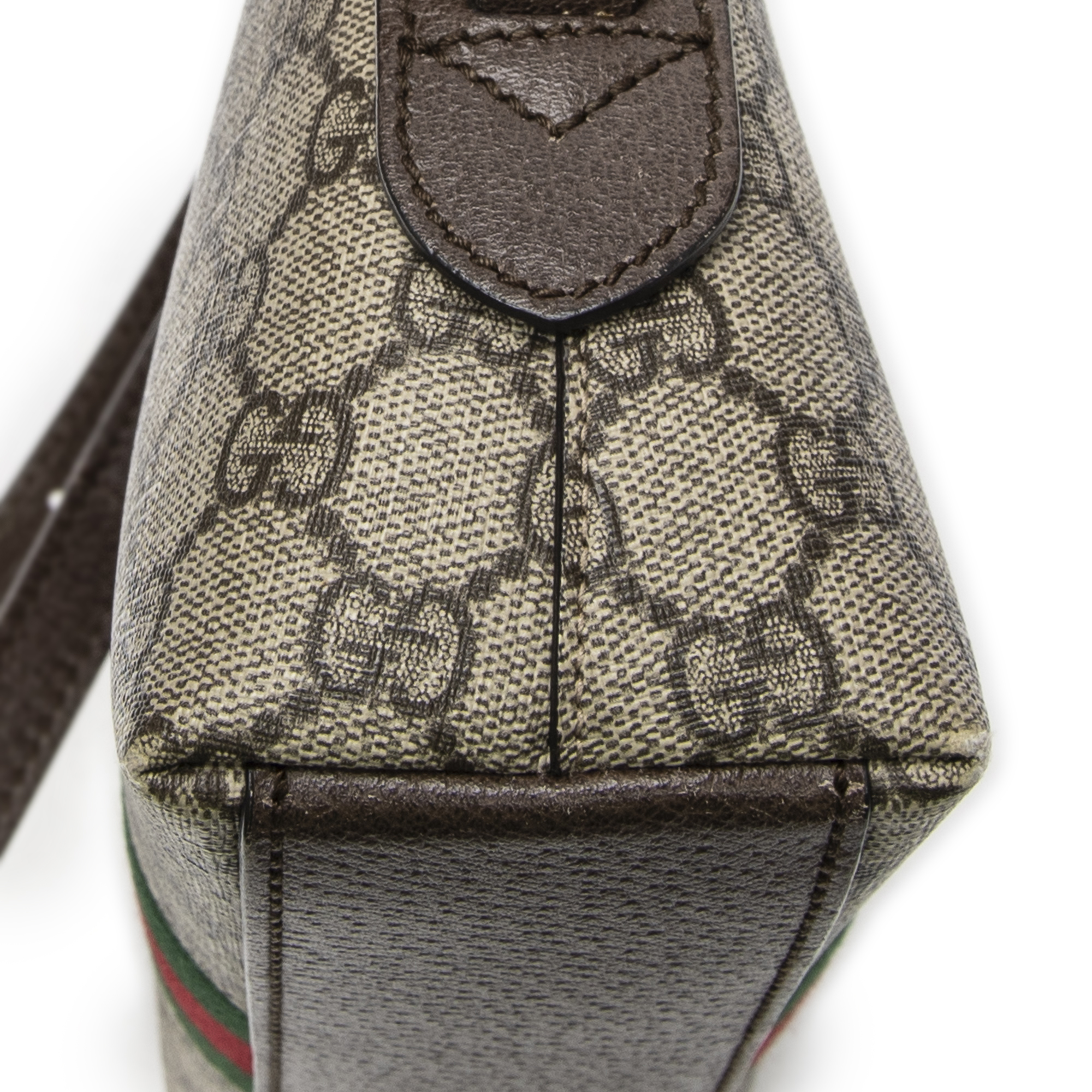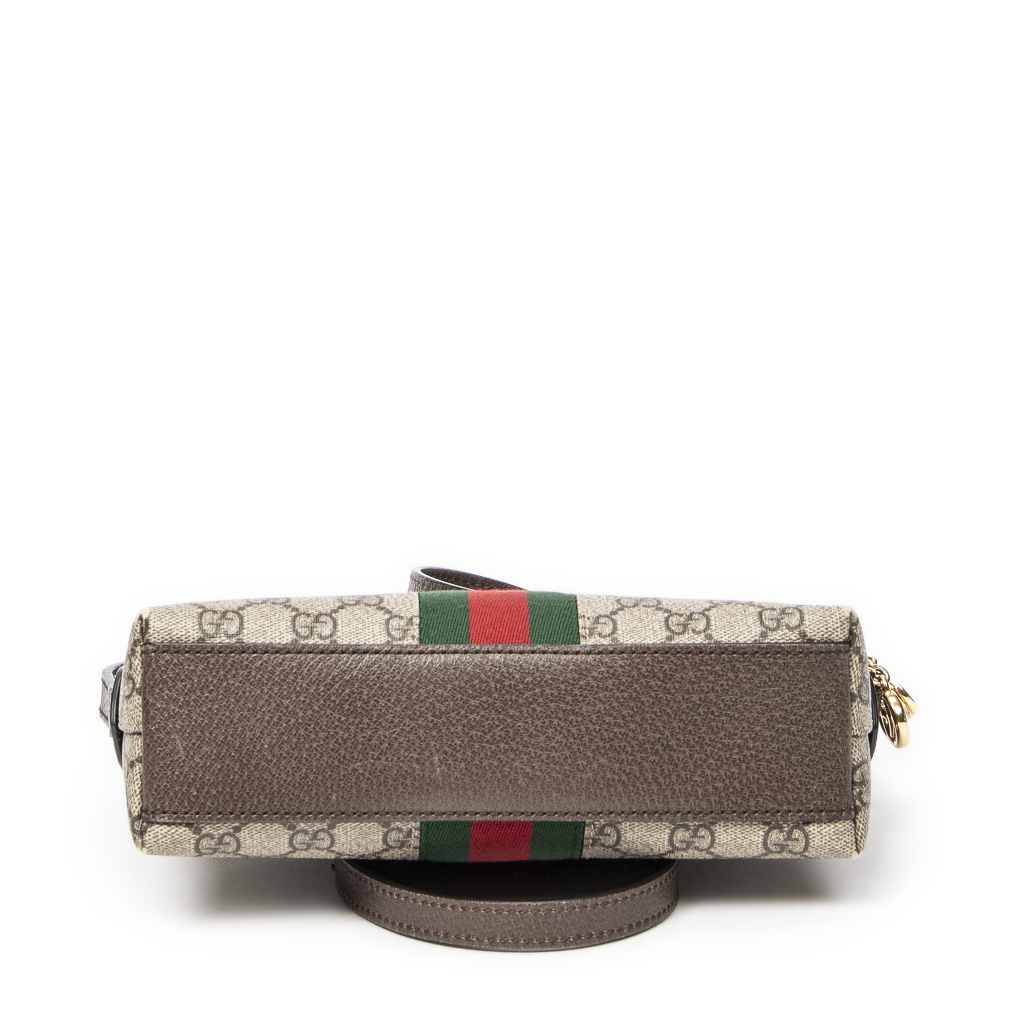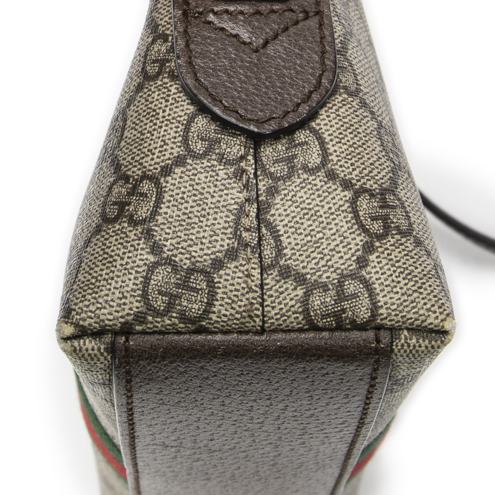 Gucci Shoulder Bag Small Web Ophidia Dome in Beige/Brown Supreme Coated Canvas and Gold hardware. The product is in Very Good Condition (AB).