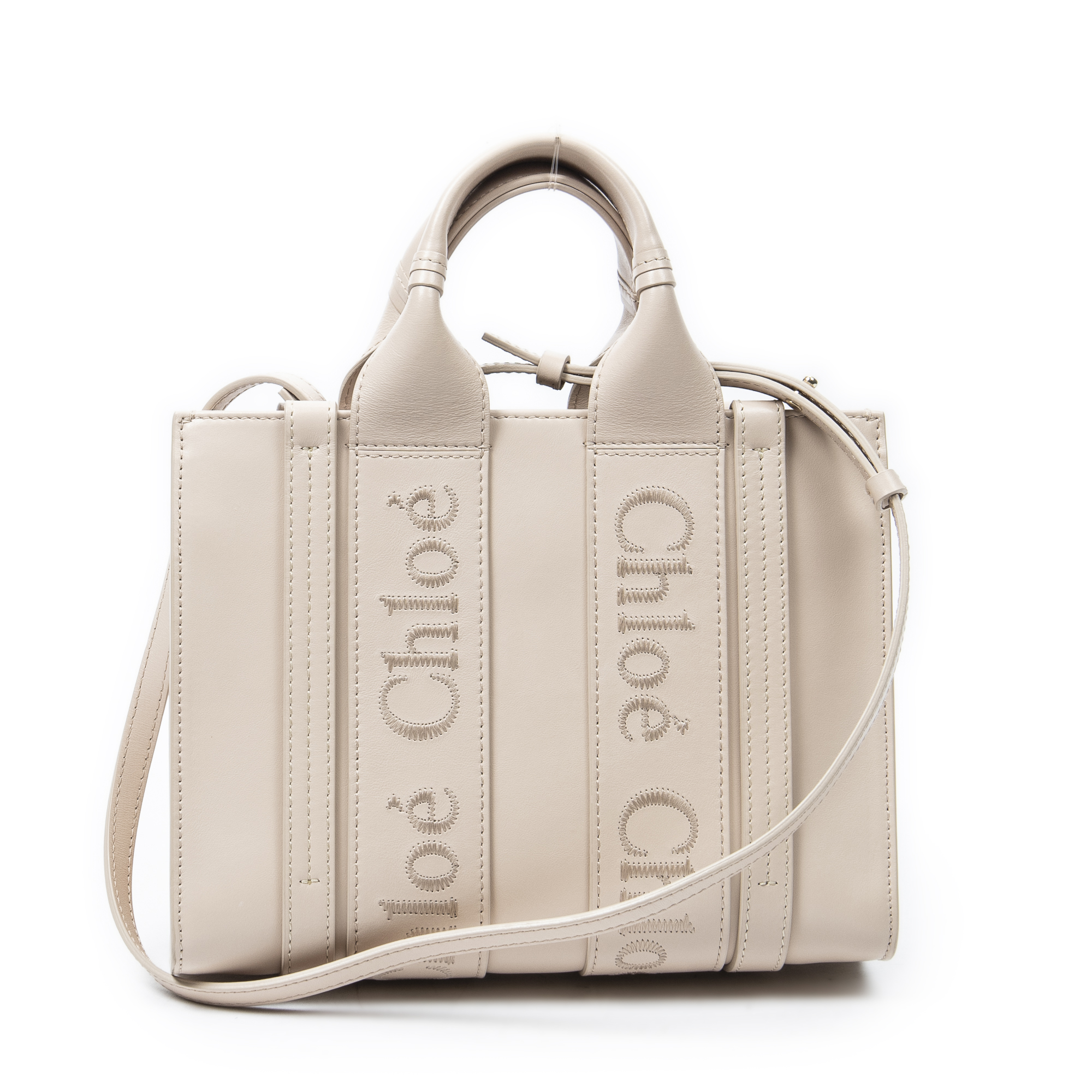 Chloé Shoulder Bag Small Woody Tote in Beige Calfskin Leather and Gold hardware. The product is in Perfect Condition (AA).
