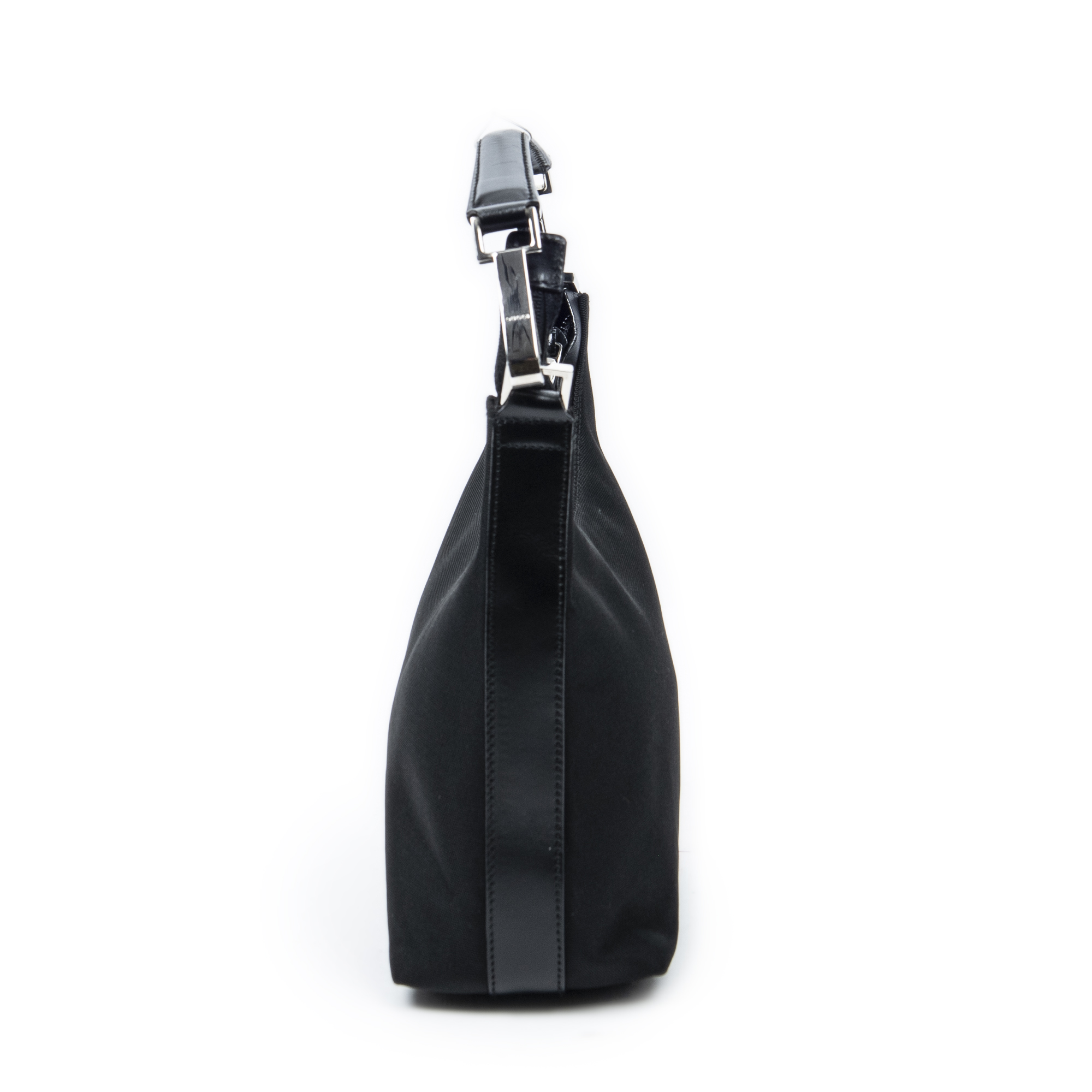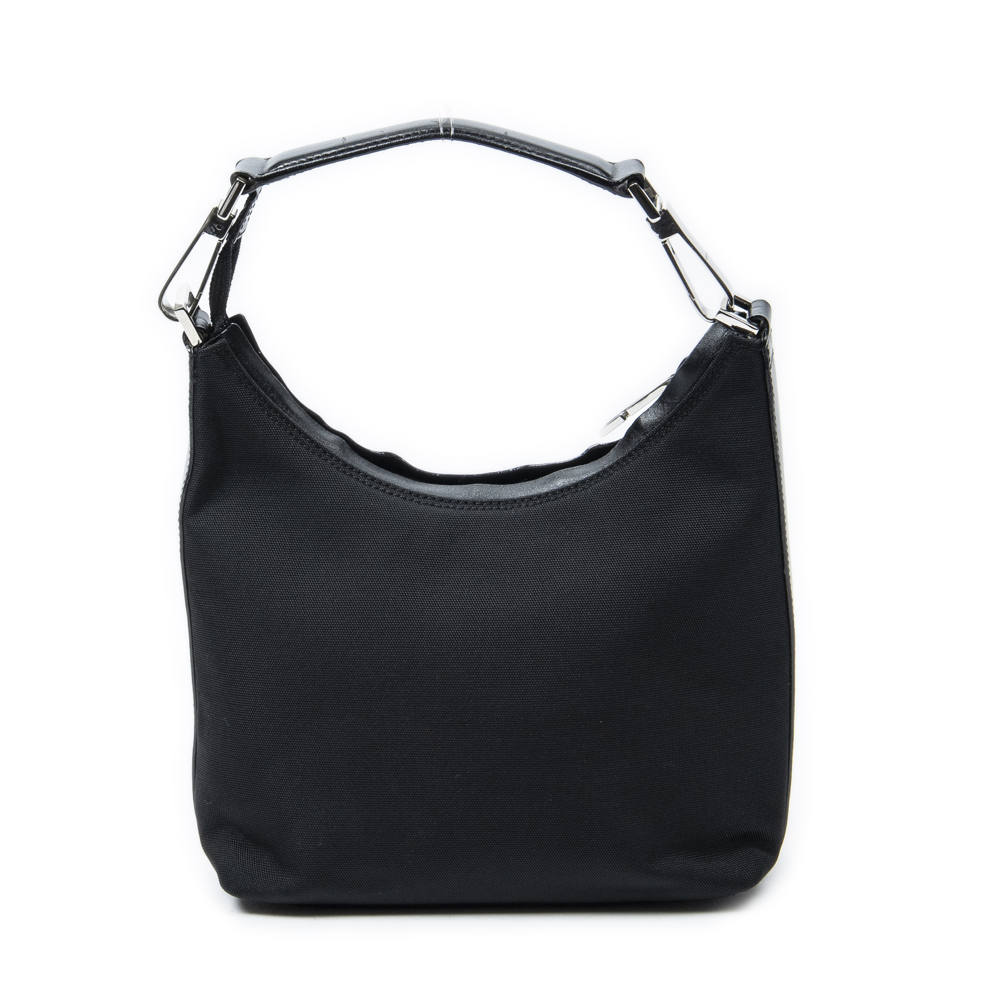 Gucci Shoulder Bag Small Zip Hobo in Black Nylon Canvas and Silver hardware. The product is in Excellent Condition (A).