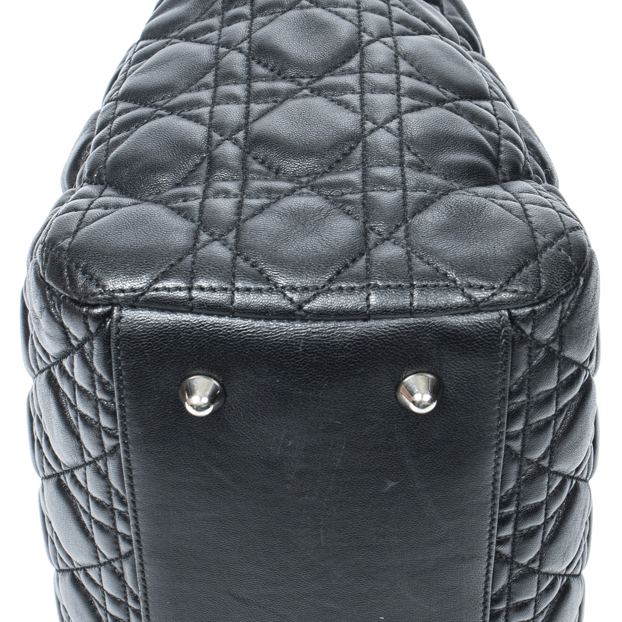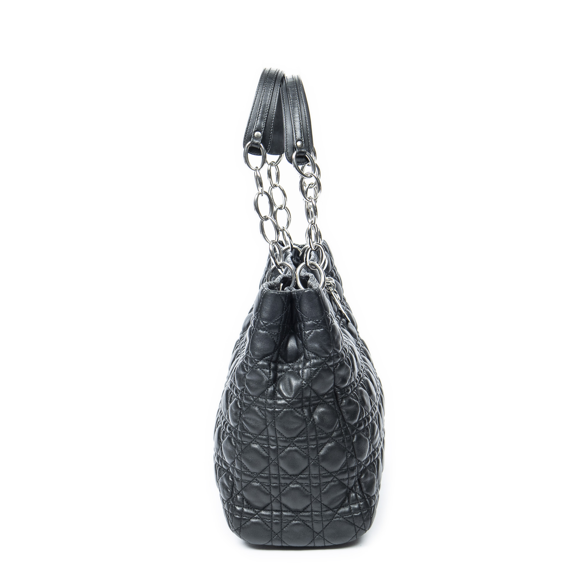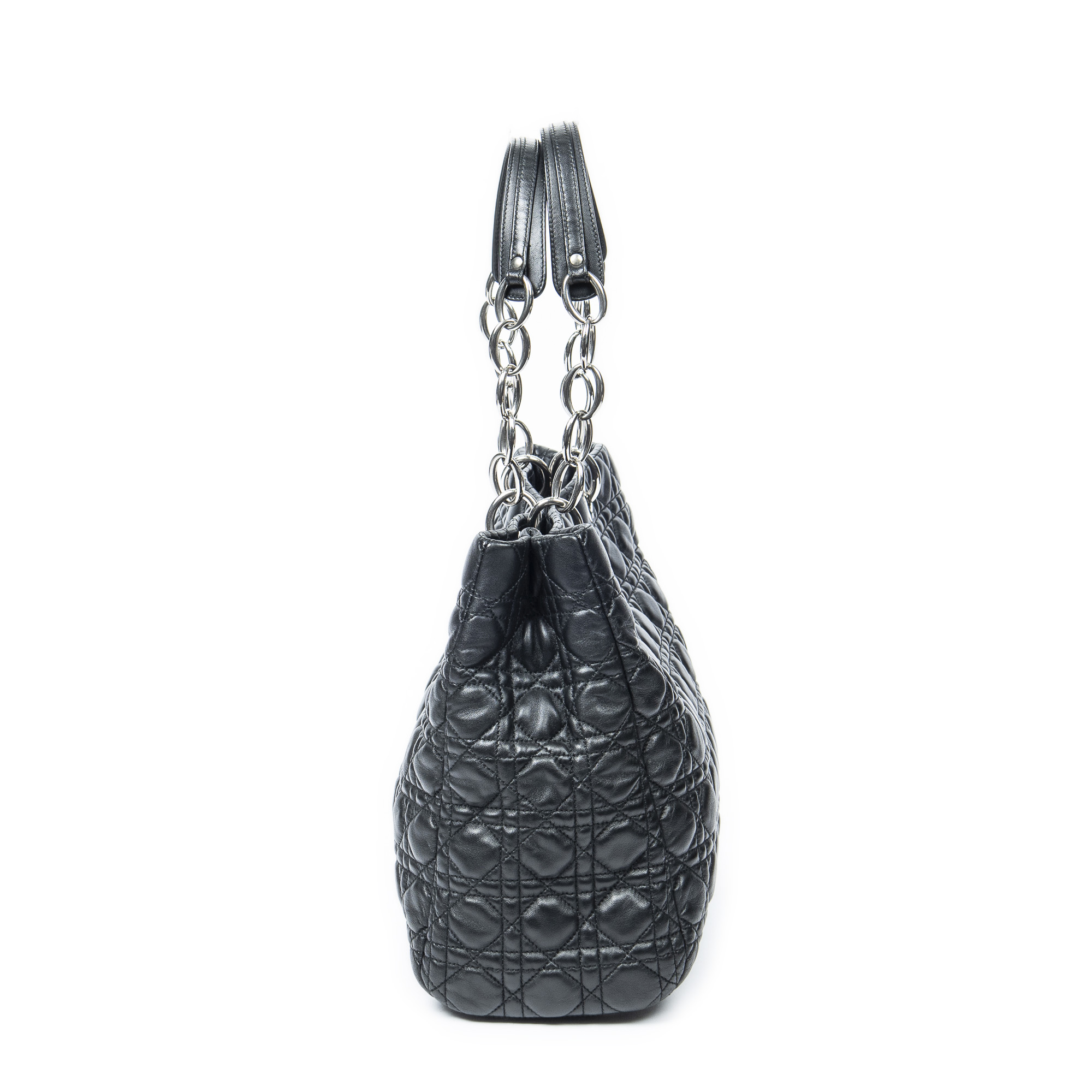 Dior Shoulder Bag Soft Shopping Tote in Black Cannage Lambskin Leather and Silver hardware. The product is in Excellent Condition (A).