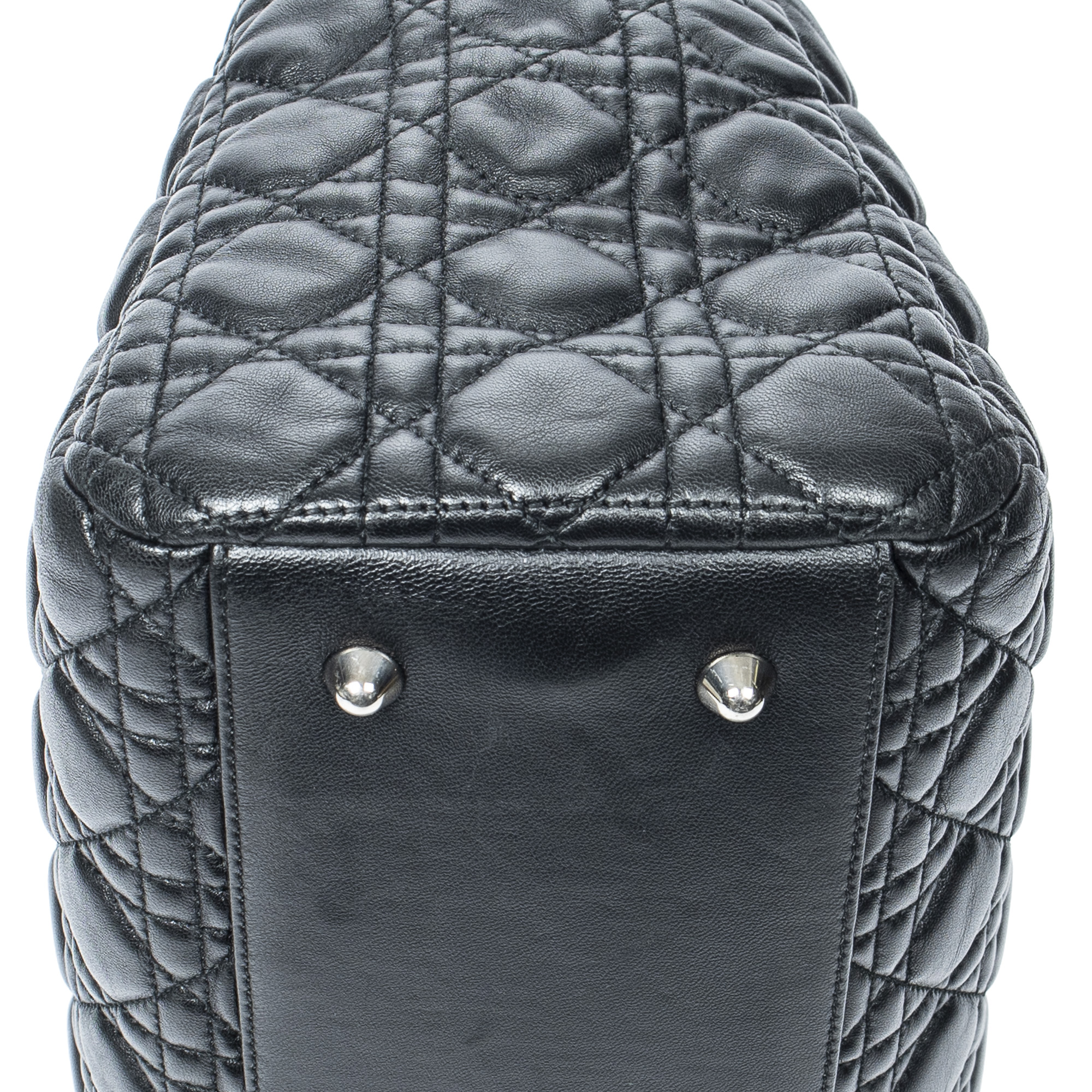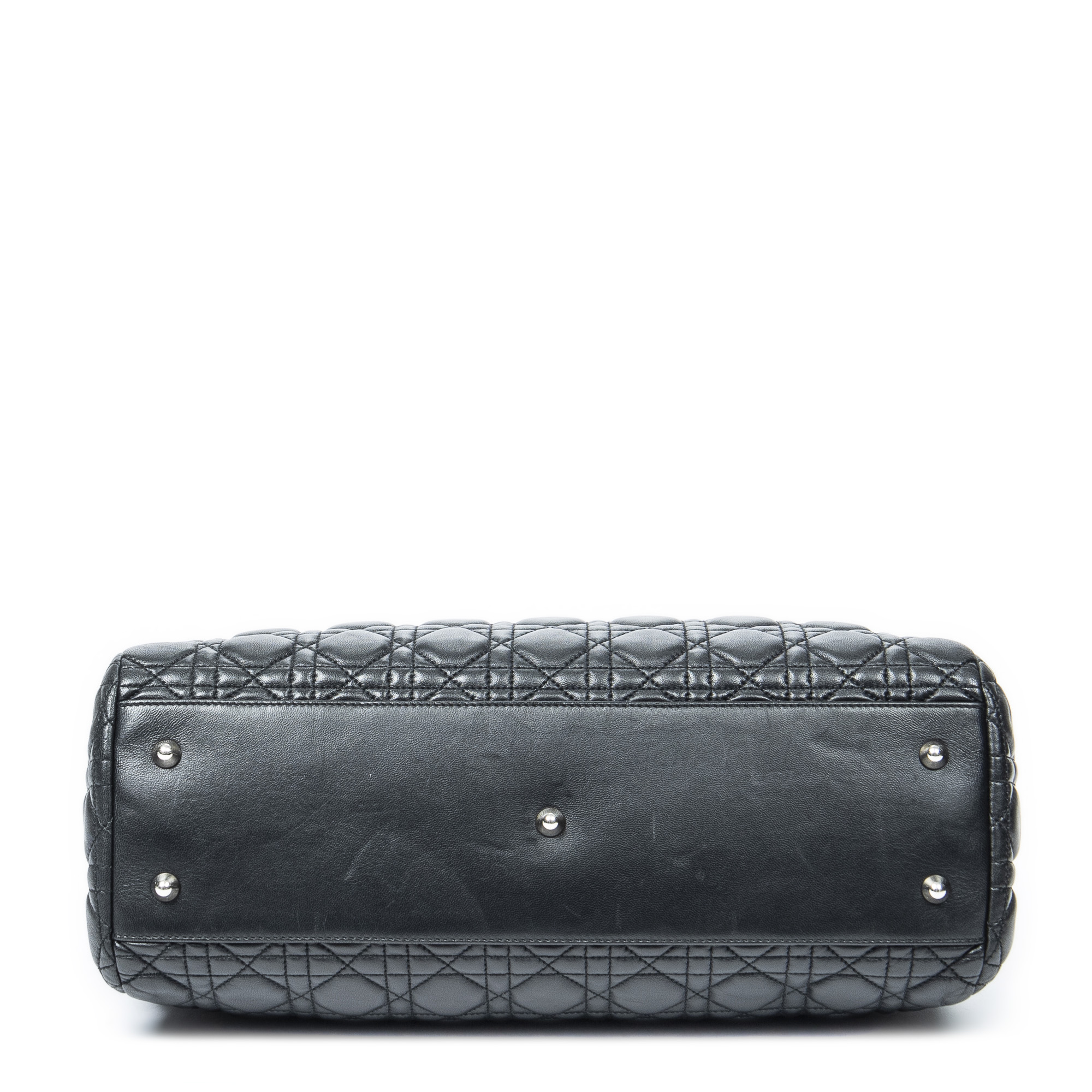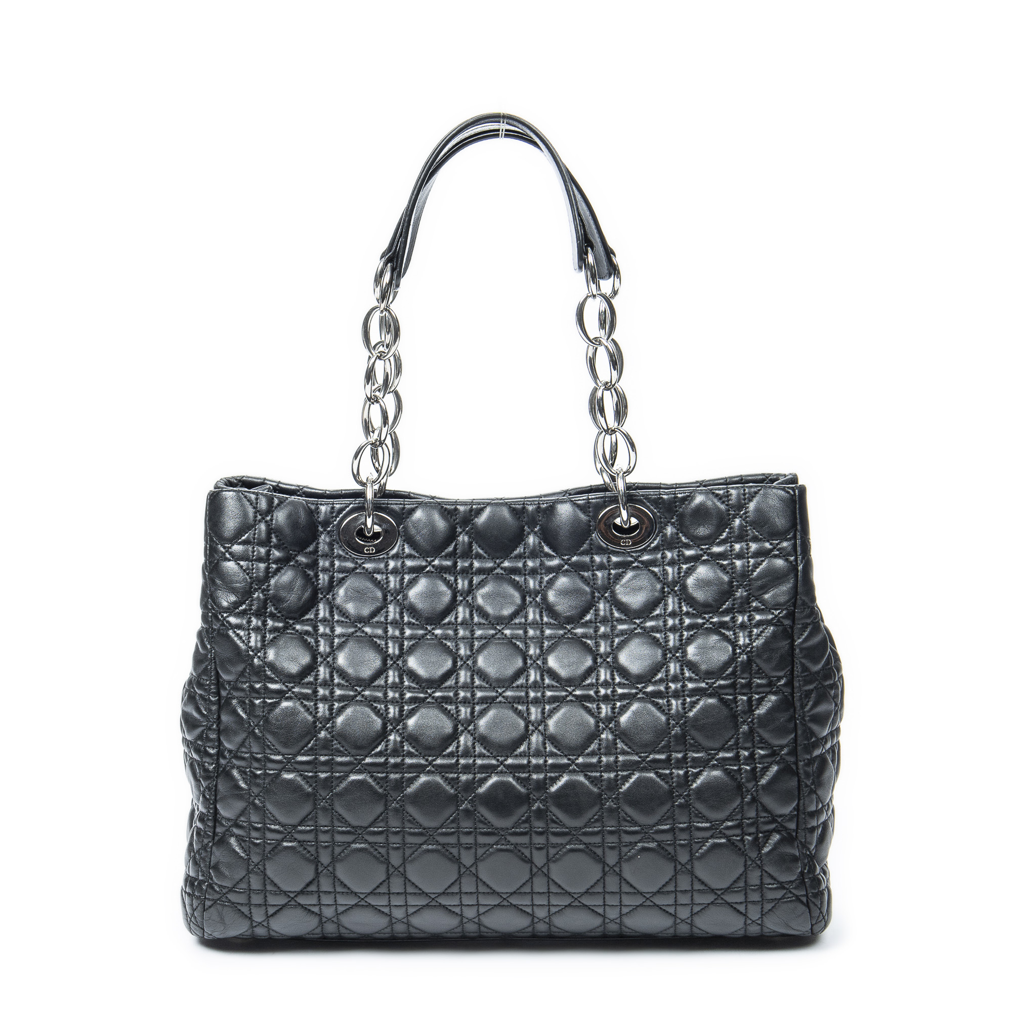 Dior Shoulder Bag Soft Shopping Tote in Black Cannage Lambskin Leather and Silver hardware. The product is in Excellent Condition (A).