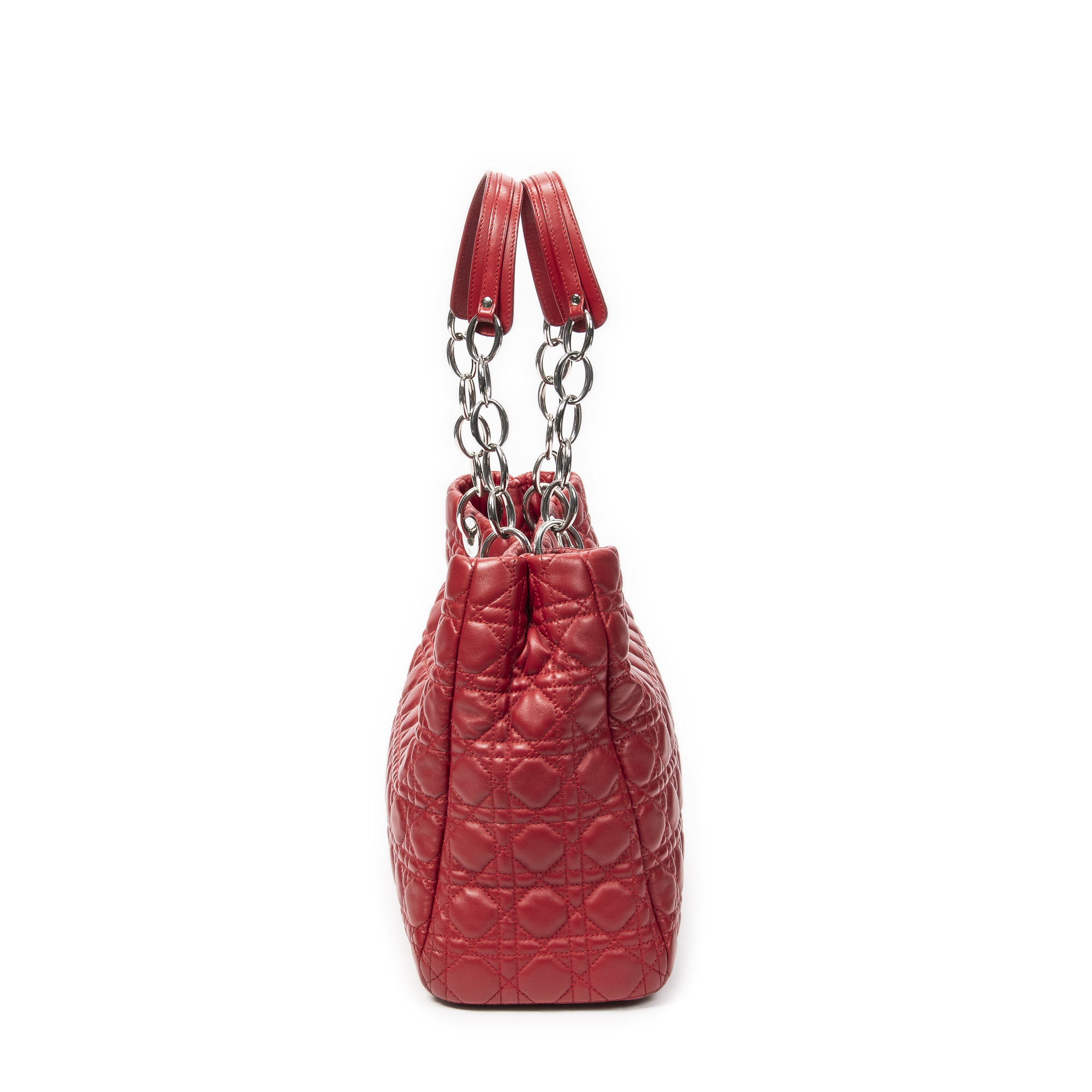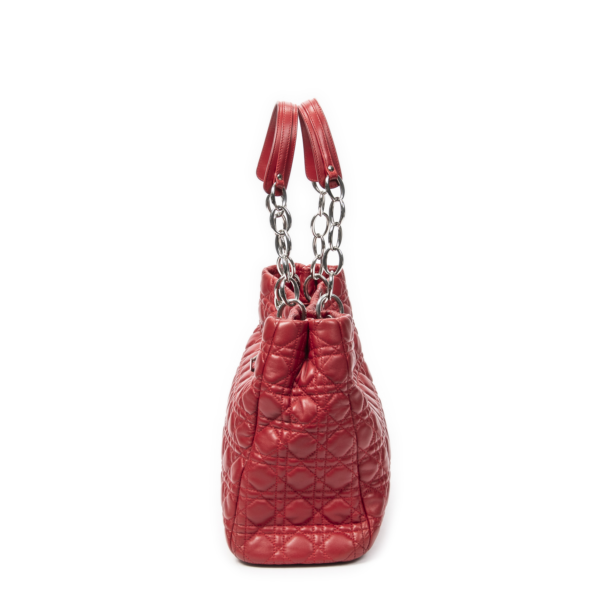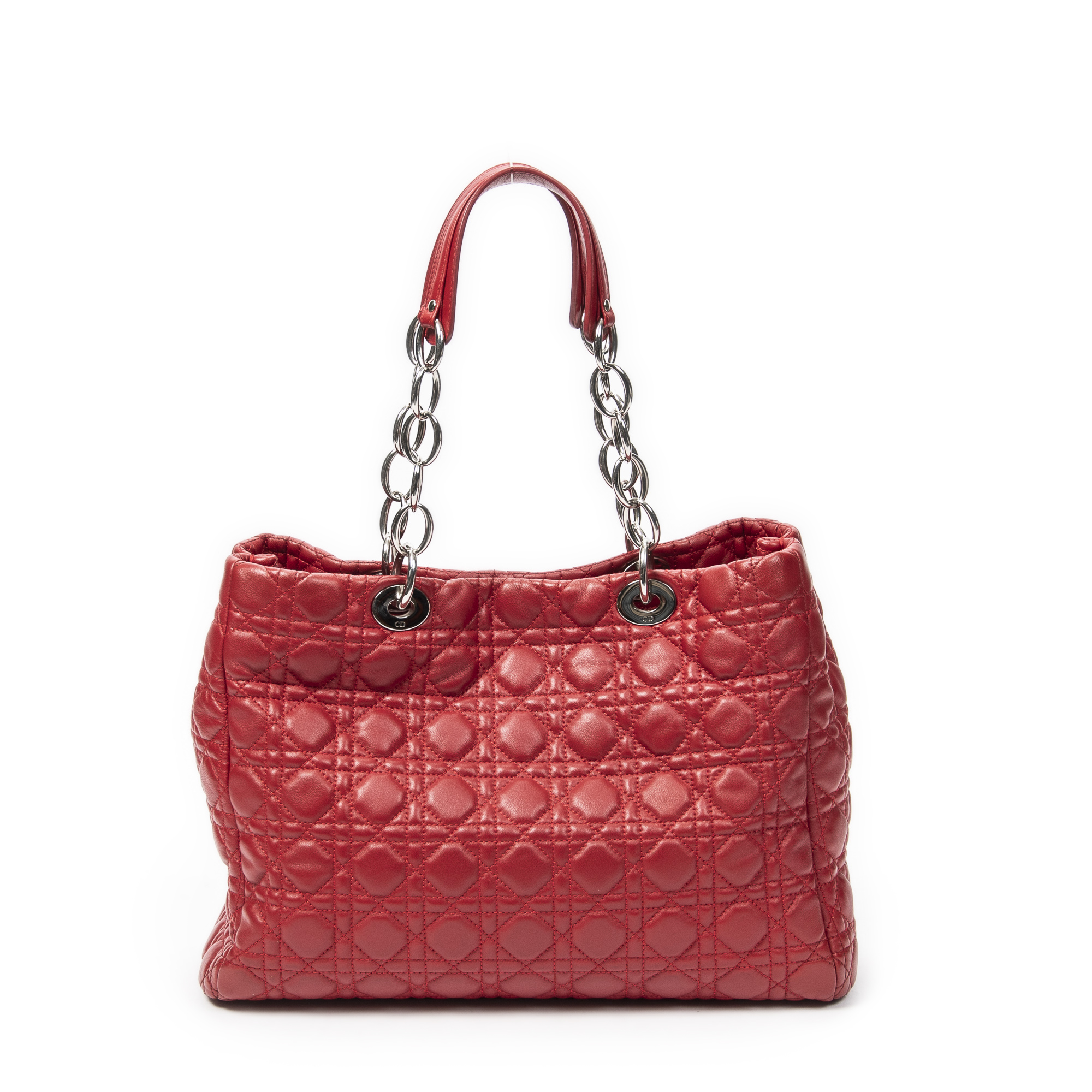 Dior Shoulder Bag Soft Shopping Tote in Red Cannage Lambskin Leather and Silver hardware. The product is in Excellent Condition (A).