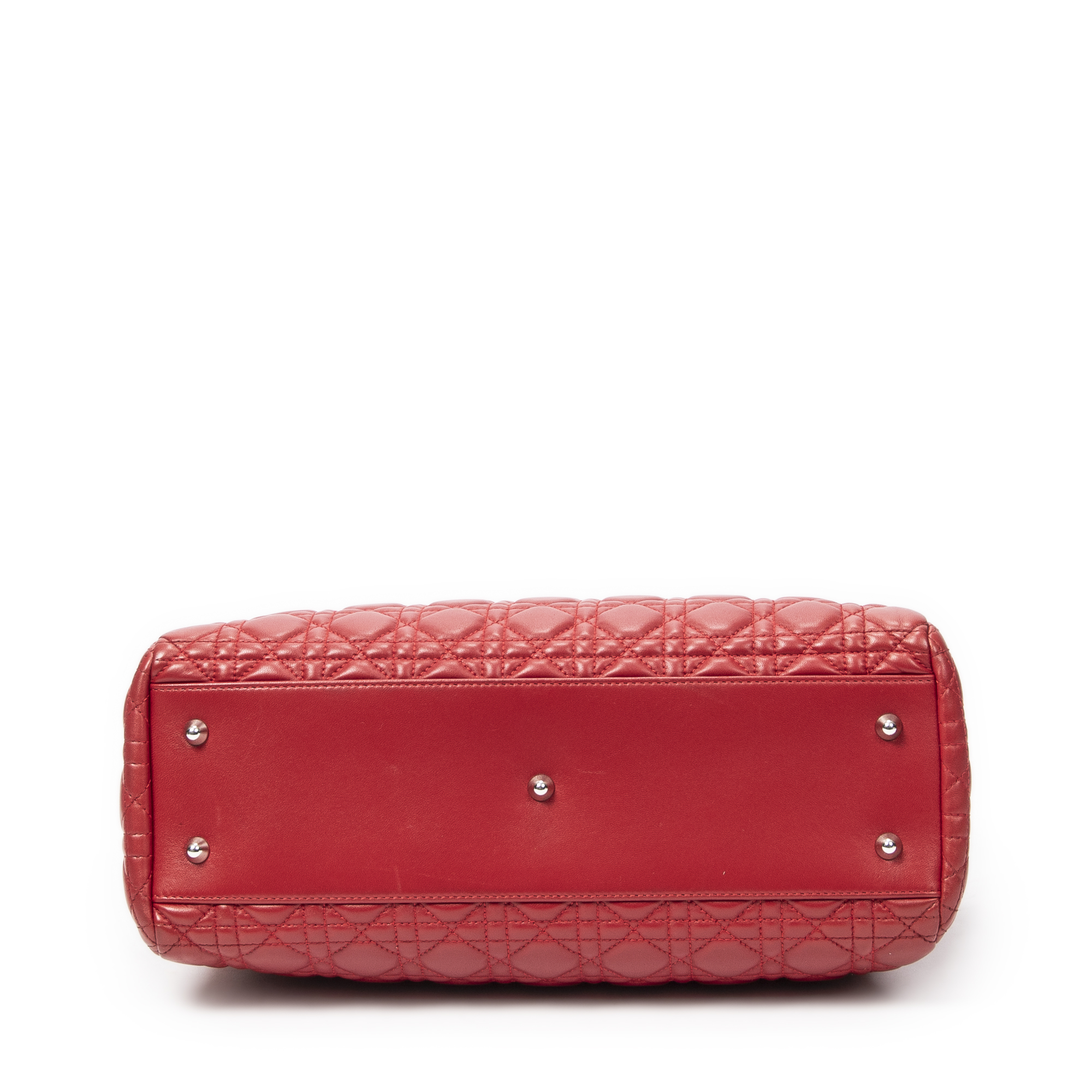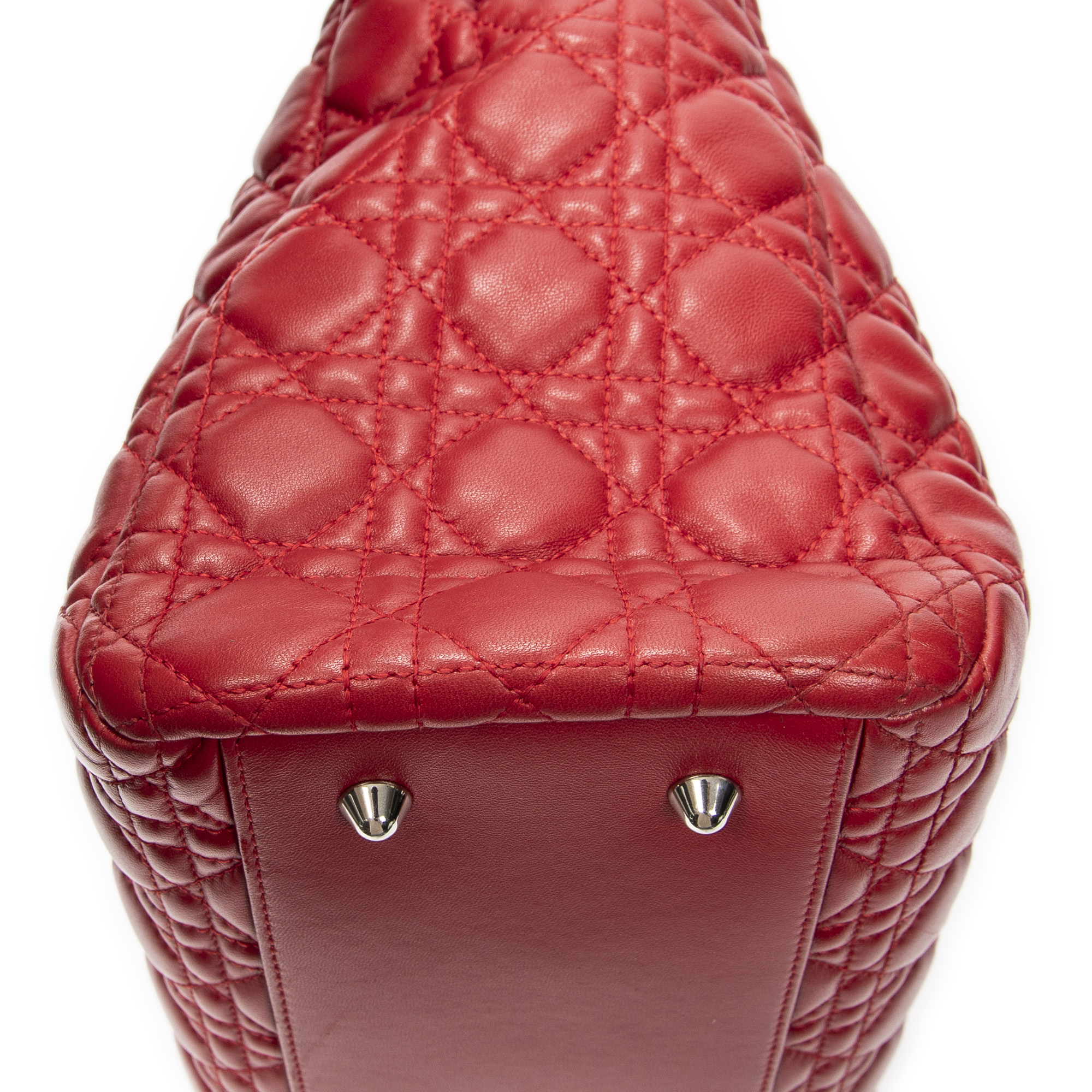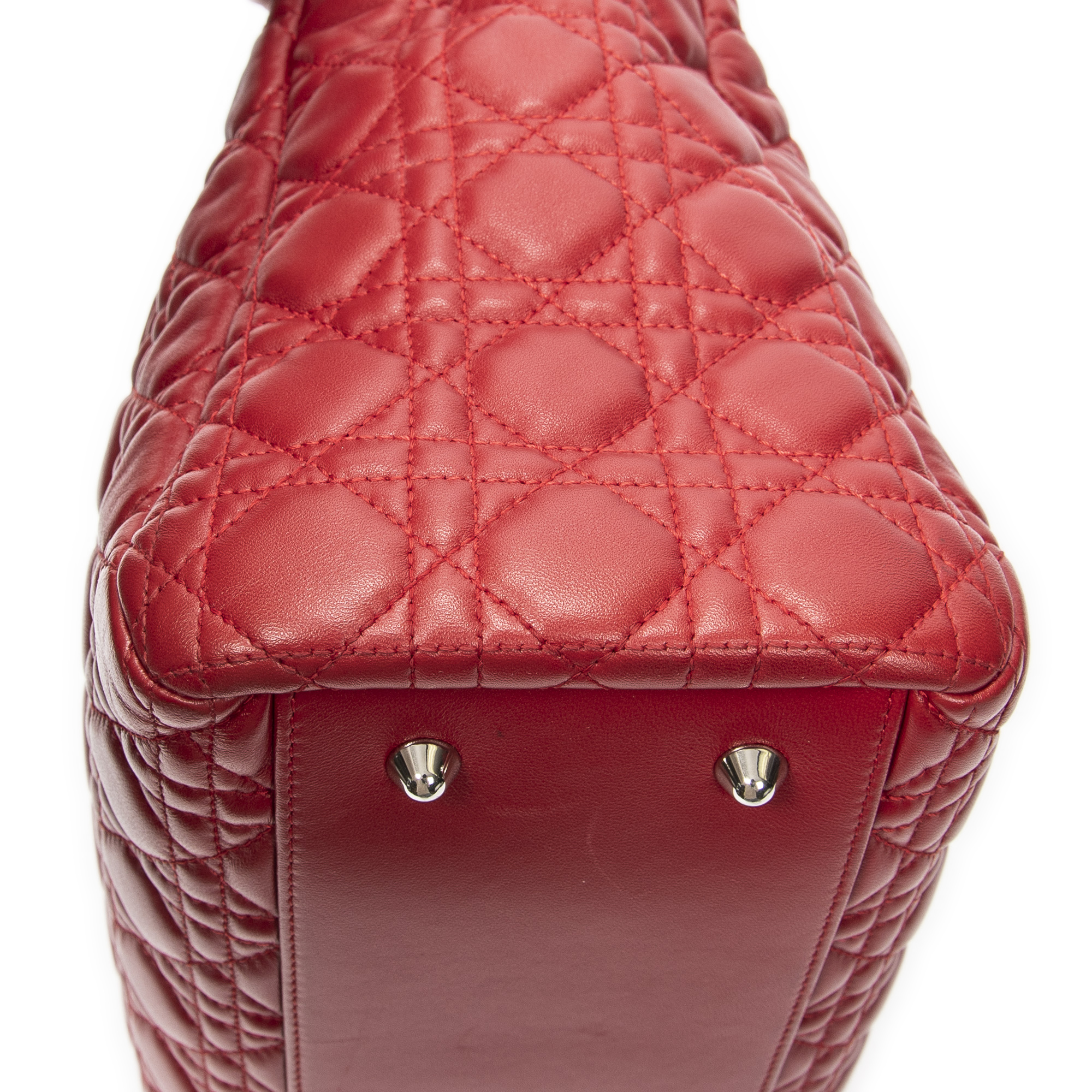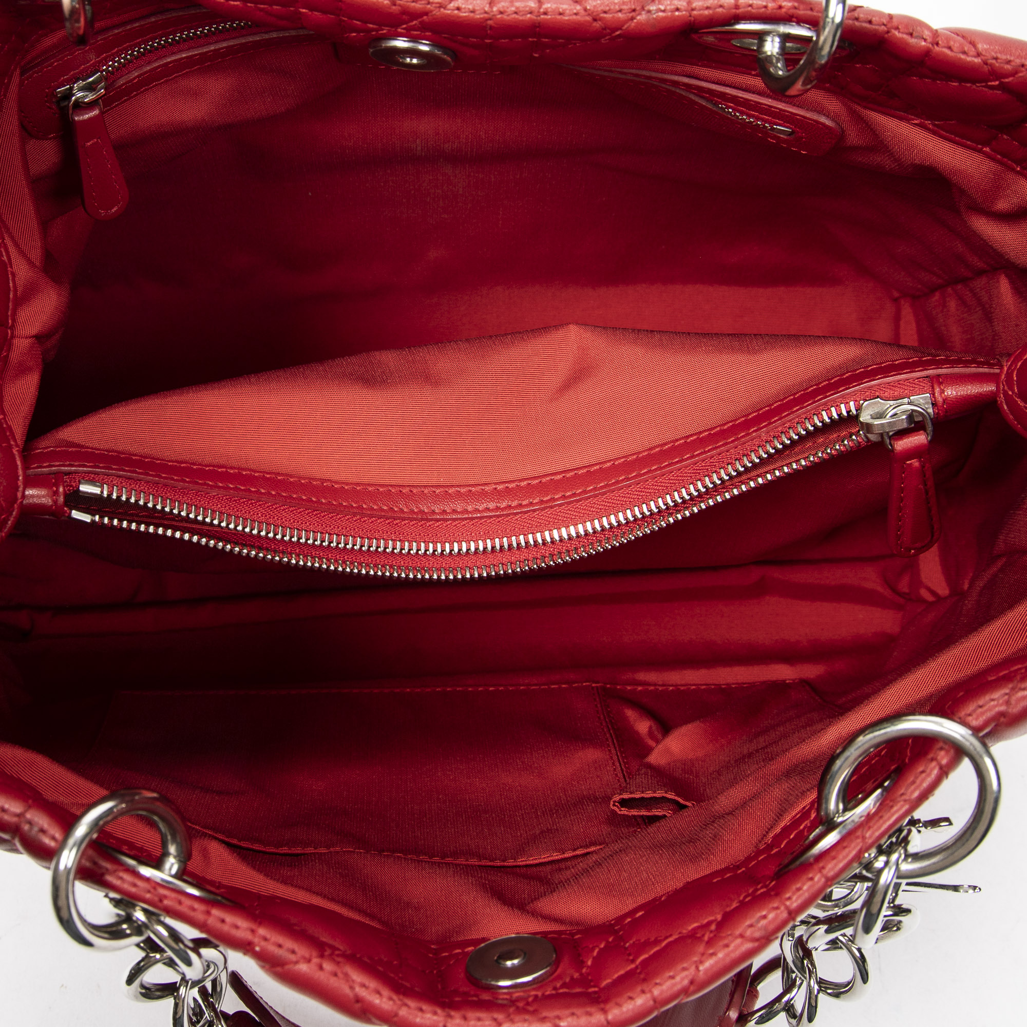 Dior Shoulder Bag Soft Shopping Tote in Red Cannage Lambskin Leather and Silver hardware. The product is in Excellent Condition (A).