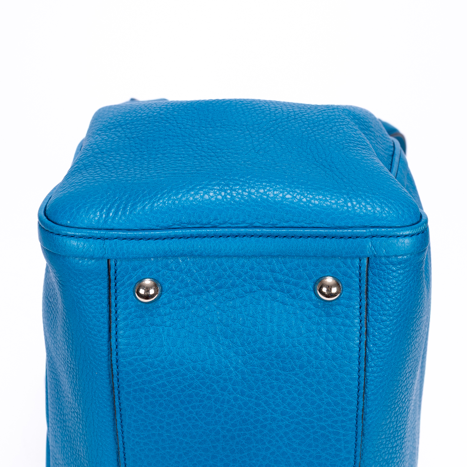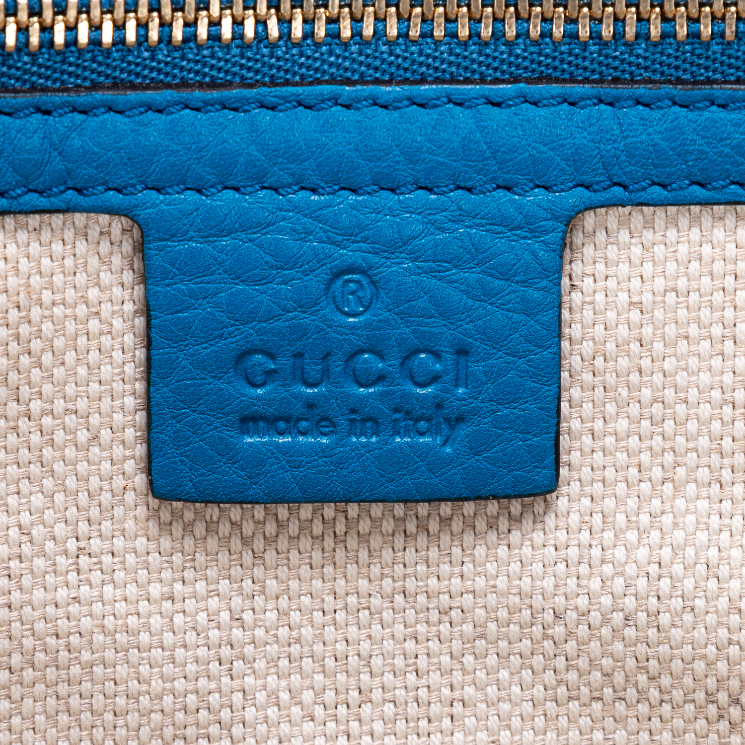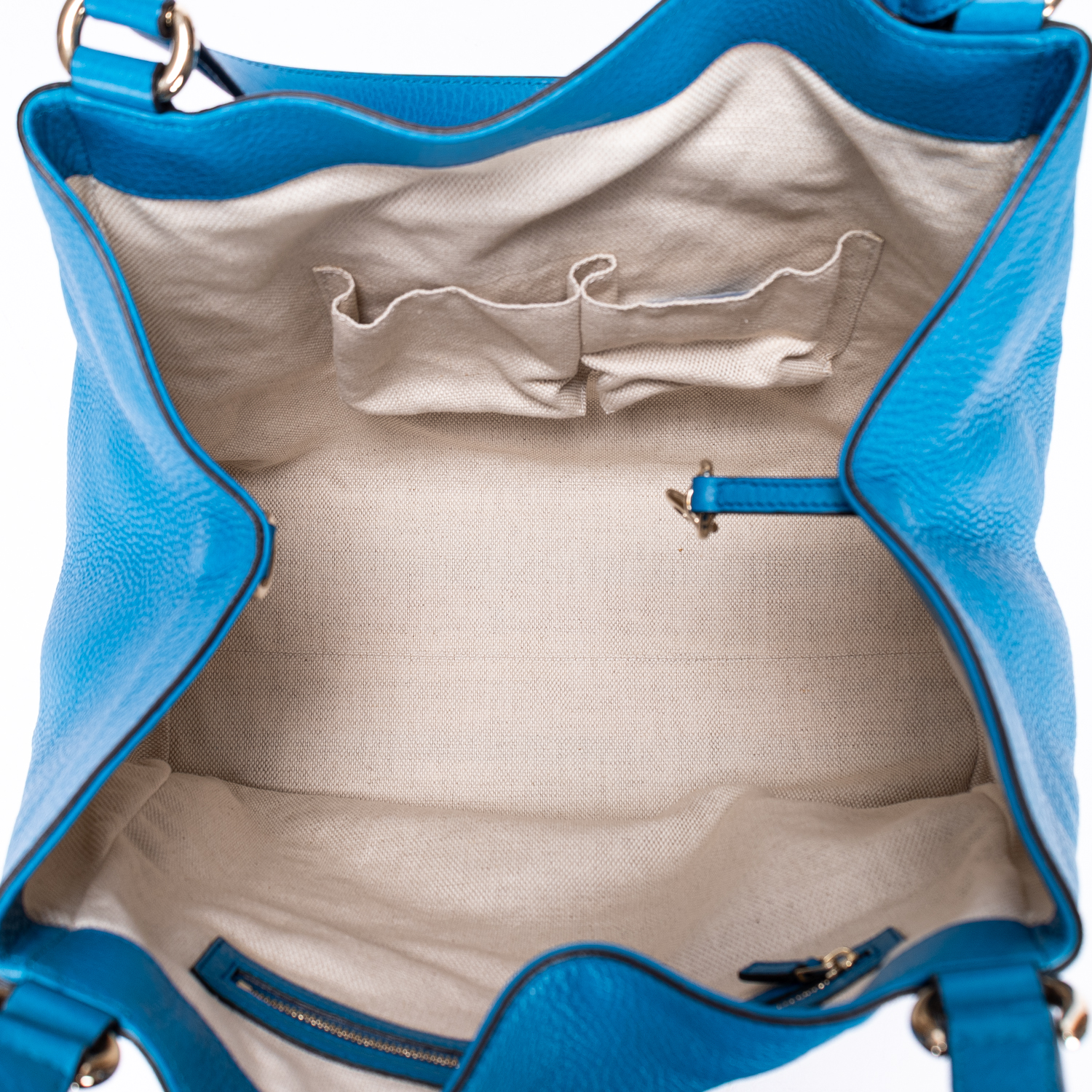 Gucci Shoulder Bag Soho Top Handle Tote Bag in Blue Pebbled Leather and Champagne Gold hardware. The product is in Perfect Condition (AA).
