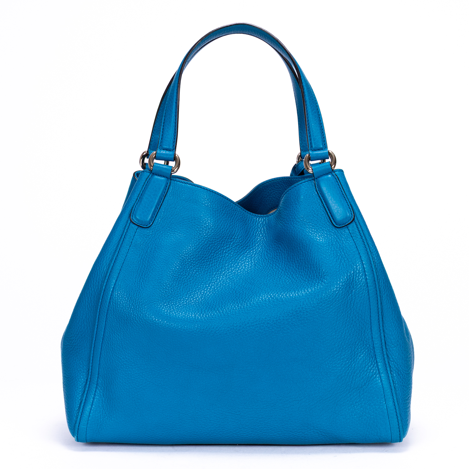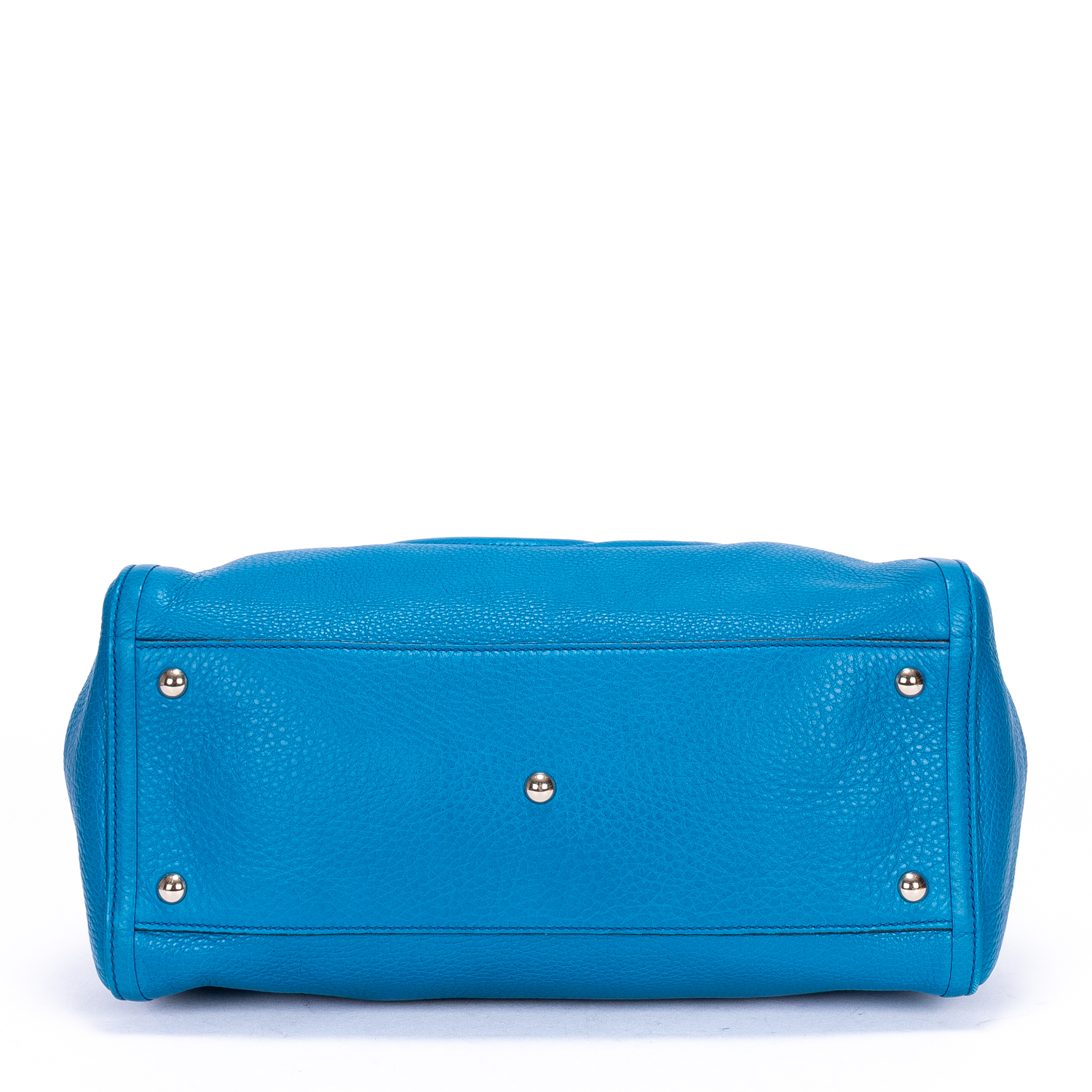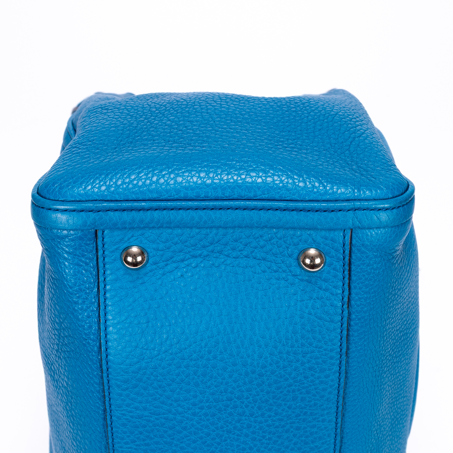Gucci Shoulder Bag Soho Top Handle Tote Bag in Blue Pebbled Leather and Champagne Gold hardware. The product is in Perfect Condition (AA).