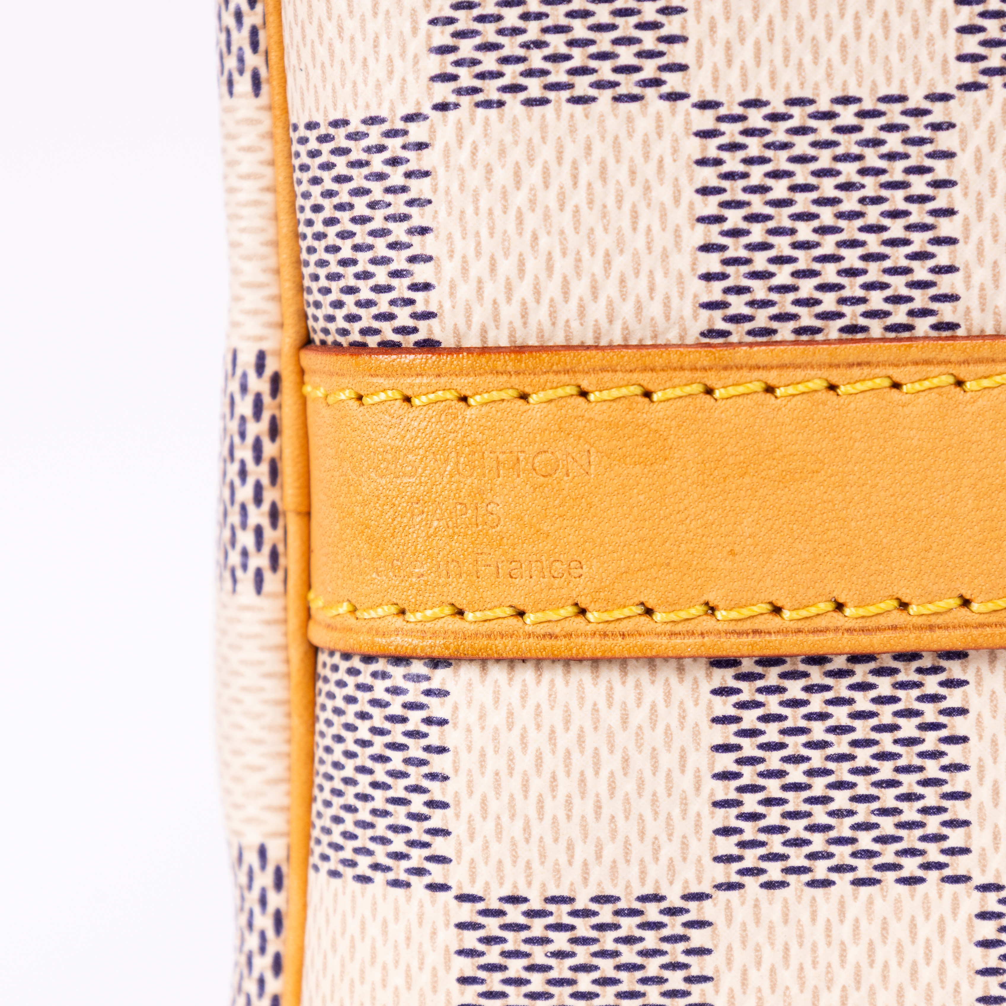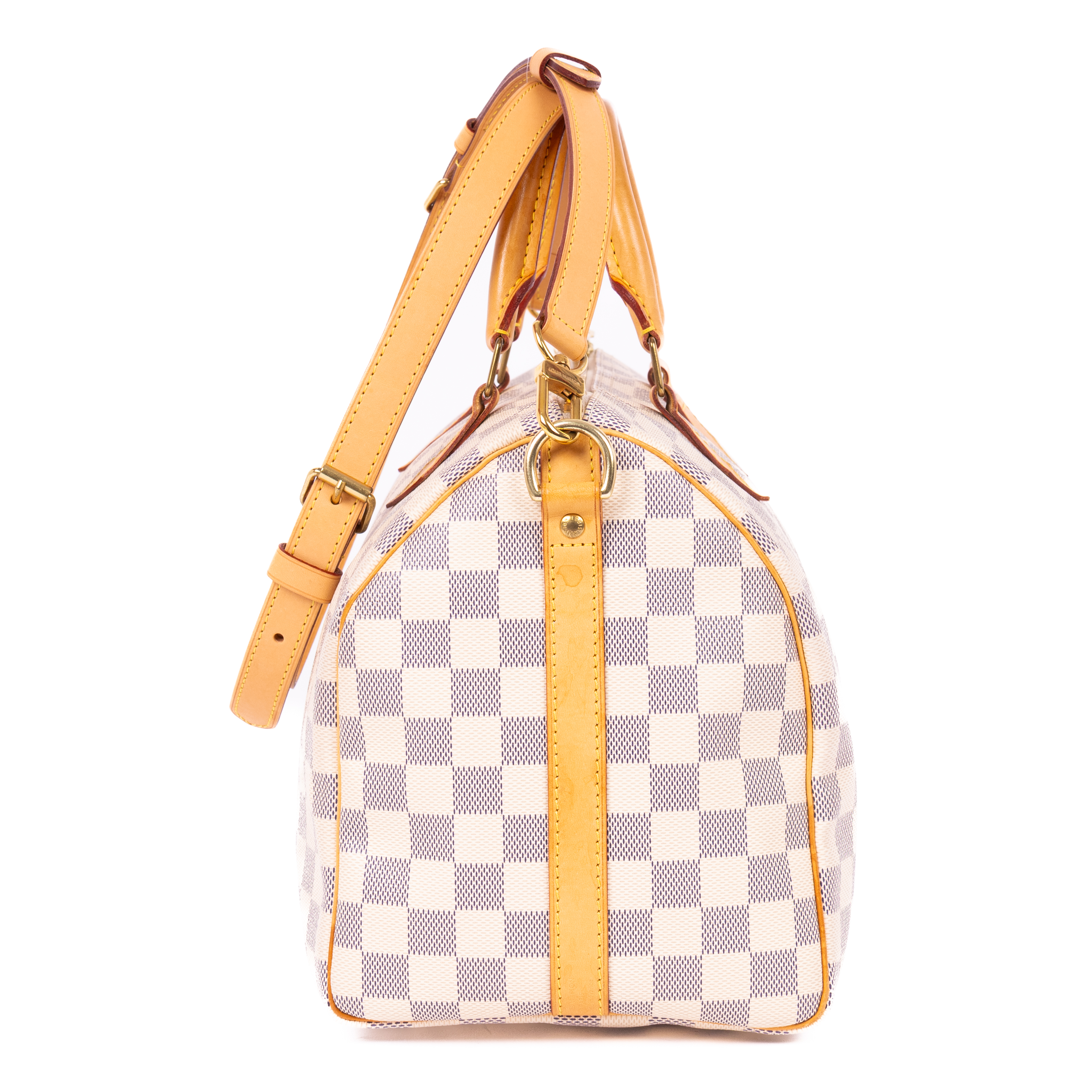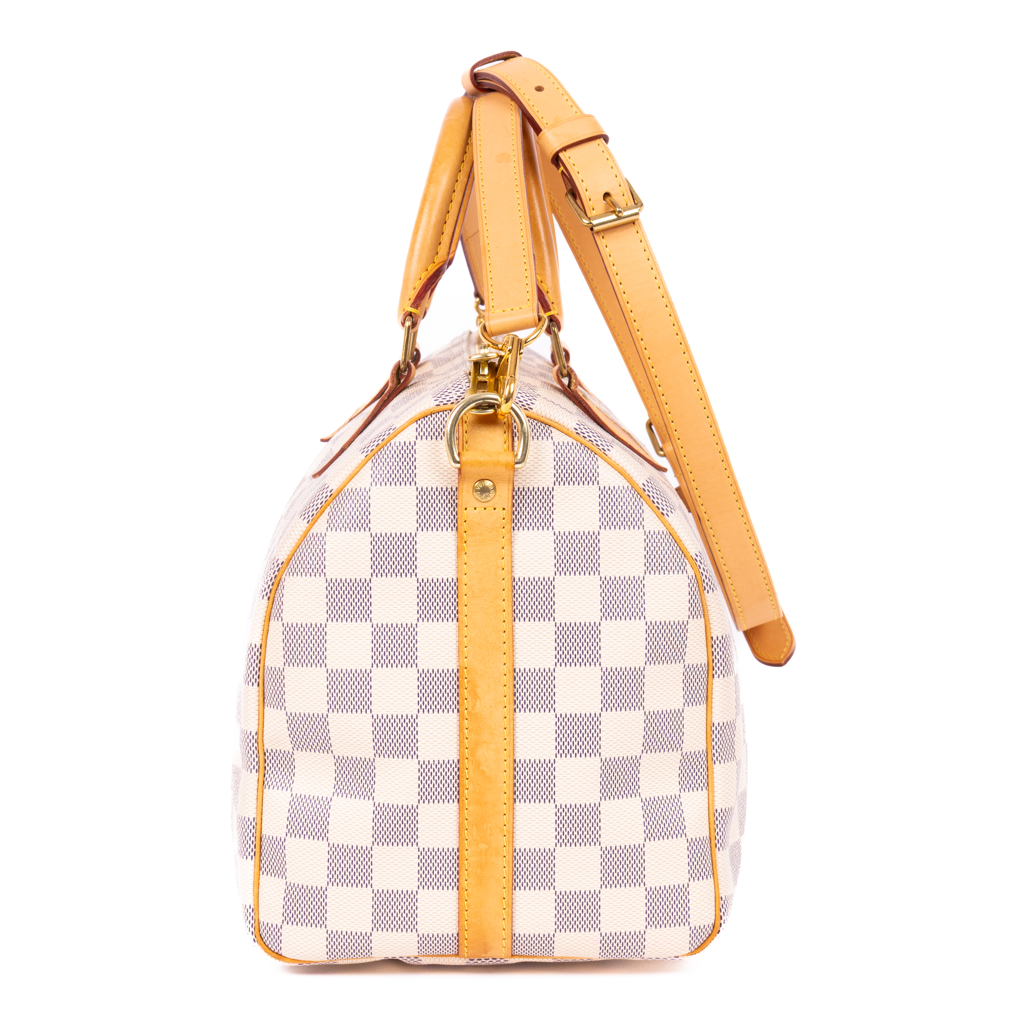 Louis Vuitton Shoulder Bag Speedy Bandouliere 30 in Ivory Damier Azur and Golden Brass hardware. The product is in Very Good Condition (AB).