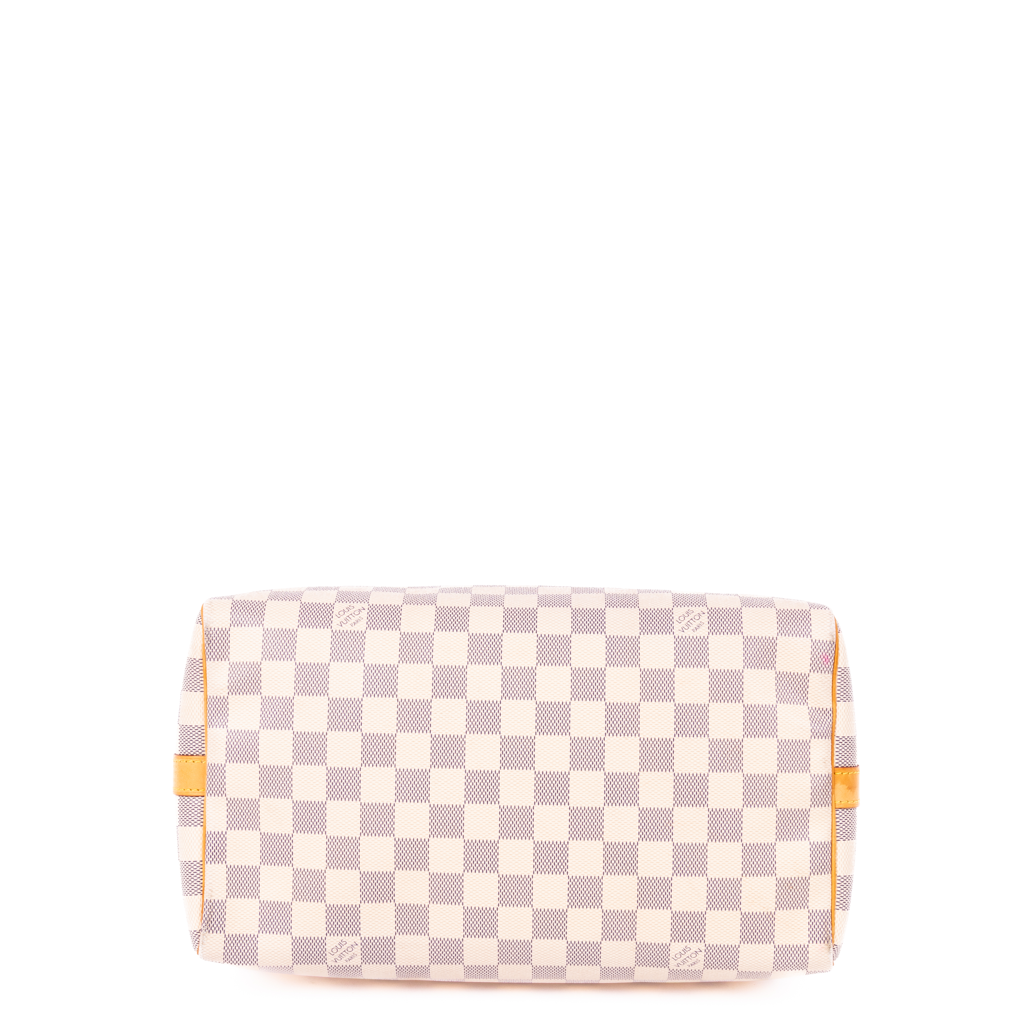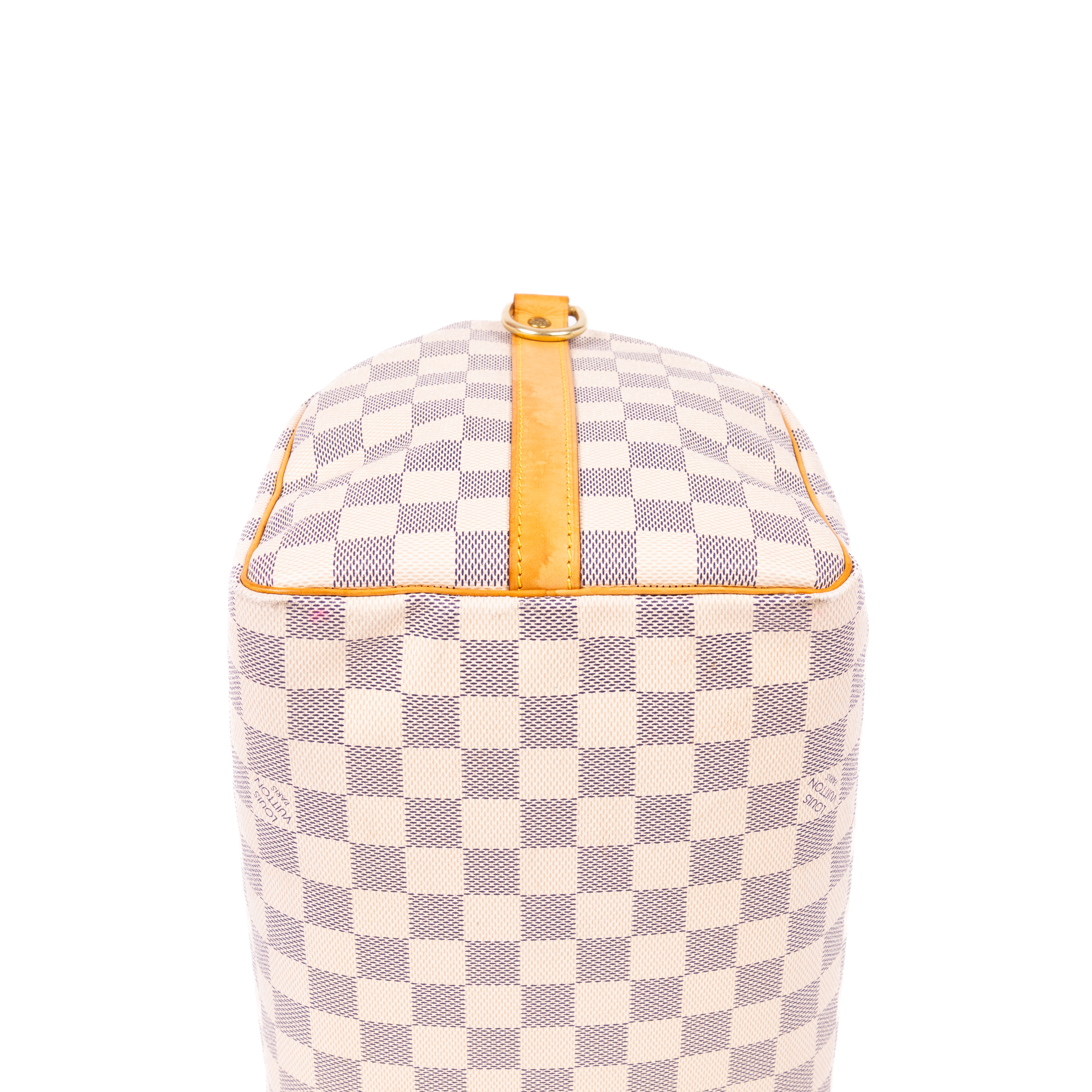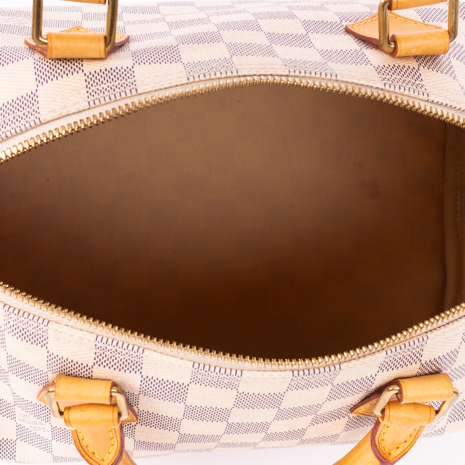 Louis Vuitton Shoulder Bag Speedy Bandouliere 30 in Ivory Damier Azur and Golden Brass hardware. The product is in Very Good Condition (AB).