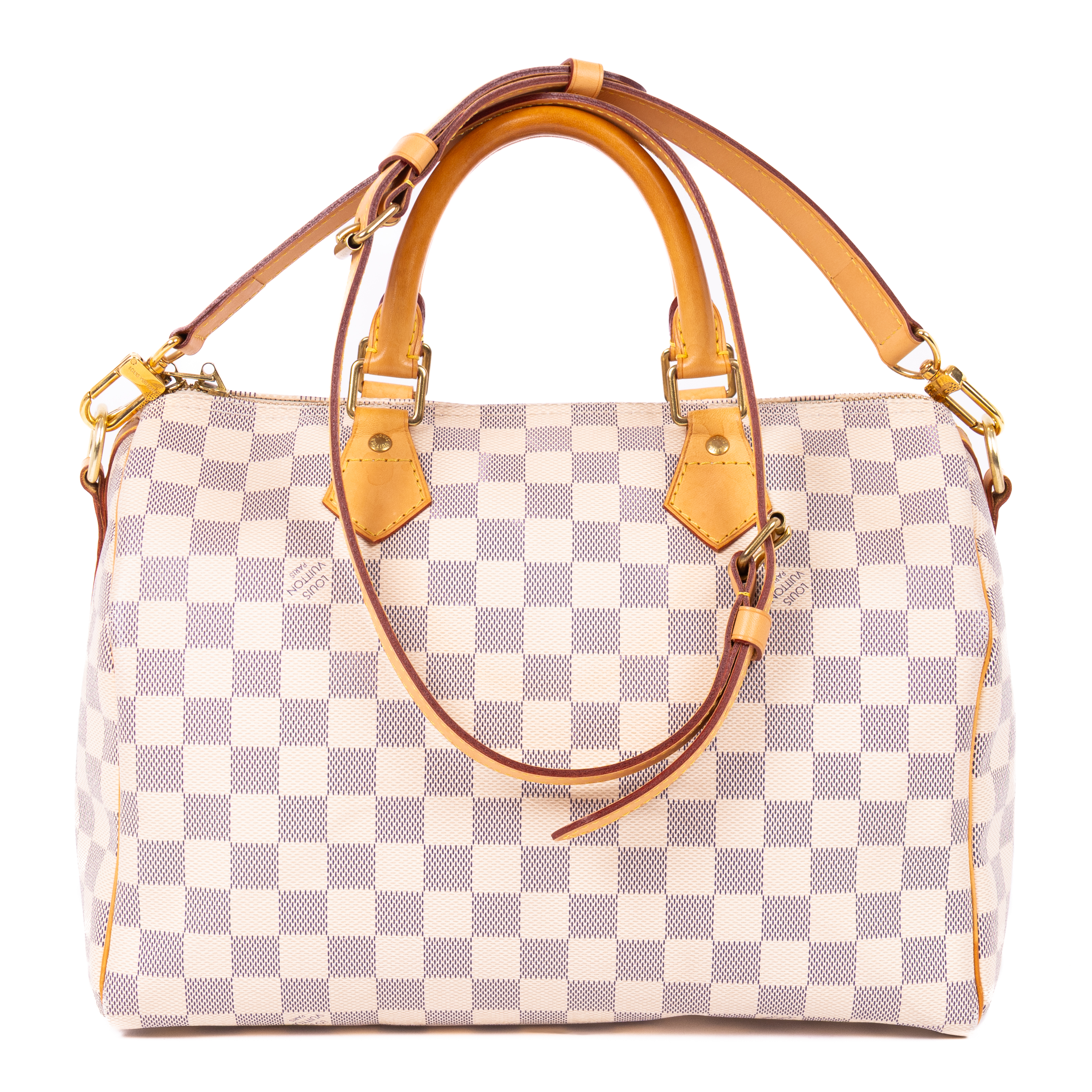 Description : Louis Vuitton Shoulder Bag Speedy Bandouliere 30 in Ivory Damier Azur and Golden Brass hardware. The product is in Very Good Condition (AB). Dimensions: 30x21x17 cm SKU: GTA1497 Serial number: SP0173 Accessories Included: Strap Delivery: We have a 5 to 7 business days delivery policy, hassle-free and duties/tariffs included! BrandCo Paris finds rare and top condition items at great deals, they are worth your patience! Shop with confidence - All BrandCo Paris items are carefully selected and authenticated by our team of experts. All the items come with an authenticity certificate and packaging delivered by BrandCo Paris. Item Condition Grading Table N (Like New) AA (Perfect Condition) A (Excellent Condition) AB (Very Good Condition) B (Good/Fair)