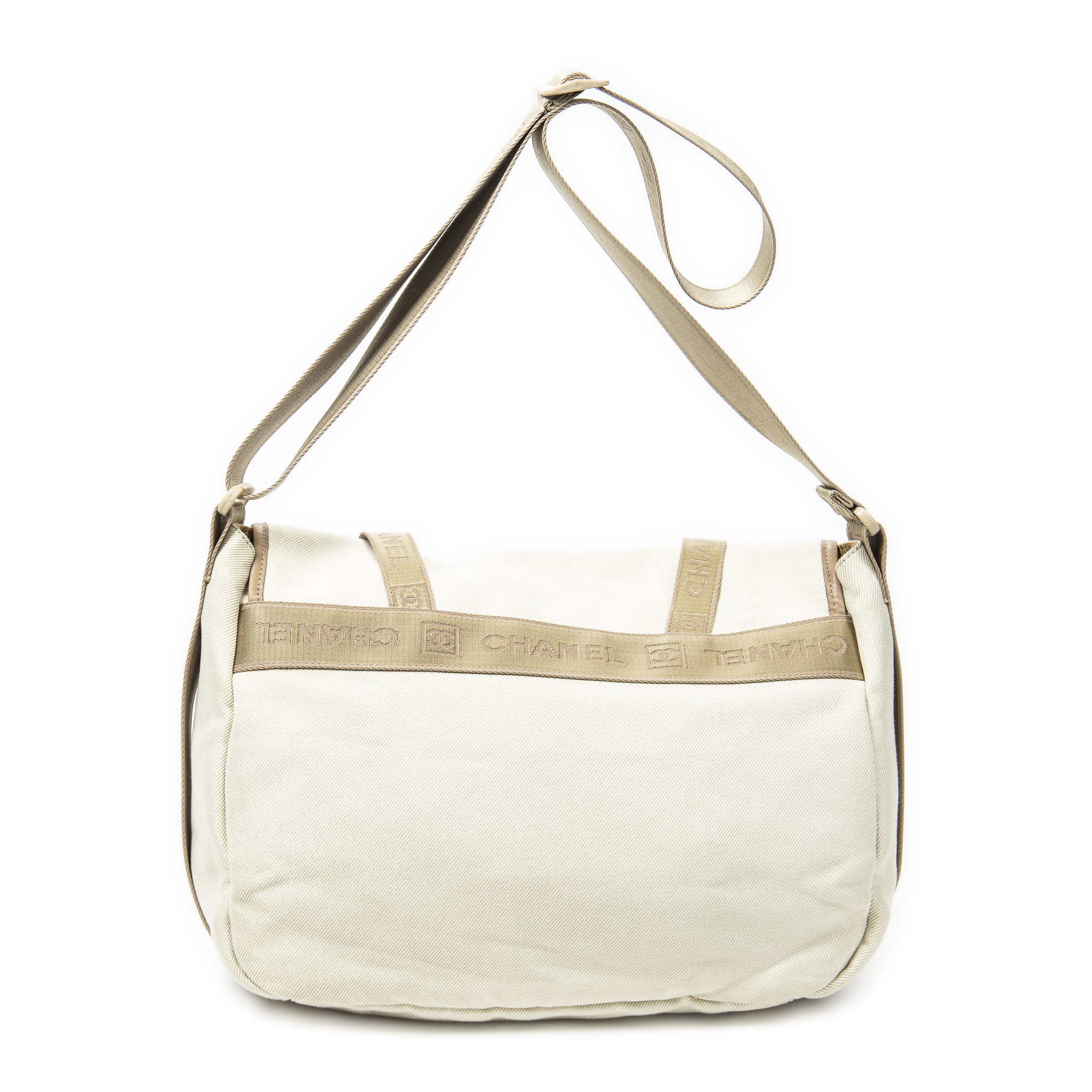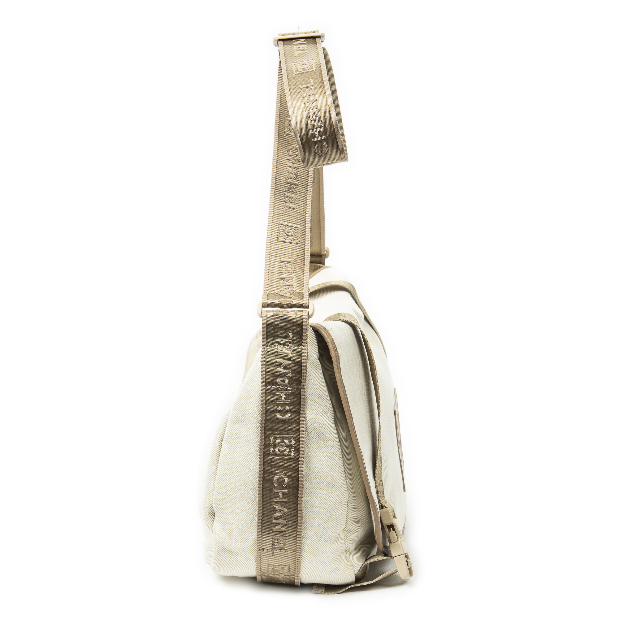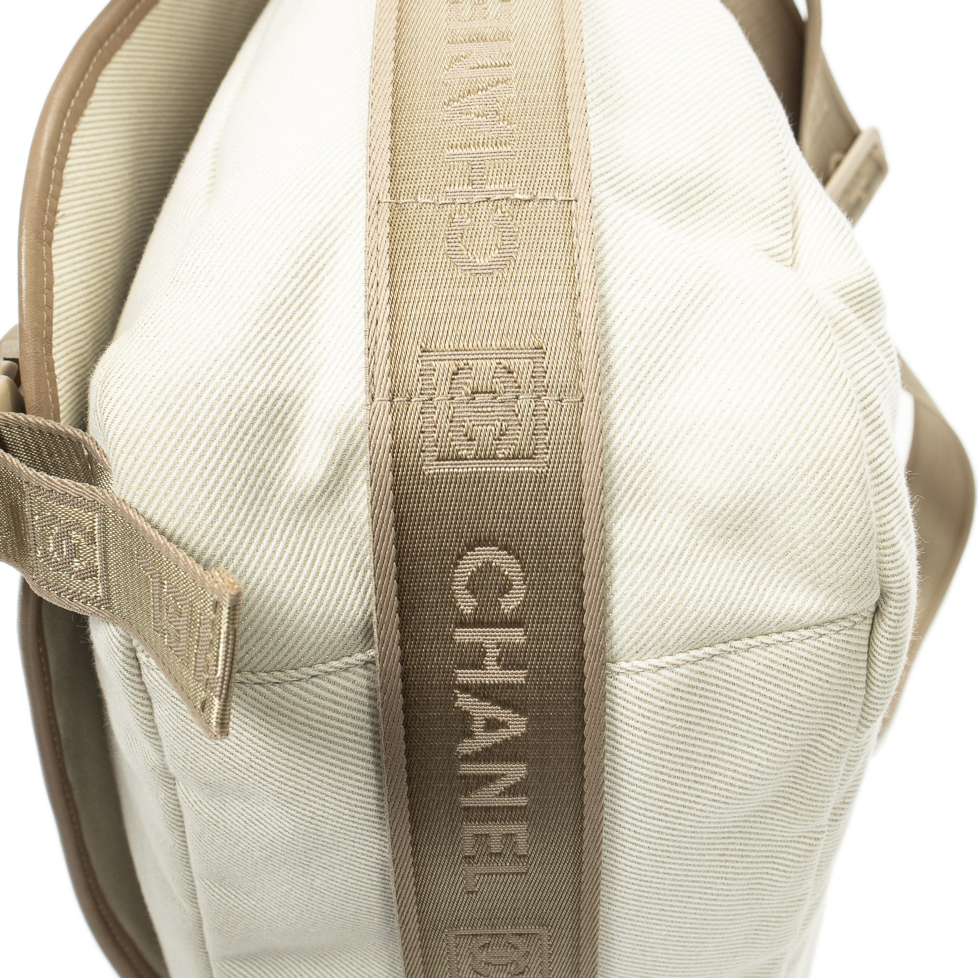 Chanel Shoulder bag Sports Flap Messenger in Ivory/Beige Cotton Canvas and Gold hardware. The product is in Very Good Condition (AB).
