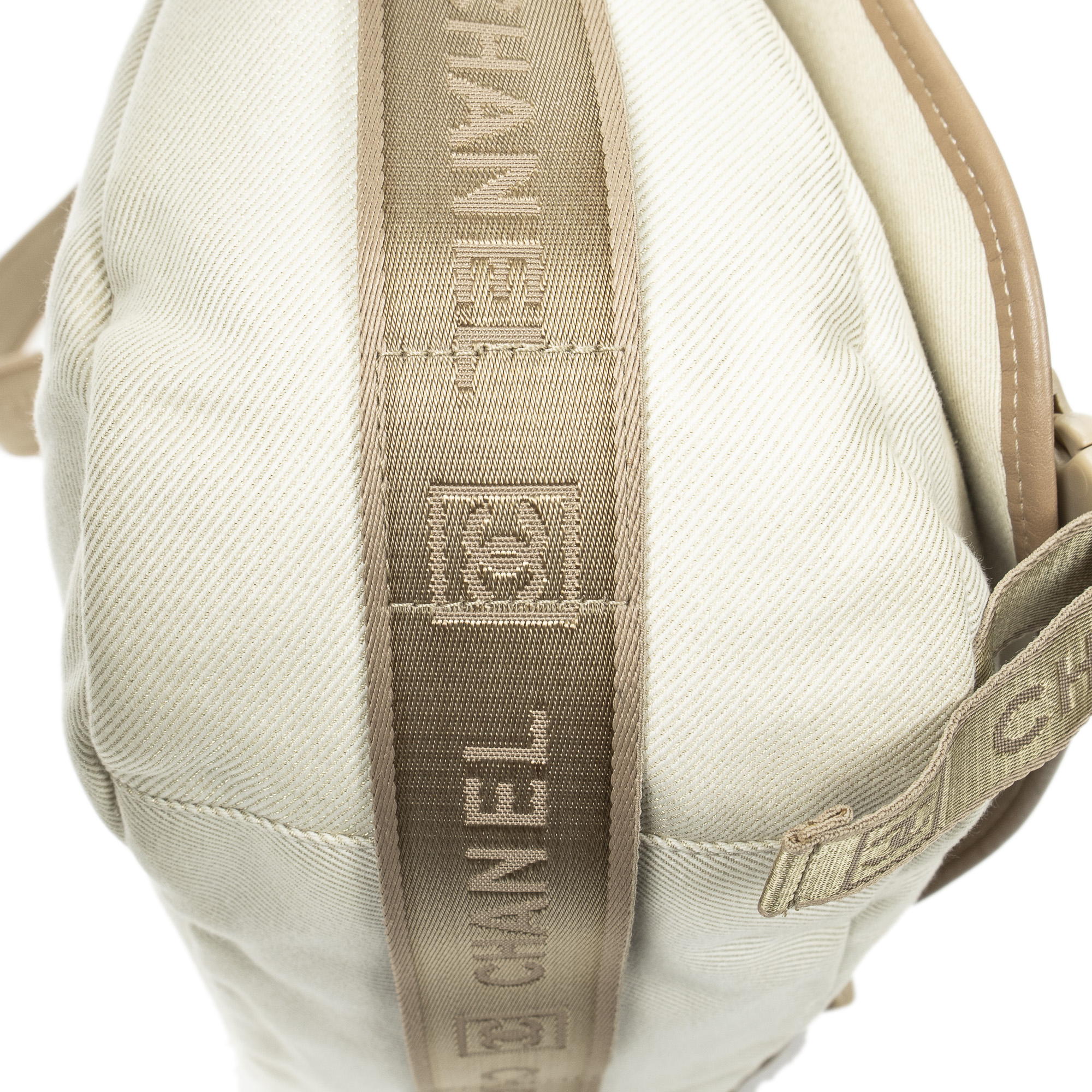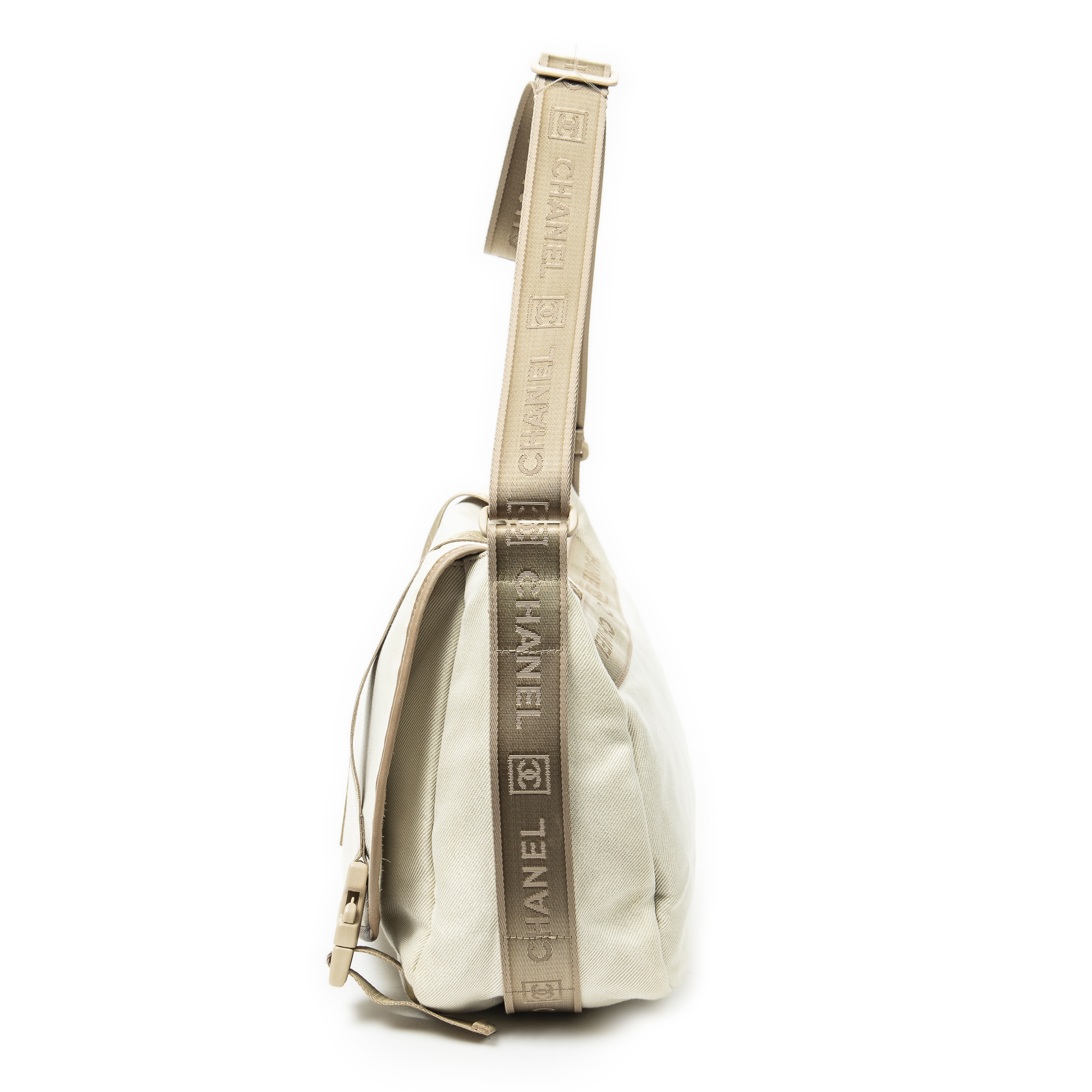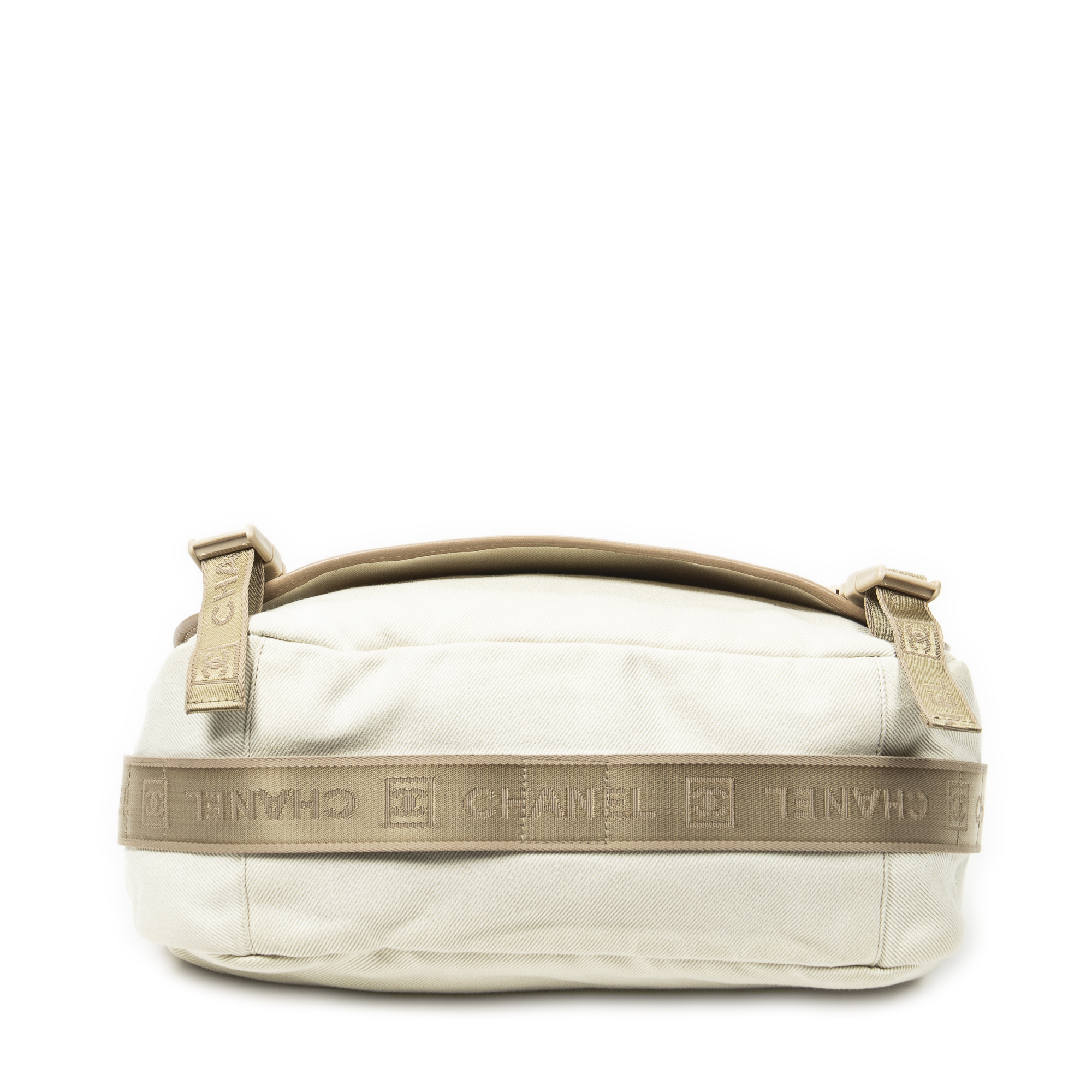 Chanel Shoulder bag Sports Flap Messenger in Ivory/Beige Cotton Canvas and Gold hardware. The product is in Very Good Condition (AB).