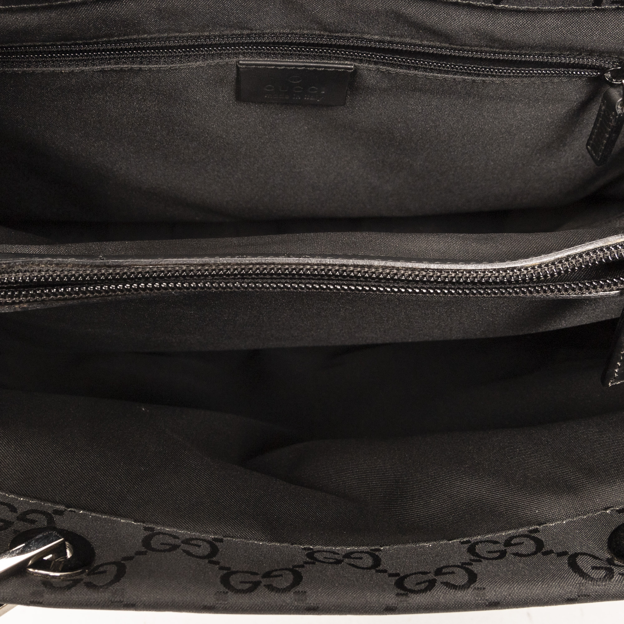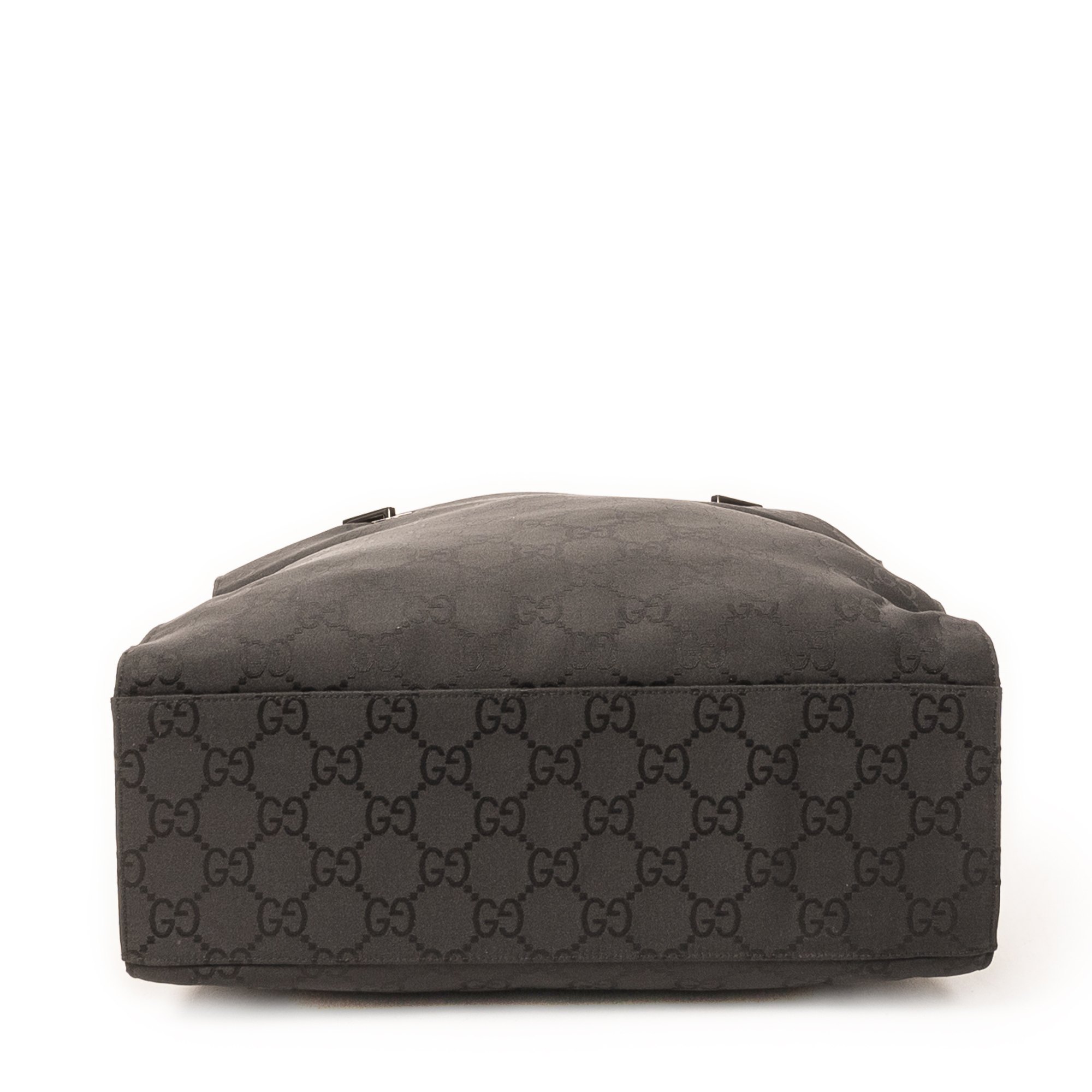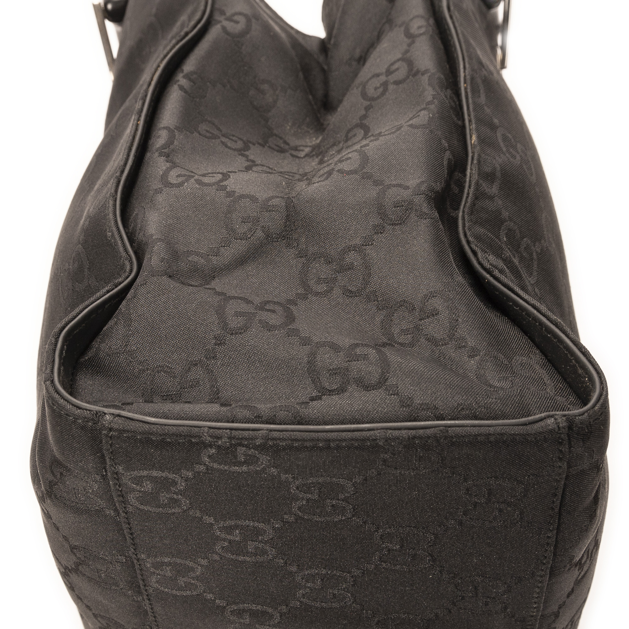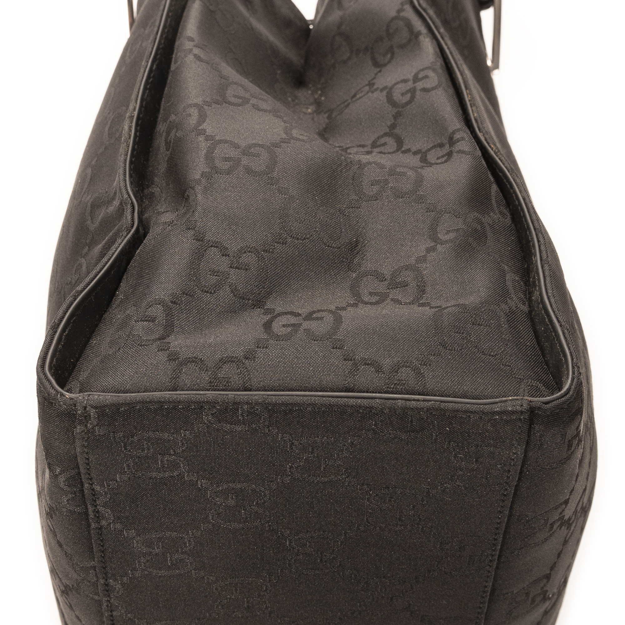 Gucci Shoulder Bag Square Bamboo Tote in Black Monogrammed Nylon Canvas and Silver hardware. The product is in Excellent Condition (A).