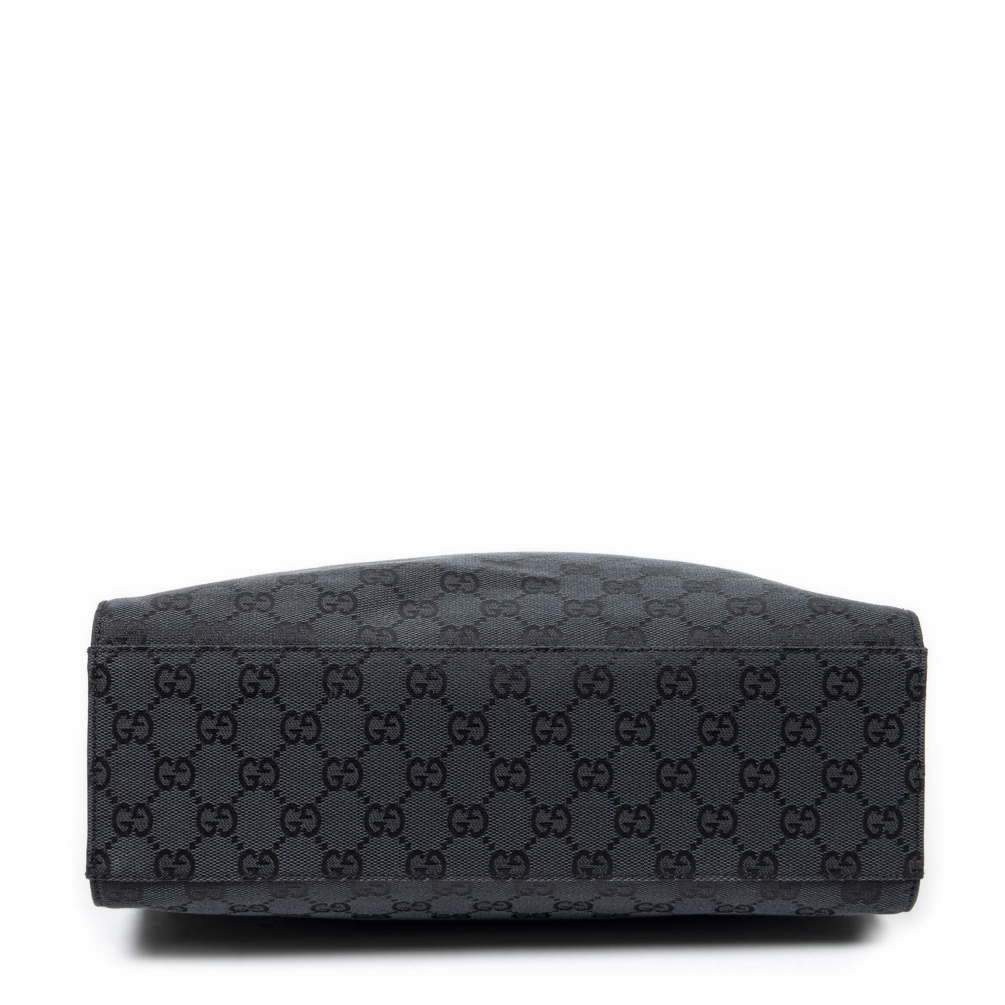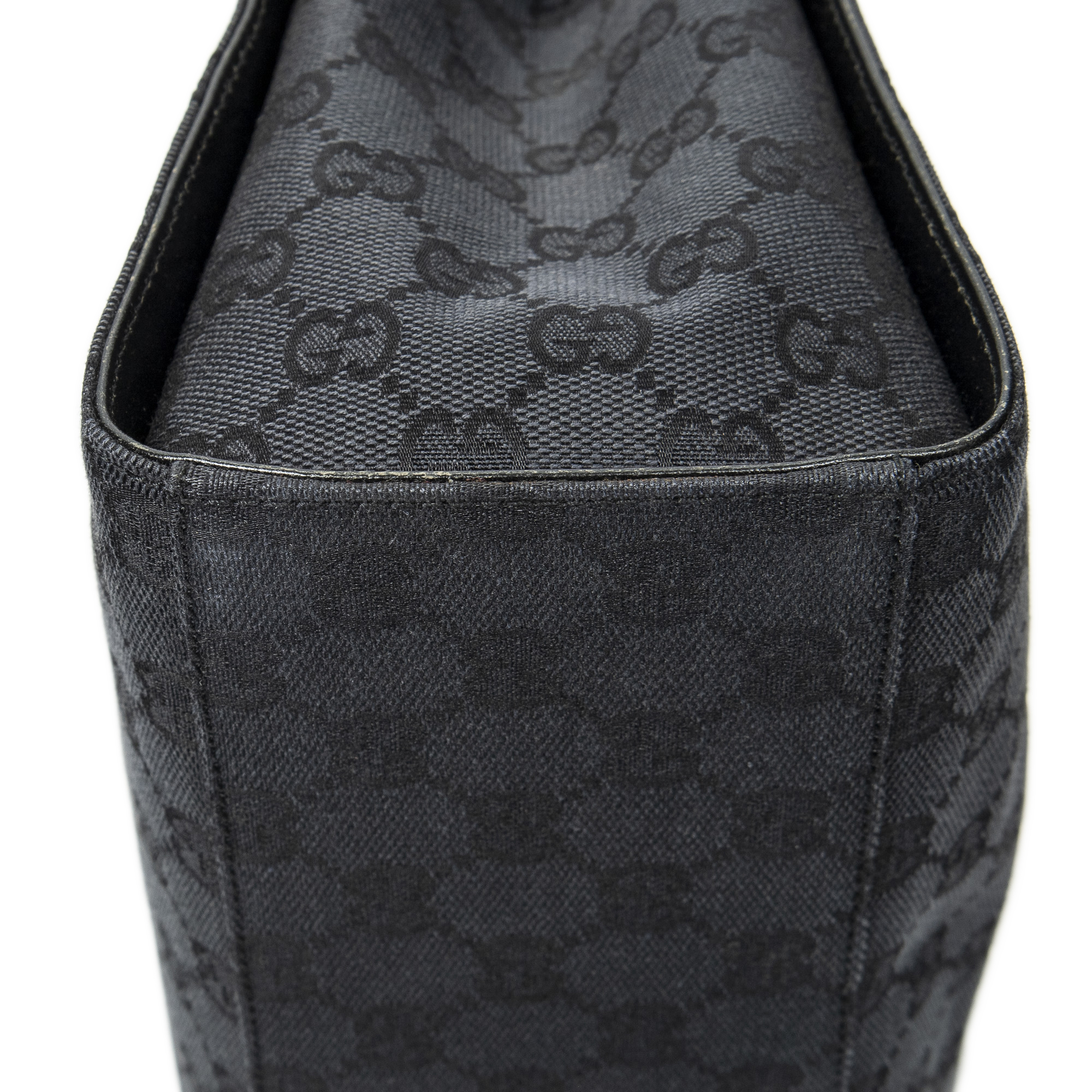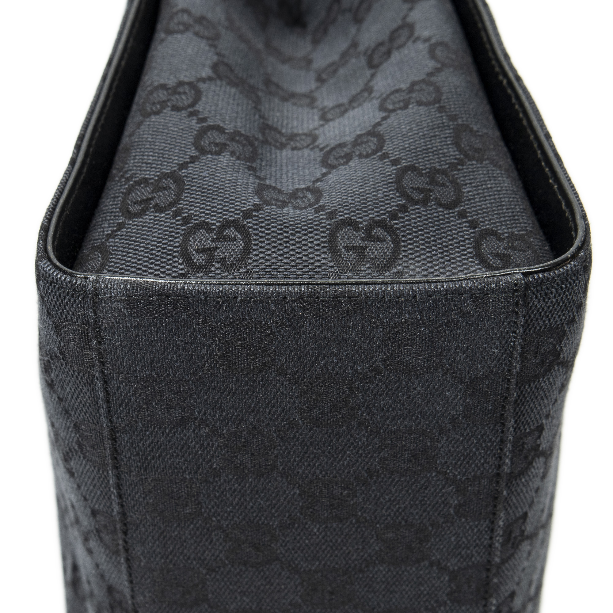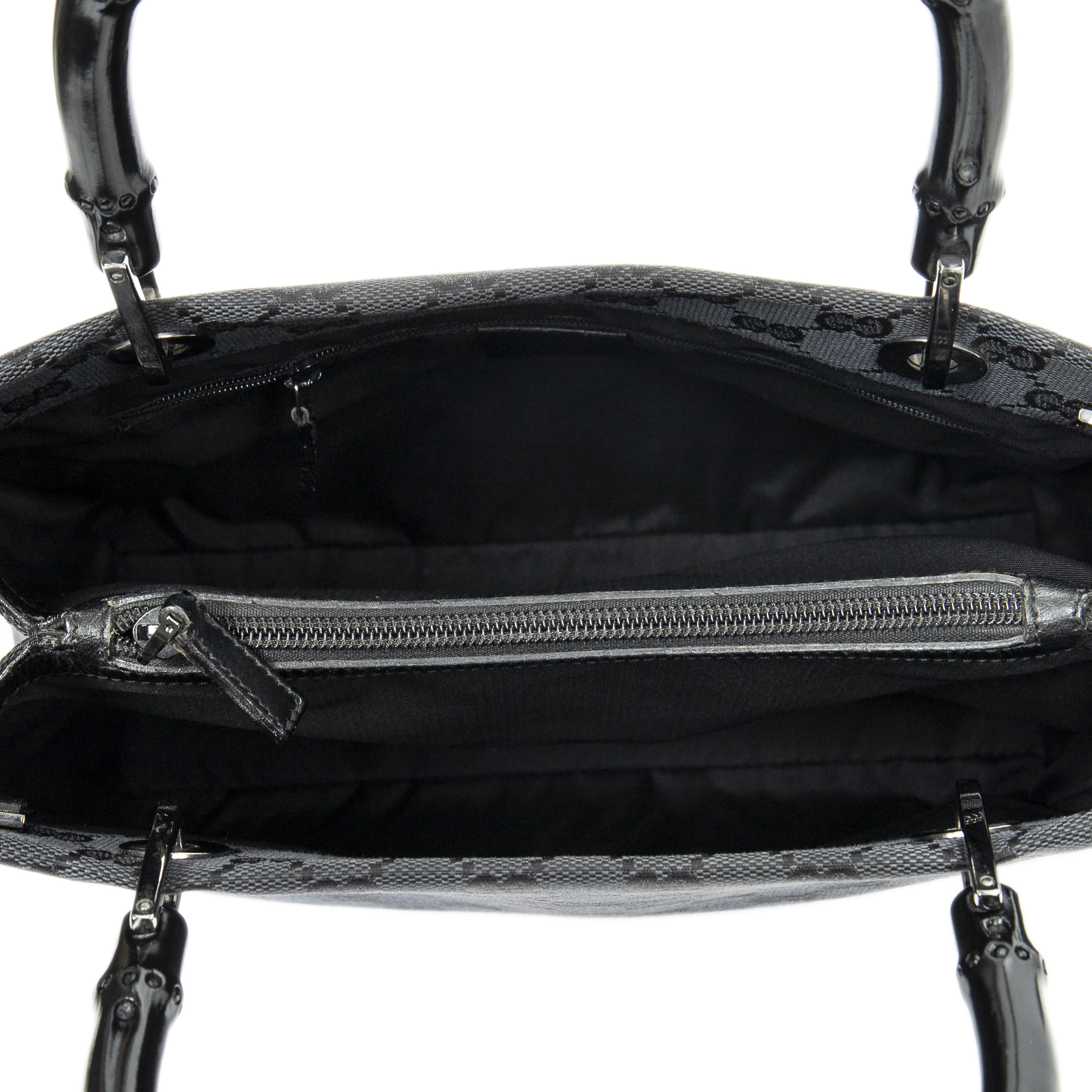 Gucci Shoulder Bag Square Bamboo Tote in Black Monogrammed Canvas and Silver hardware. The product is in Excellent Condition (A).