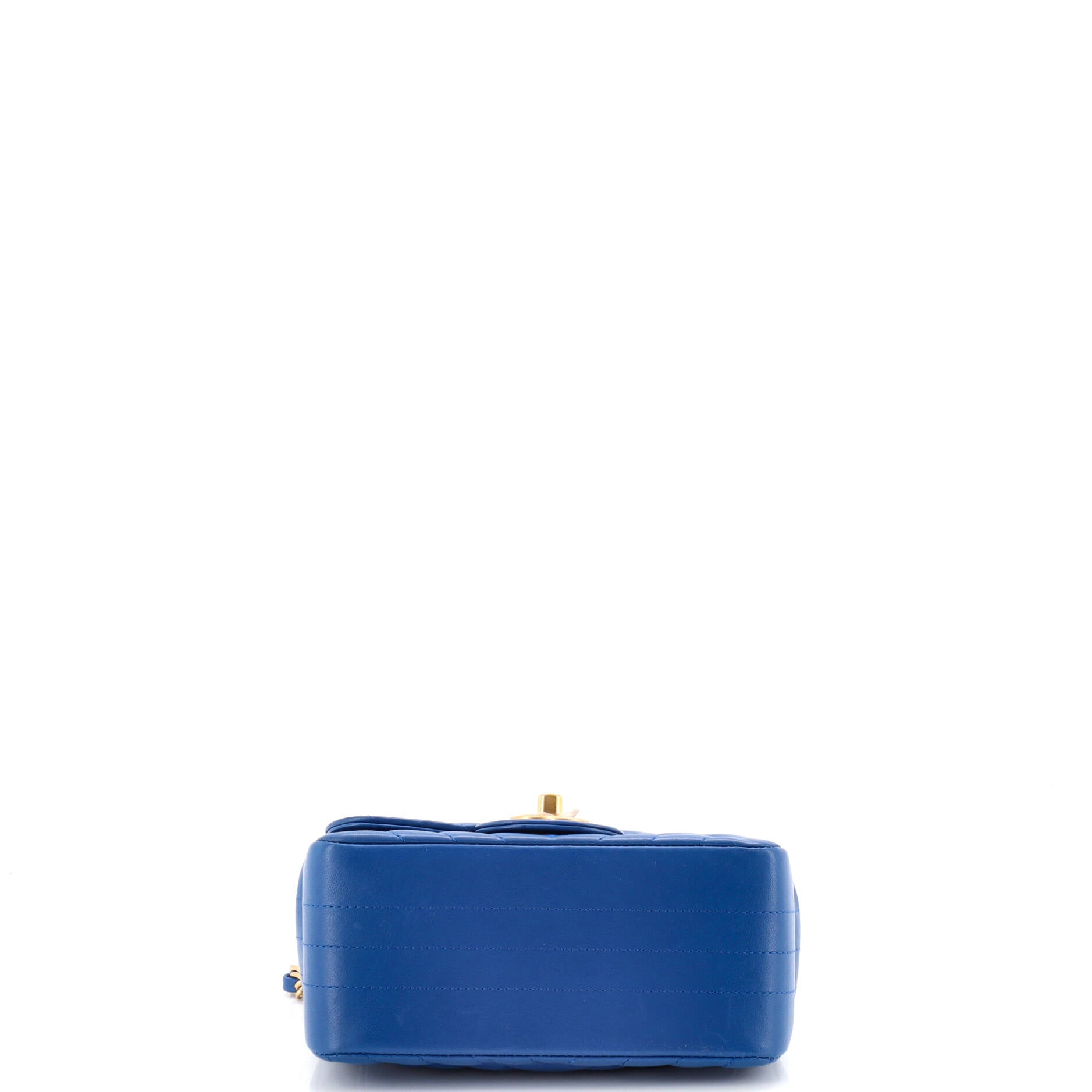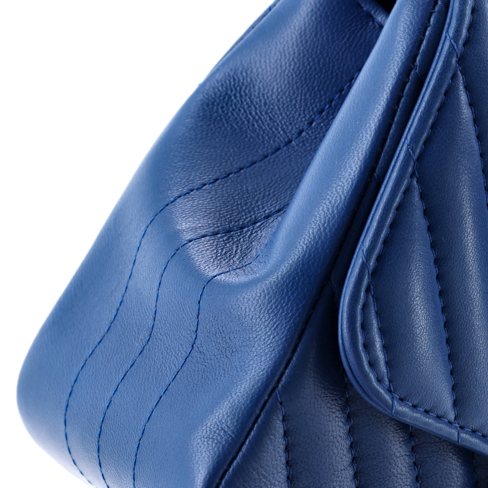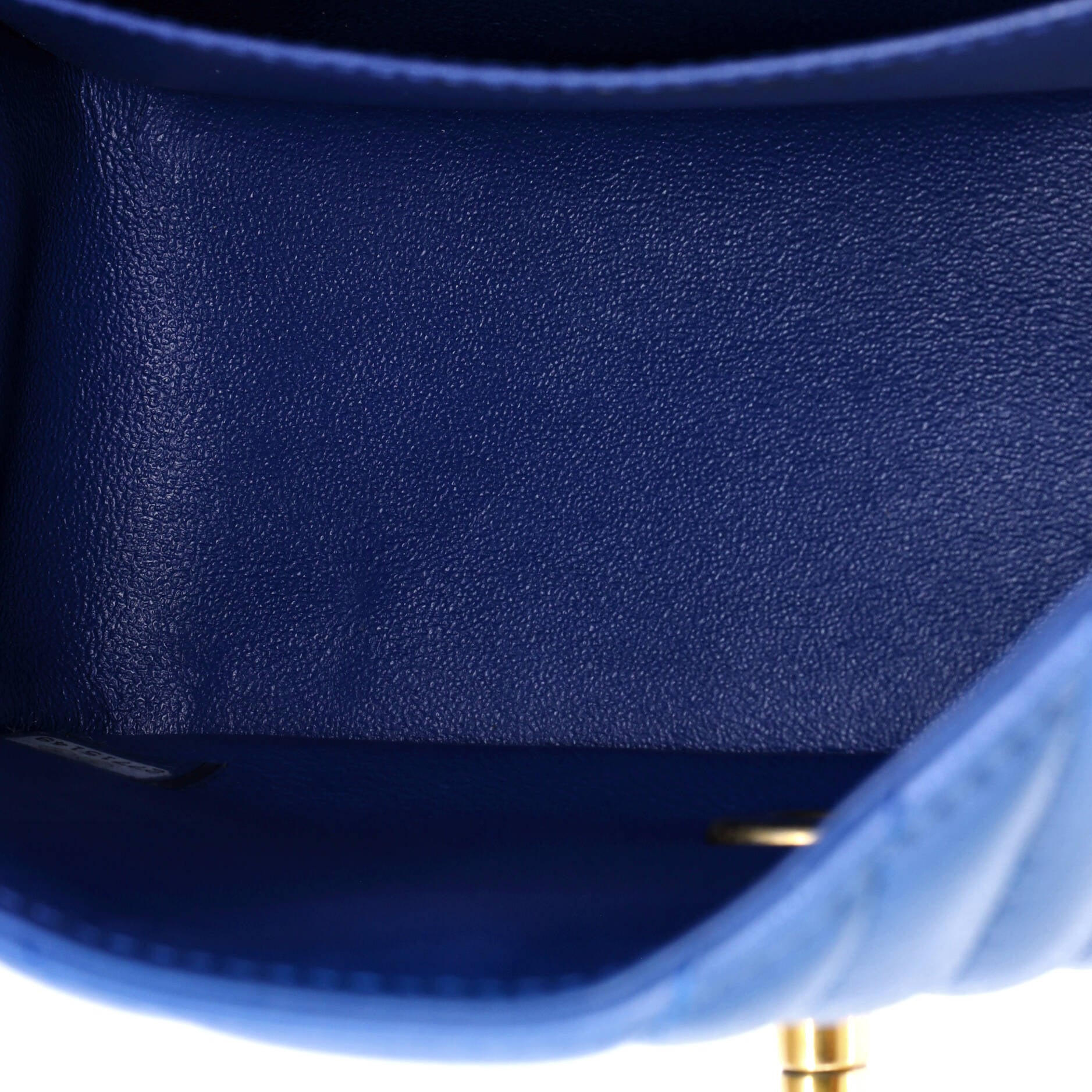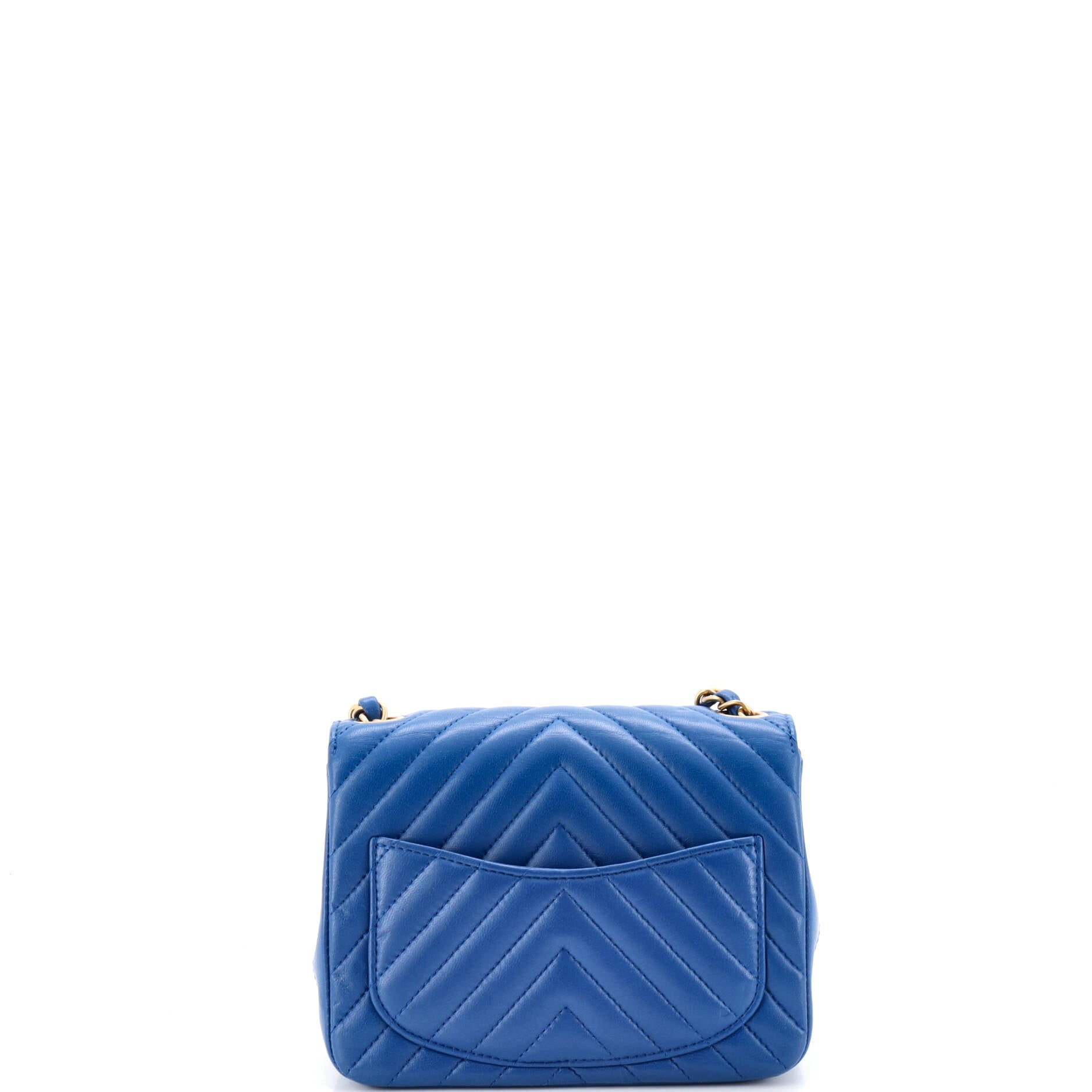 Chanel Shoulder Bag Square Classic Single Flap Mini in Blue Lambskin Chevron Quilted Leather and Gold hardware. The product is in Perfect Condition (AA).