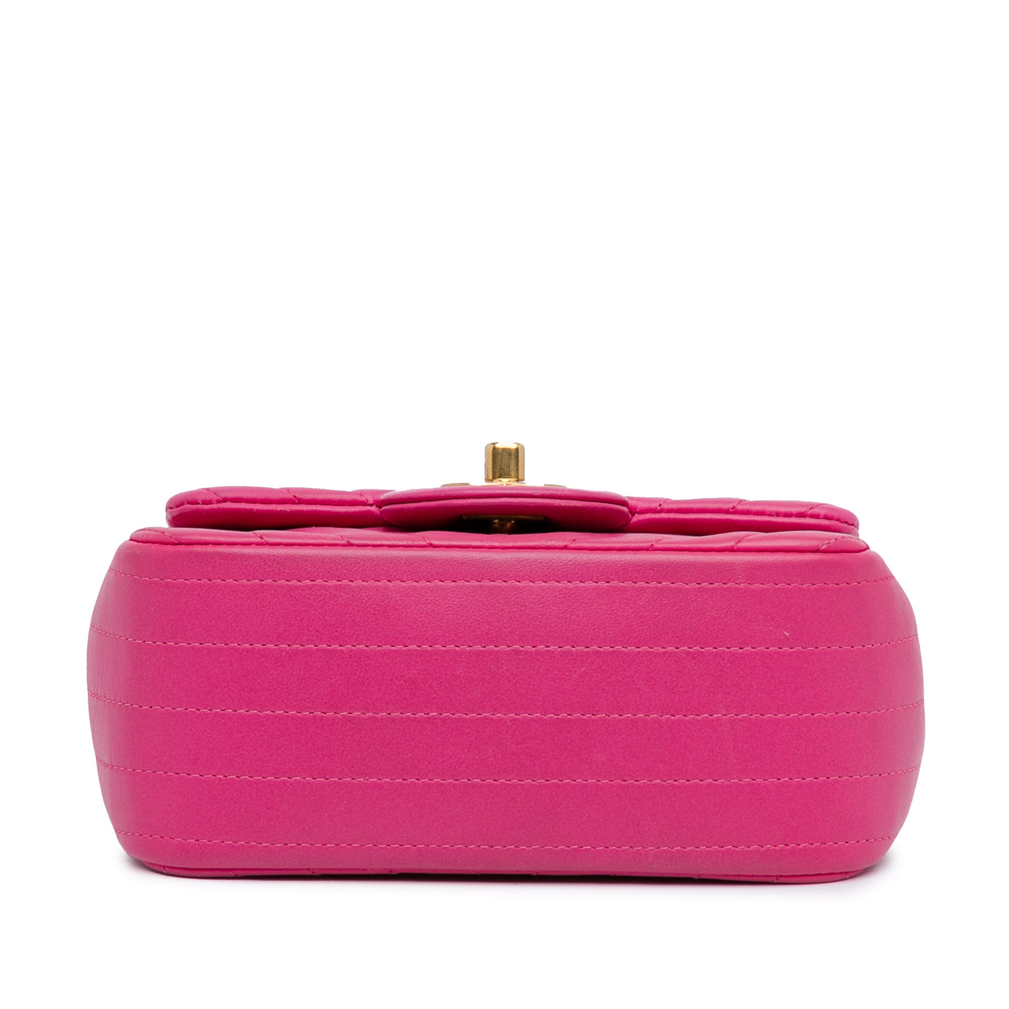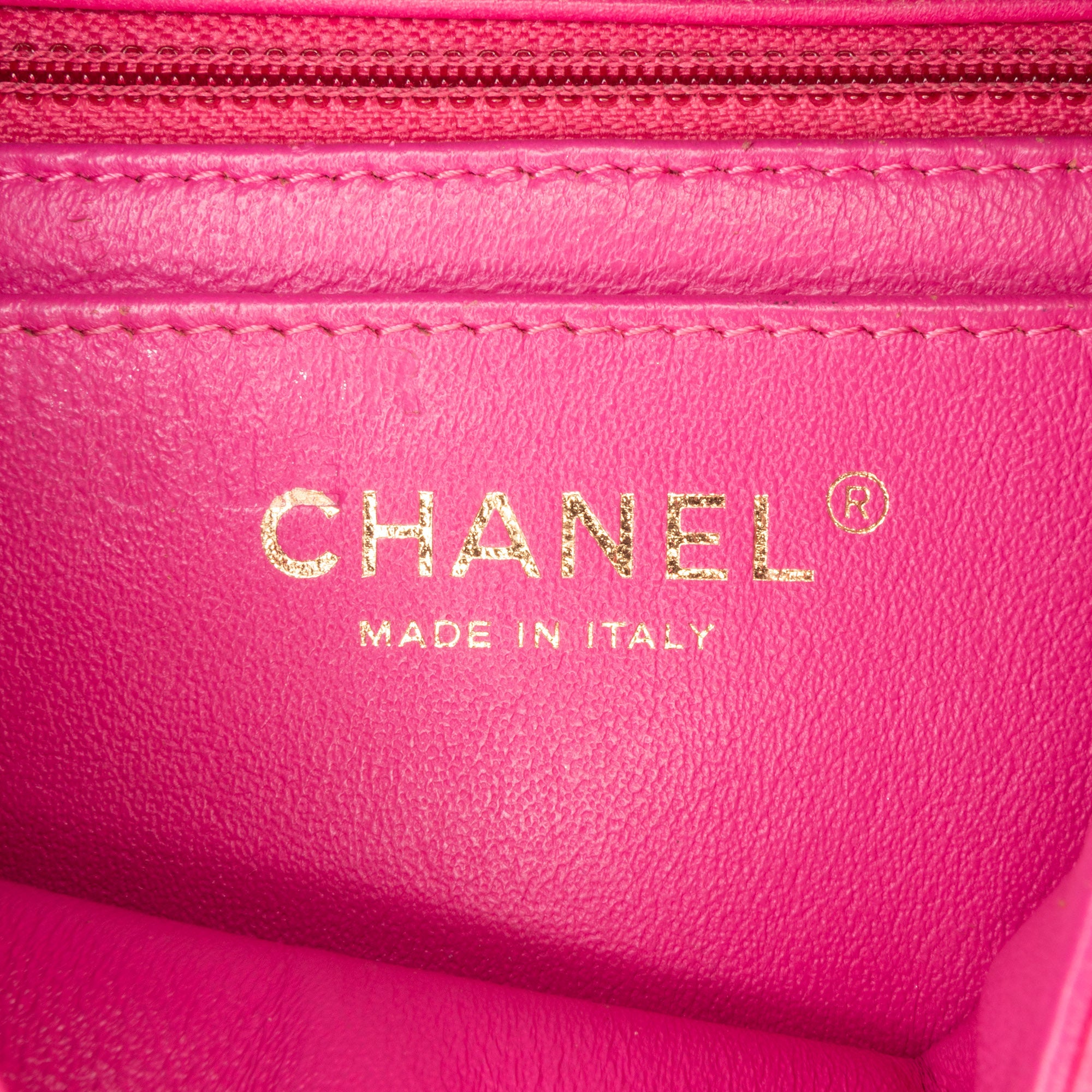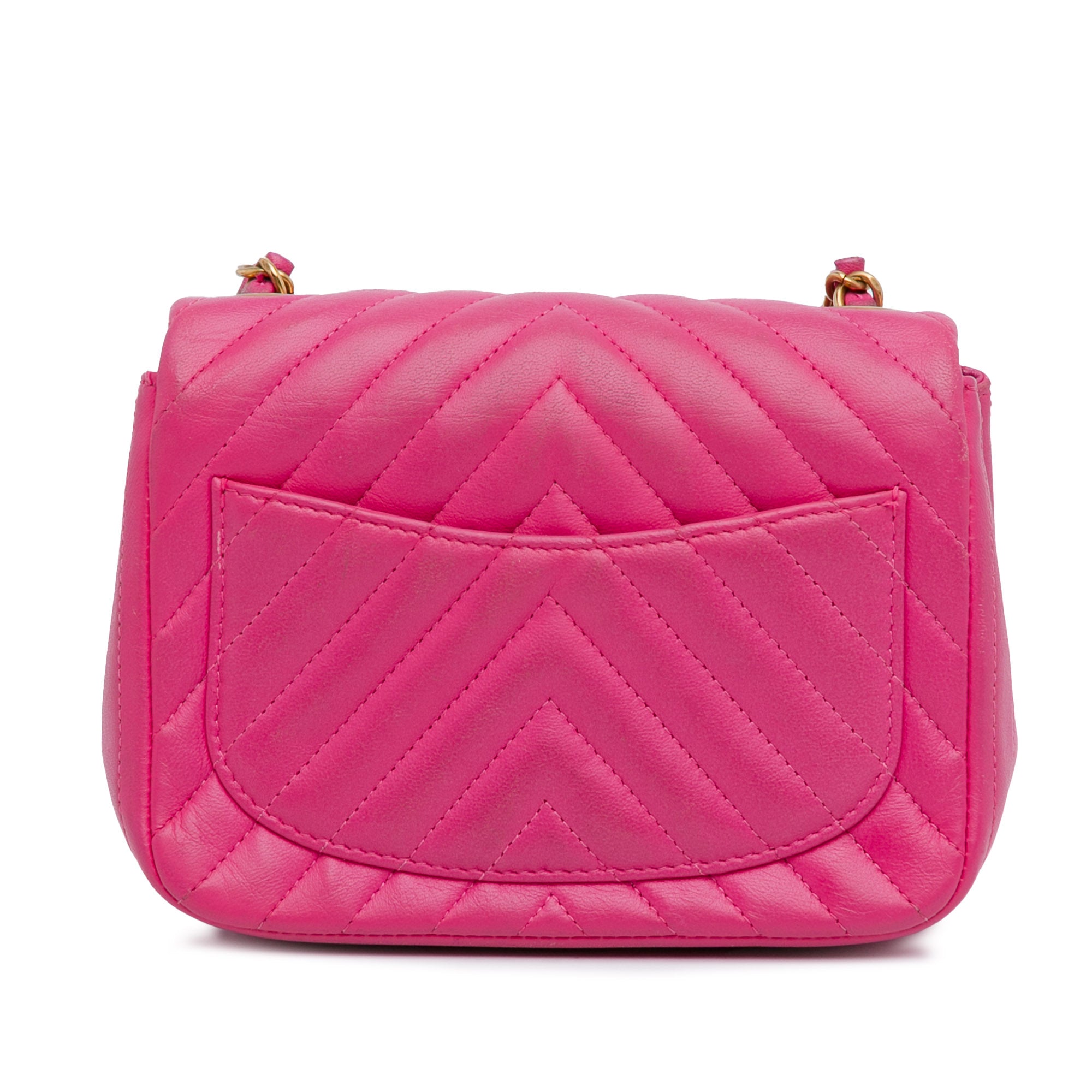 Chanel Shoulder Bag Square Classic Single Flap Mini in Pink Lambskin Chevron Quilted Leather and Gold hardware. The product is in Excellent Condition (A).