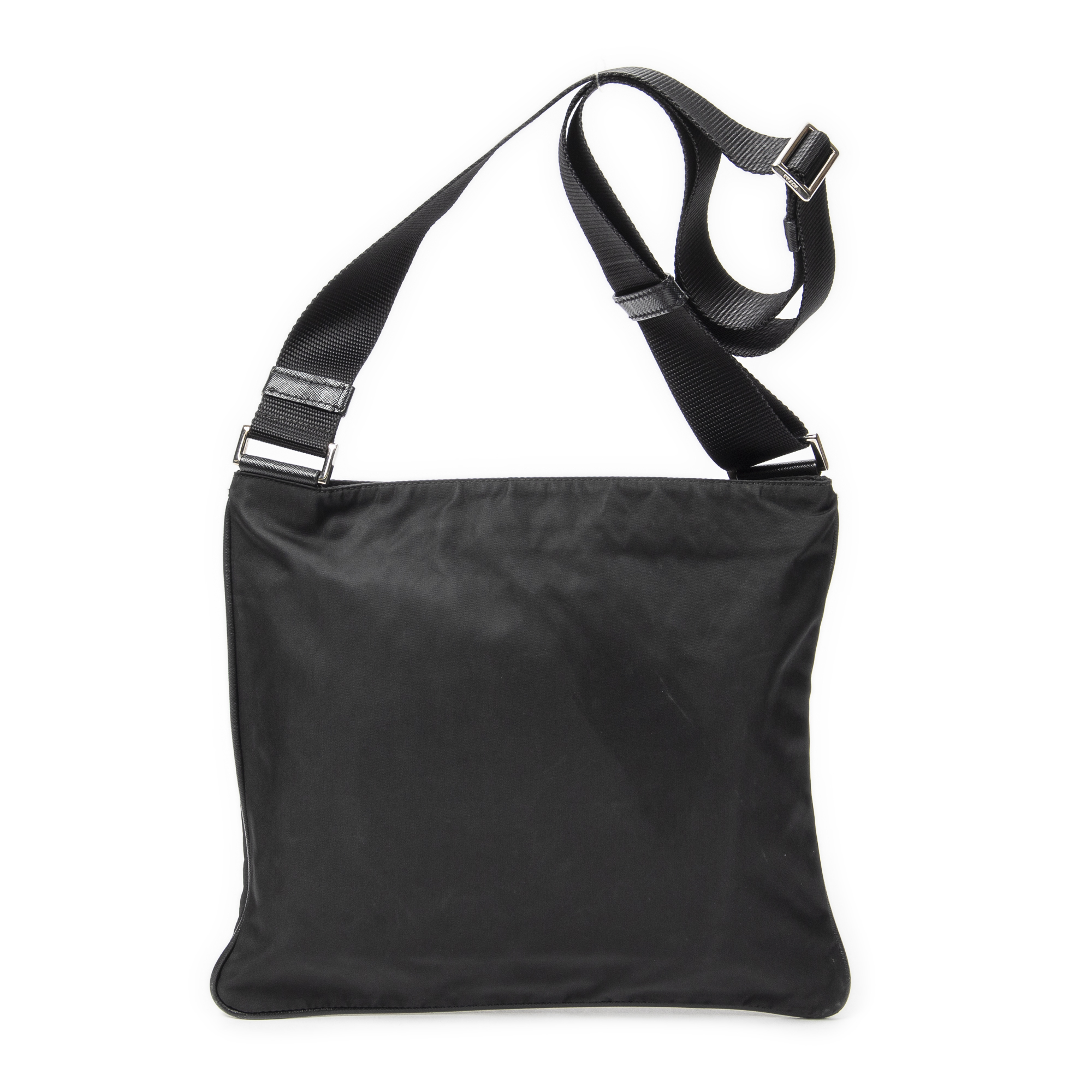 Description : Prada Shoulder Bag Square Flat Crossbody in Black Nylon Canvas and Silver hardware. The product is in Excellent Condition (A). Dimensions: 30x26x1 cm SKU: ABC4037 Serial number: 10/31 Accessories Included: None Delivery: We have a 5 to 7 business days delivery policy, hassle-free and duties/tariffs included! BrandCo Paris finds rare and top condition items at great deals, they are worth your patience! Shop with confidence - All BrandCo Paris items are carefully selected and authenticated by our team of experts. All the items come with an authenticity certificate and packaging delivered by BrandCo Paris. Item Condition Grading Table N (Like New) AA (Perfect Condition) A (Excellent Condition) AB (Very Good Condition) B (Good/Fair)