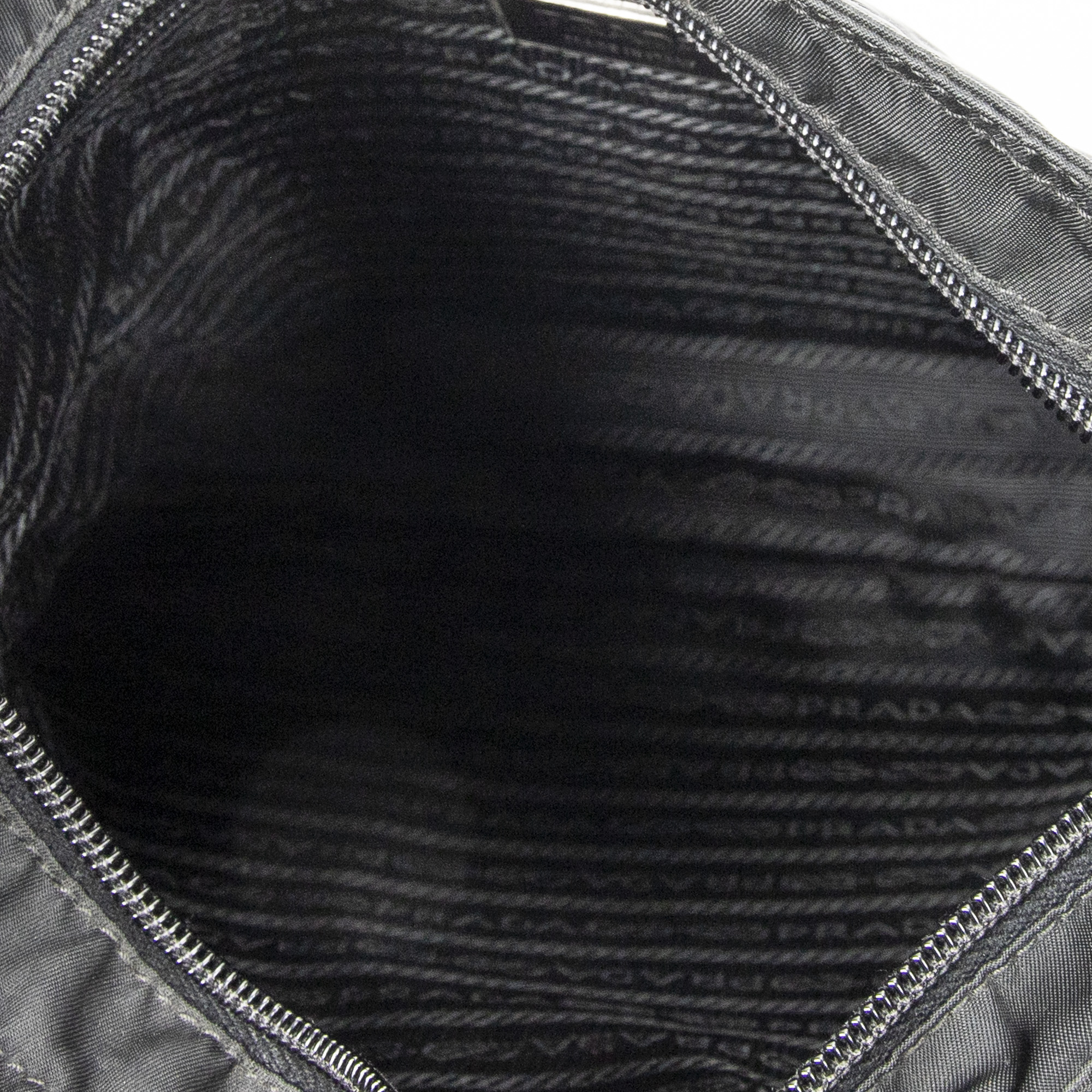 Prada Shoulder Bag Square Flat Crossbody in Black Nylon Canvas and Silver hardware. The product is in Excellent Condition (A).