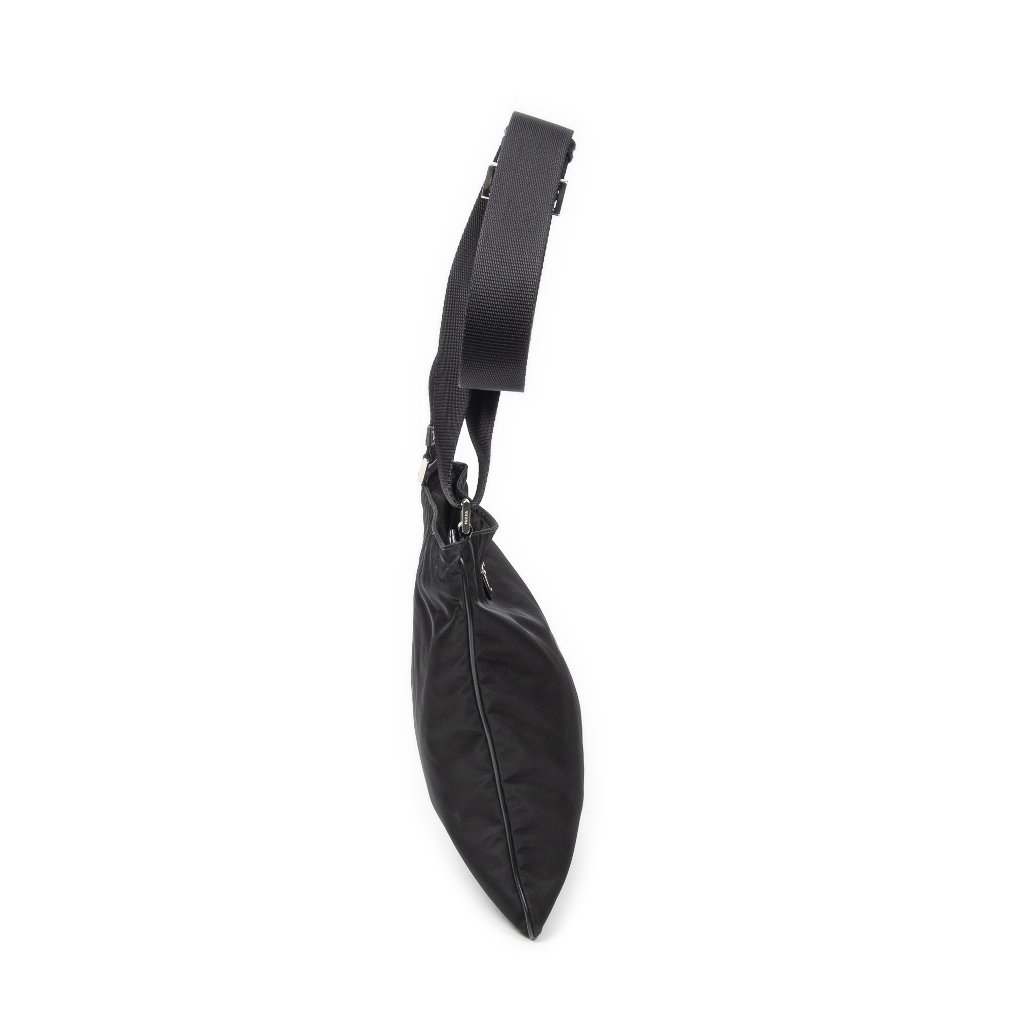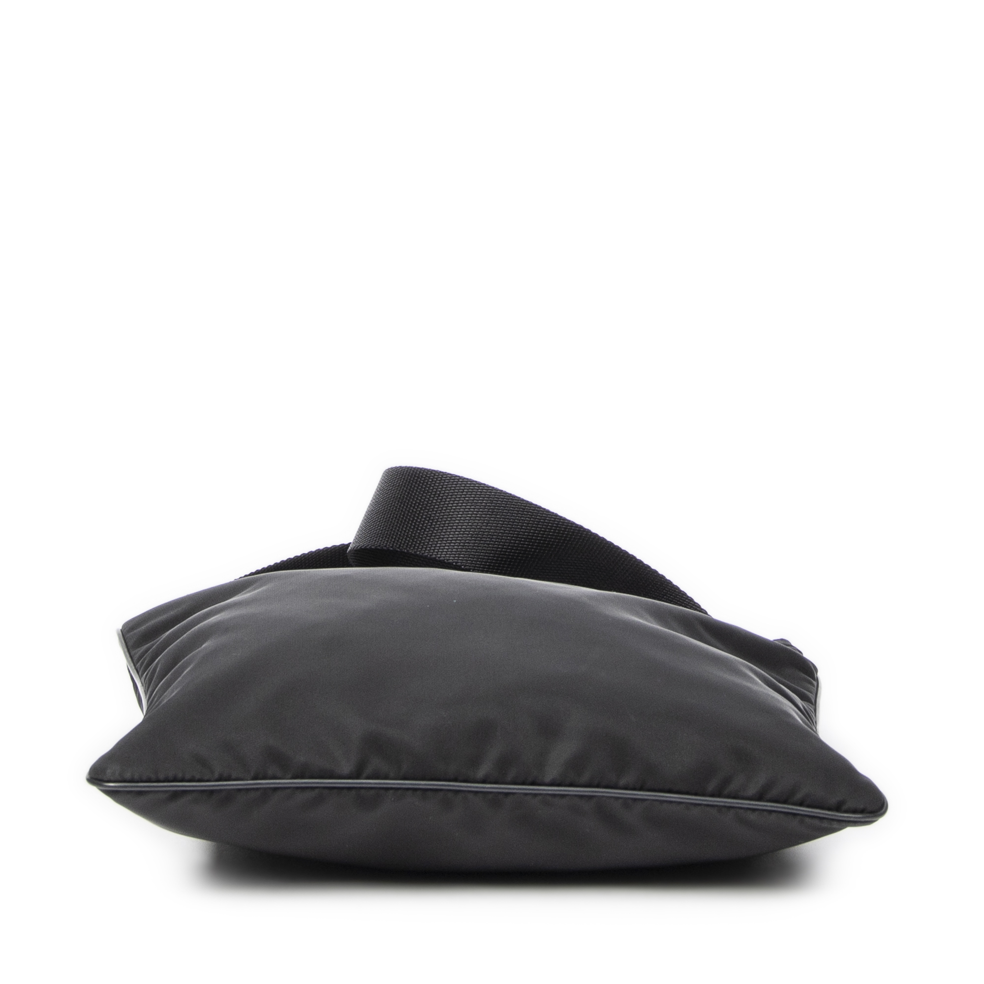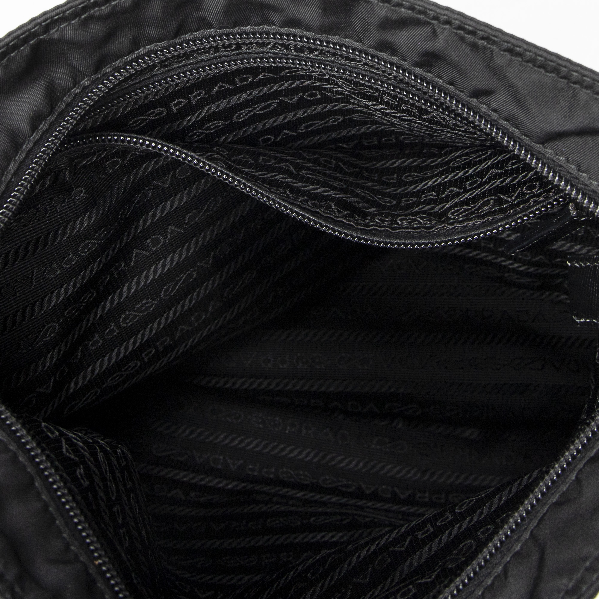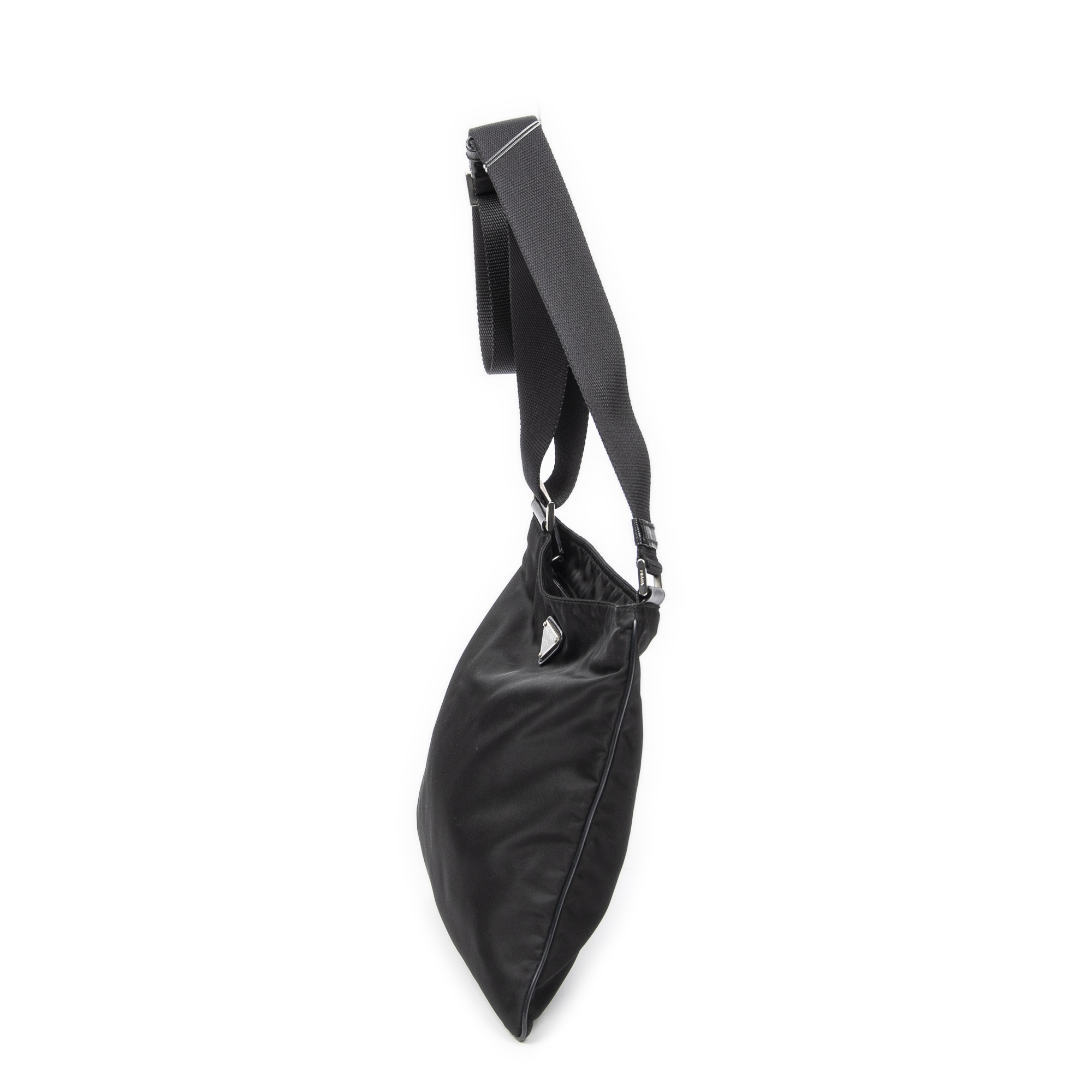 Prada Shoulder Bag Square Flat Messenger in Black Nylon Canvas and Silver hardware. The product is in Excellent Condition (A).