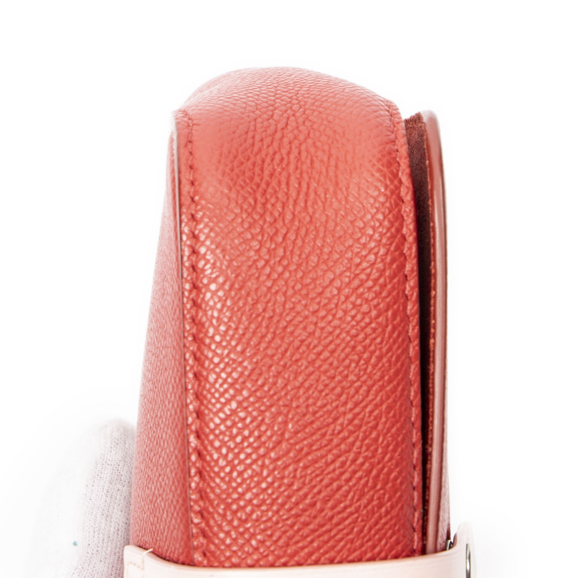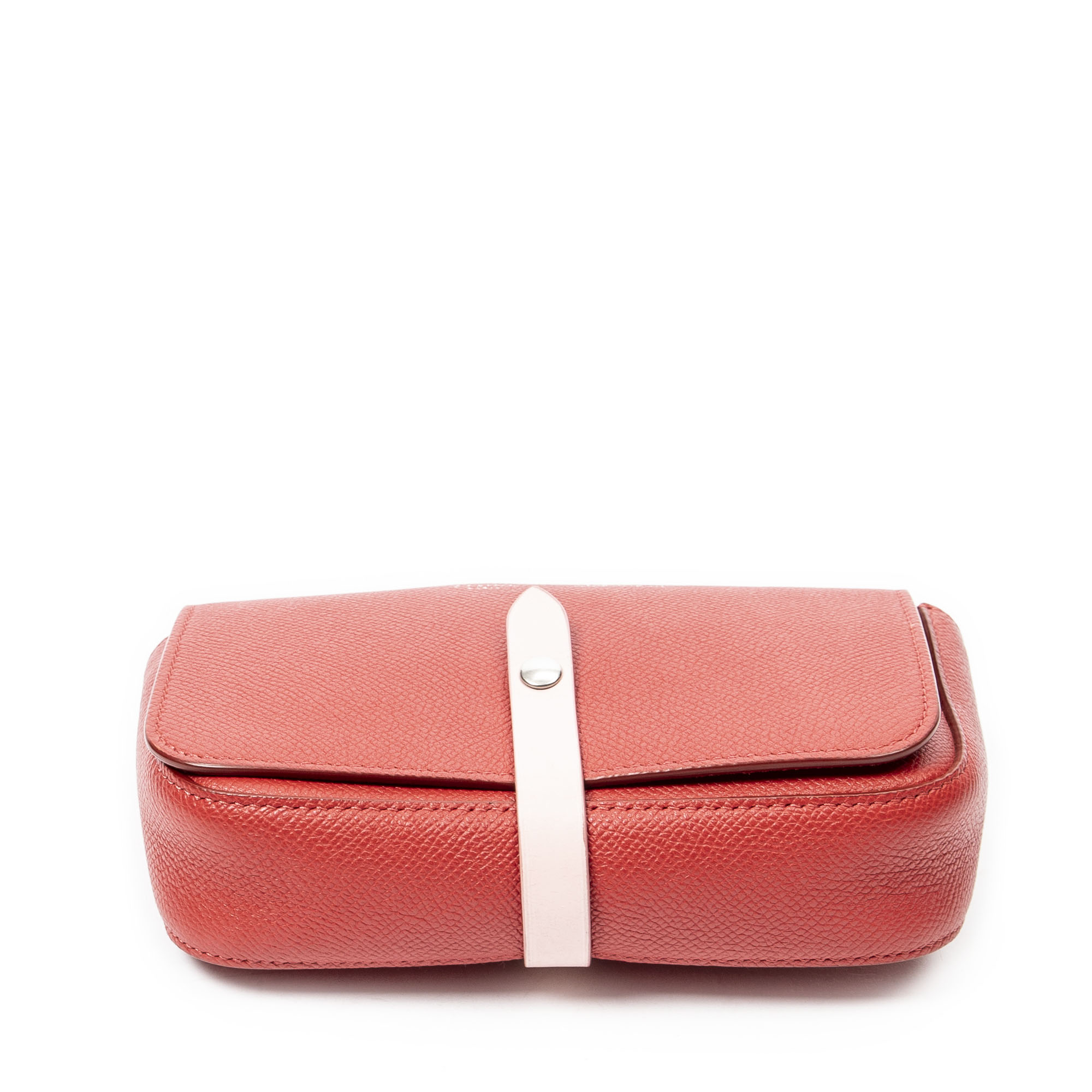 Celine Shoulder Bag Strap Clutch Crossbody in Red/Light Pink Grained Leather and Silver hardware. The product is in Excellent Condition (A).