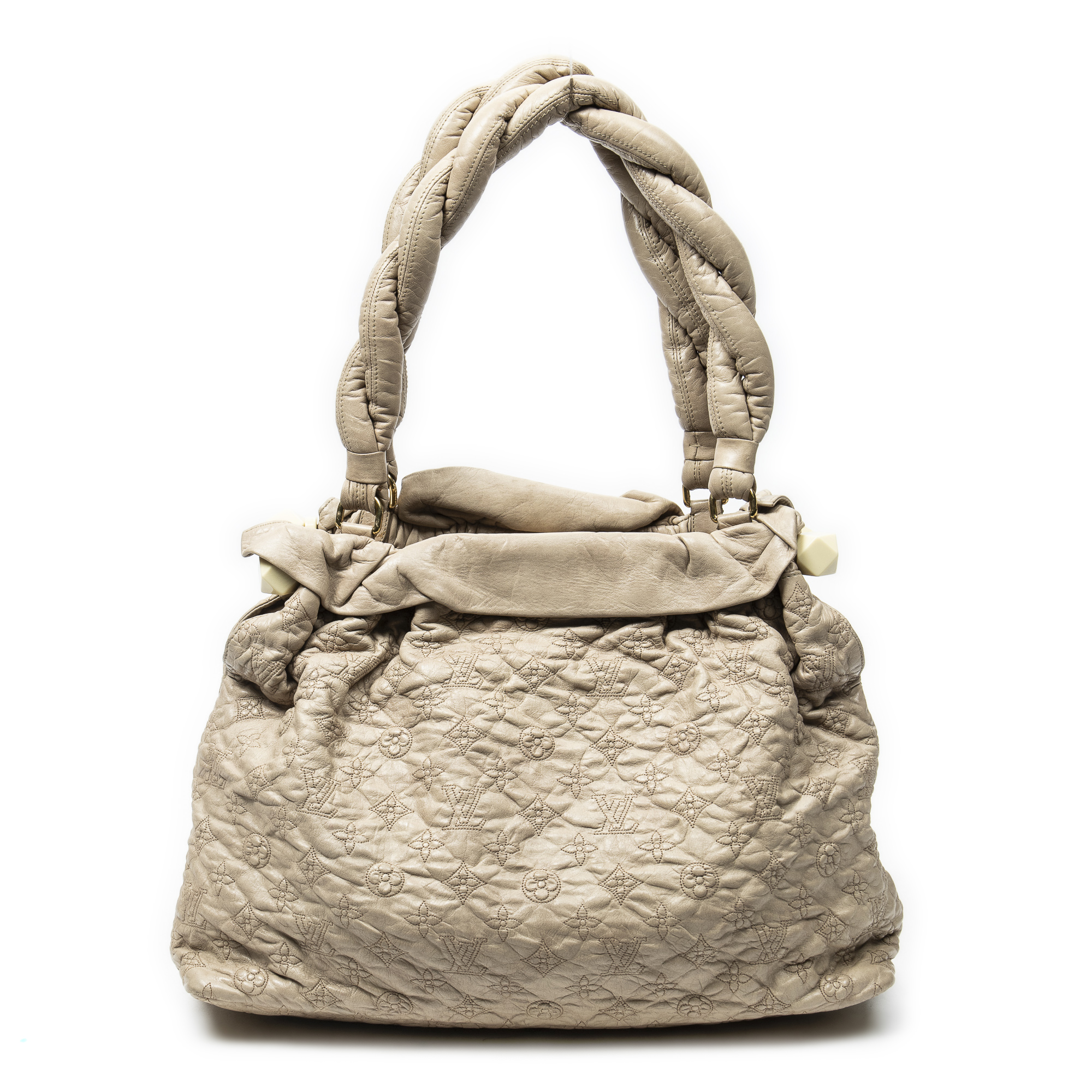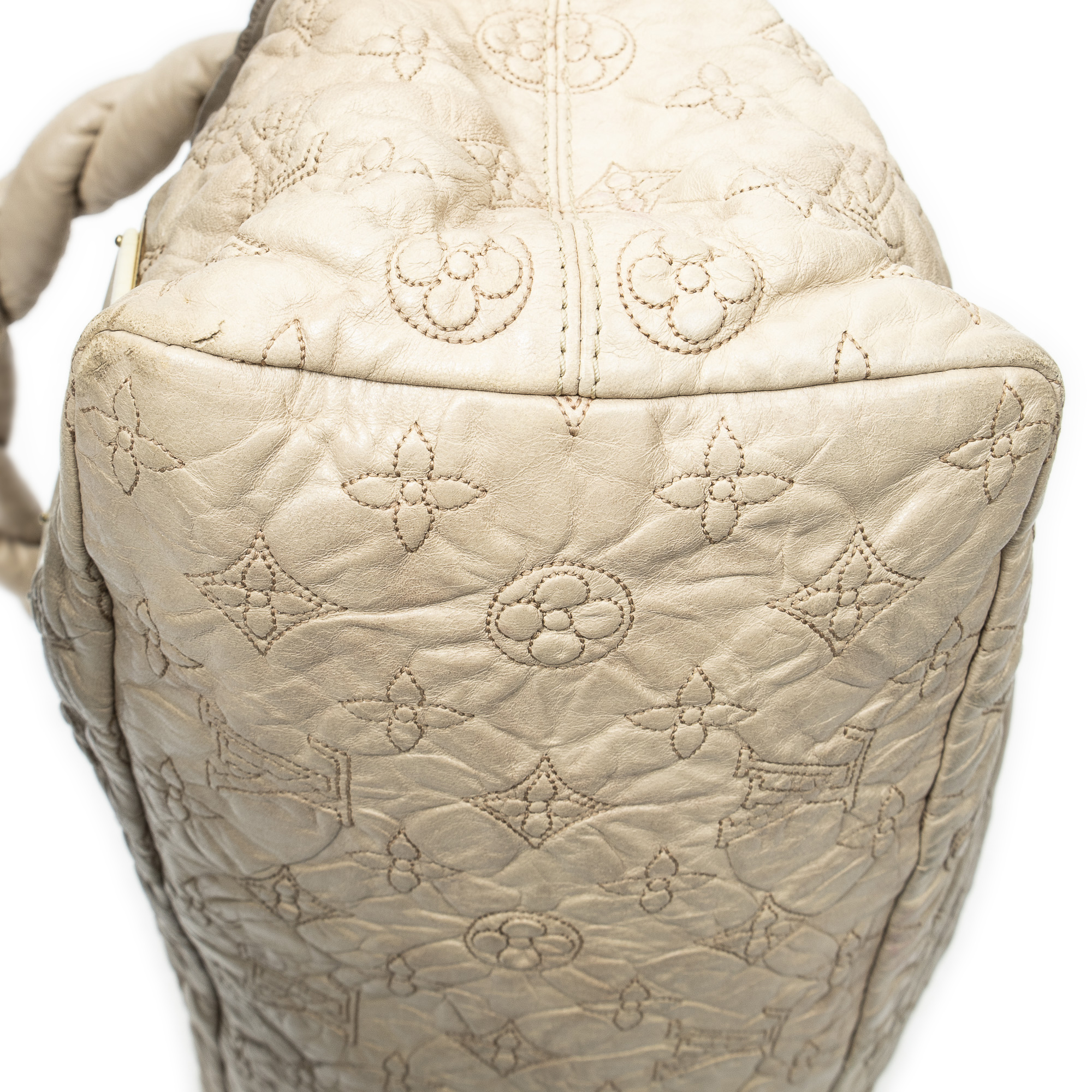 Louis Vuitton Shoulder Bag Stratus GM in Beige Monogram Olympe and Golden Brass hardware. The product is in Excellent Condition (A).