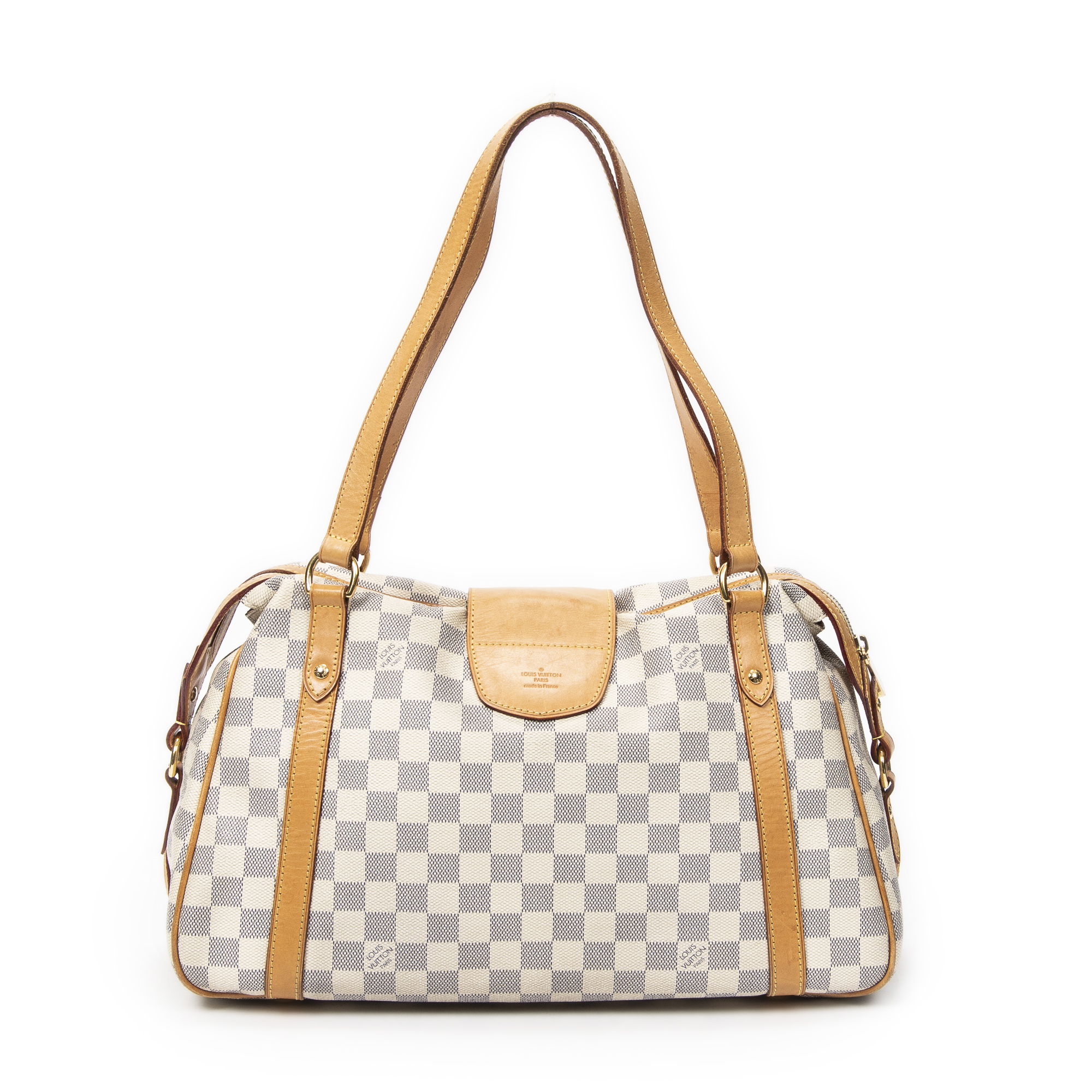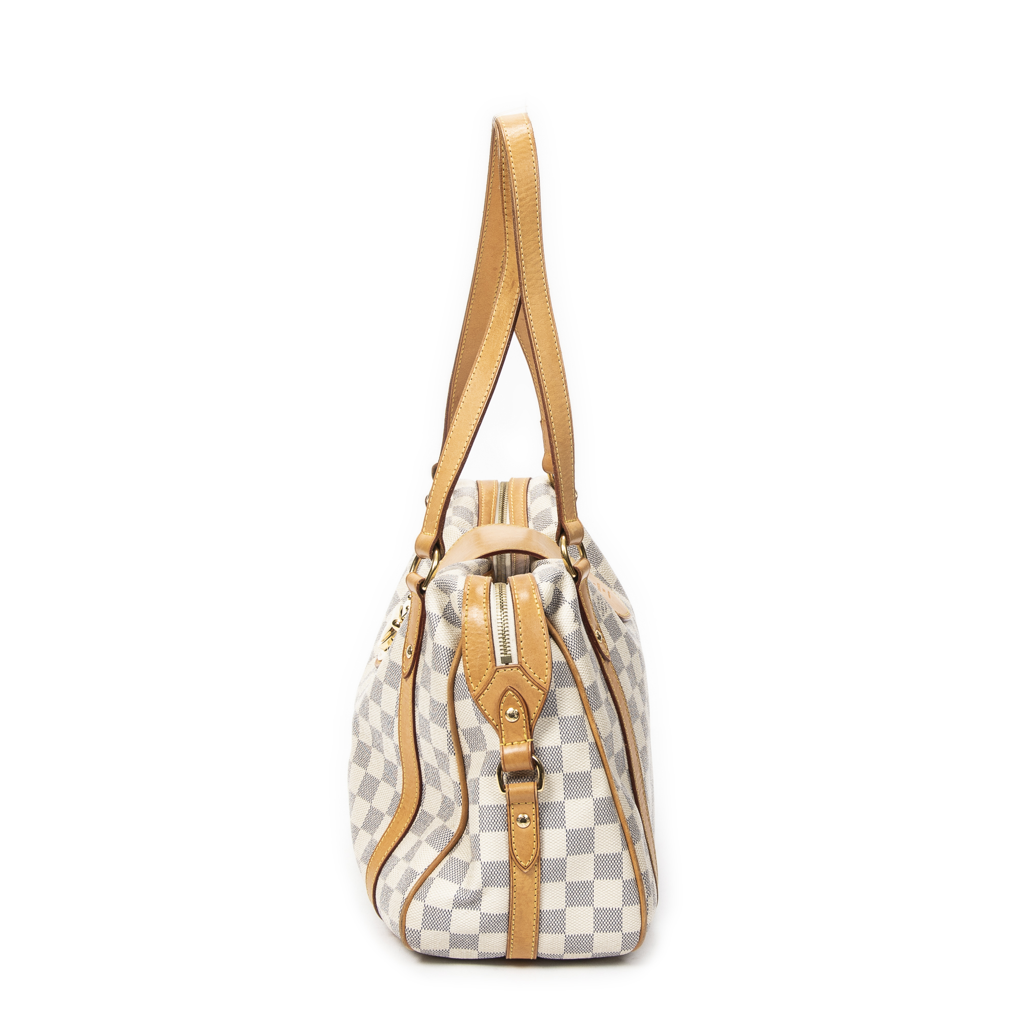 Louis Vuitton Shoulder Bag Stresa PM in Ivory Damier Azur and Golden Brass hardware. The product is in Very Good Condition (AB).