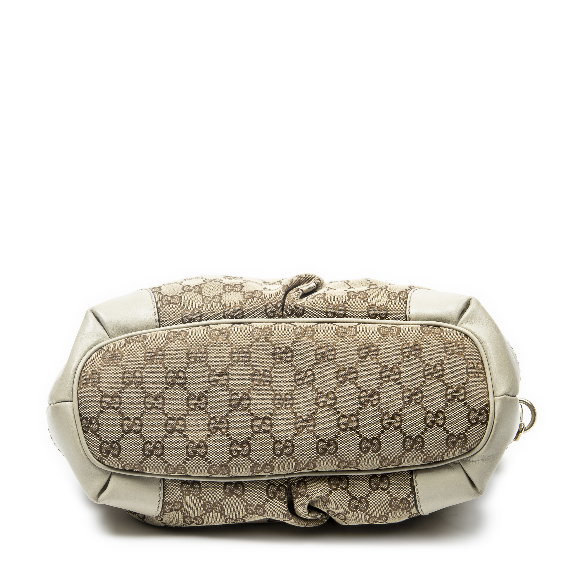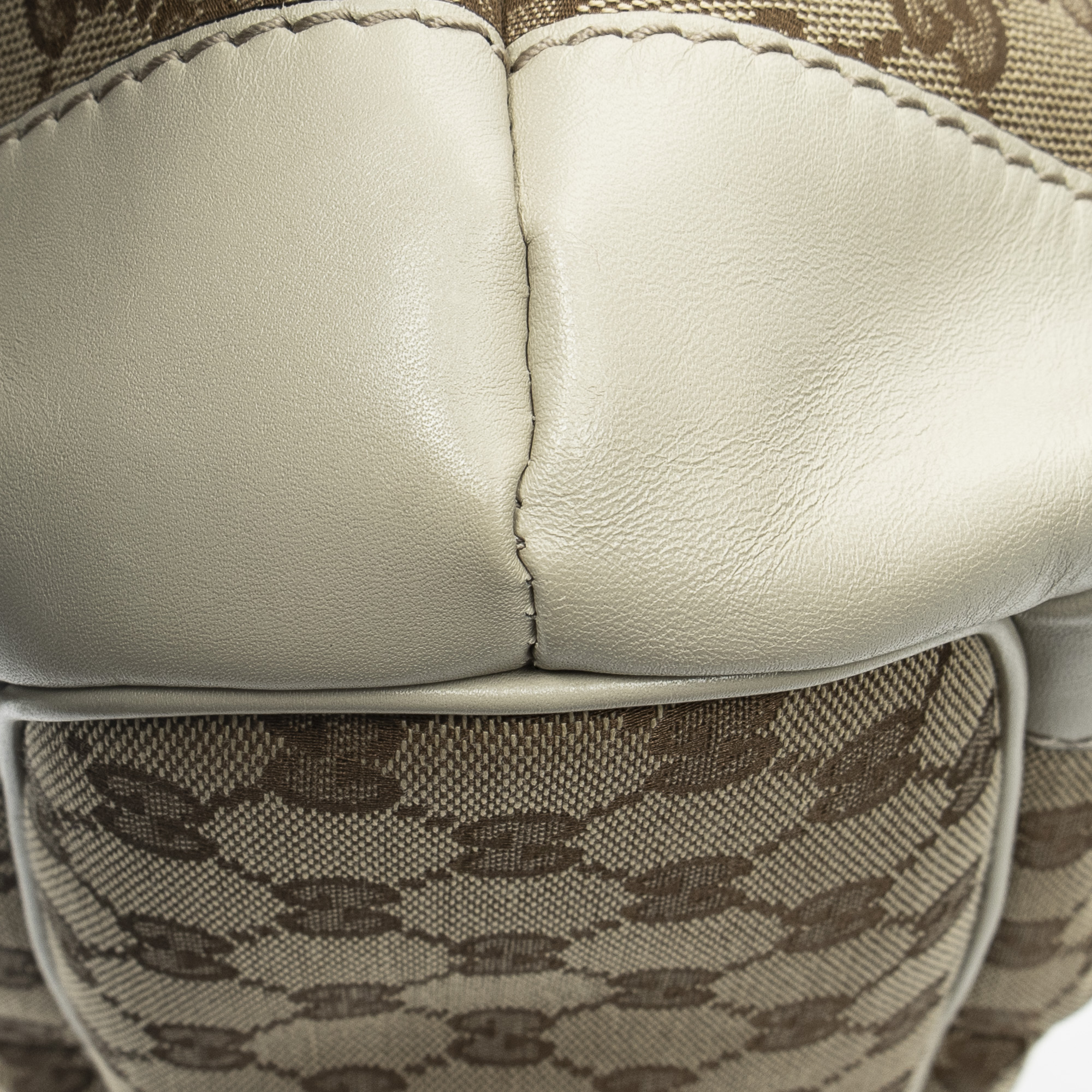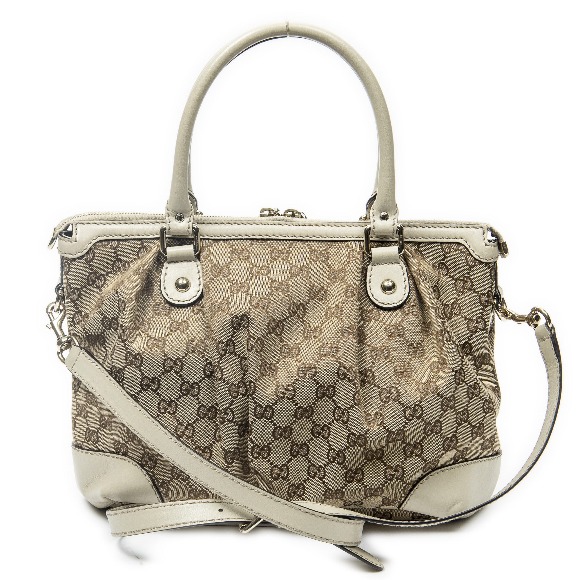 Gucci Shoulder Bag Sukey Top Handle in Cream/Beige Monogrammed Canvas and Gold hardware. The product is in Excellent Condition (A).