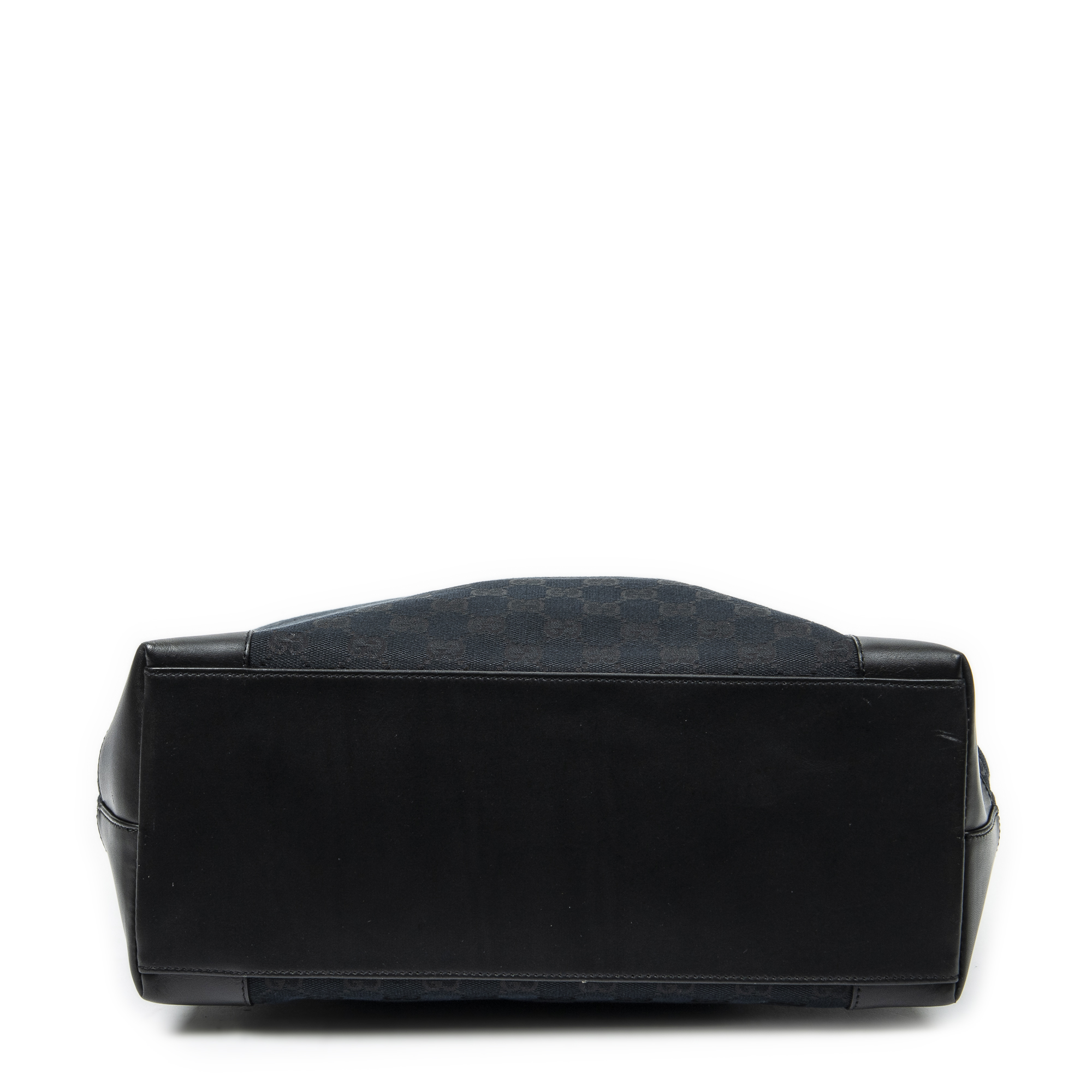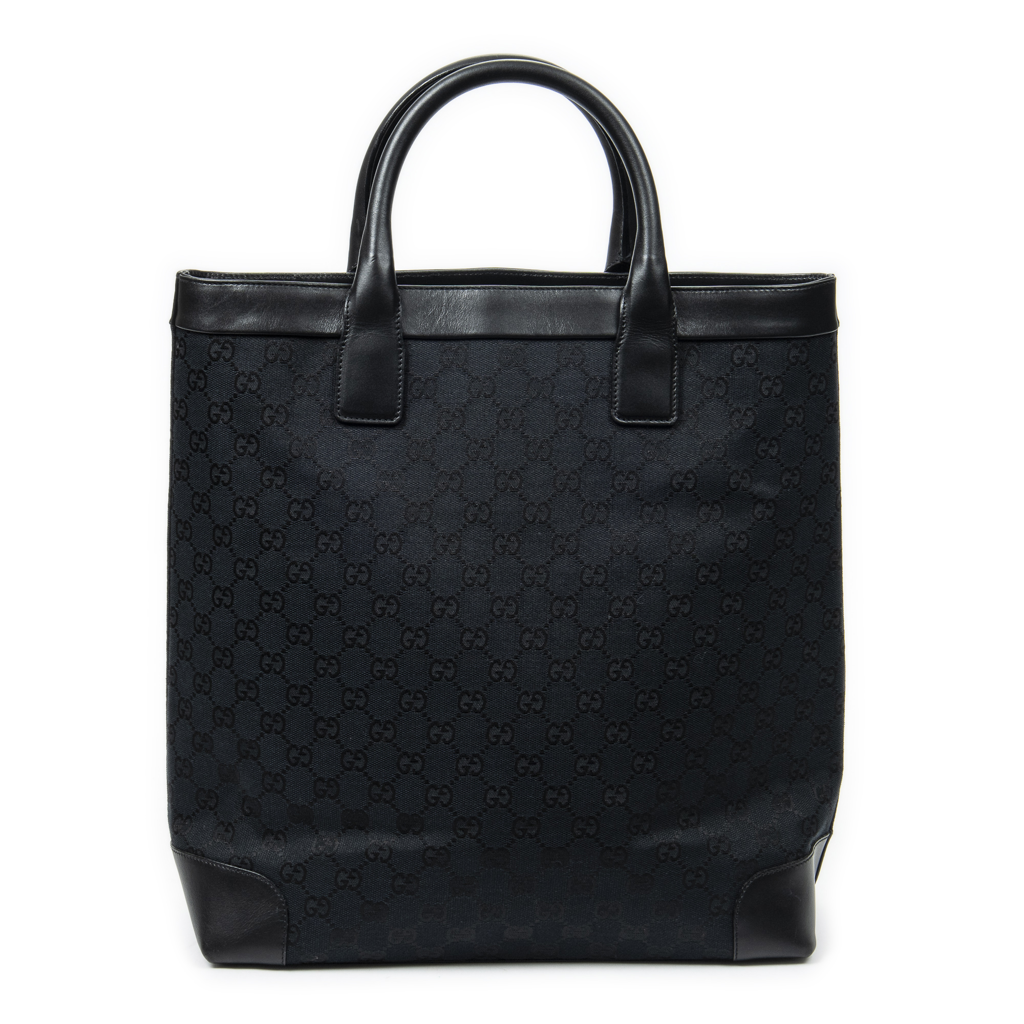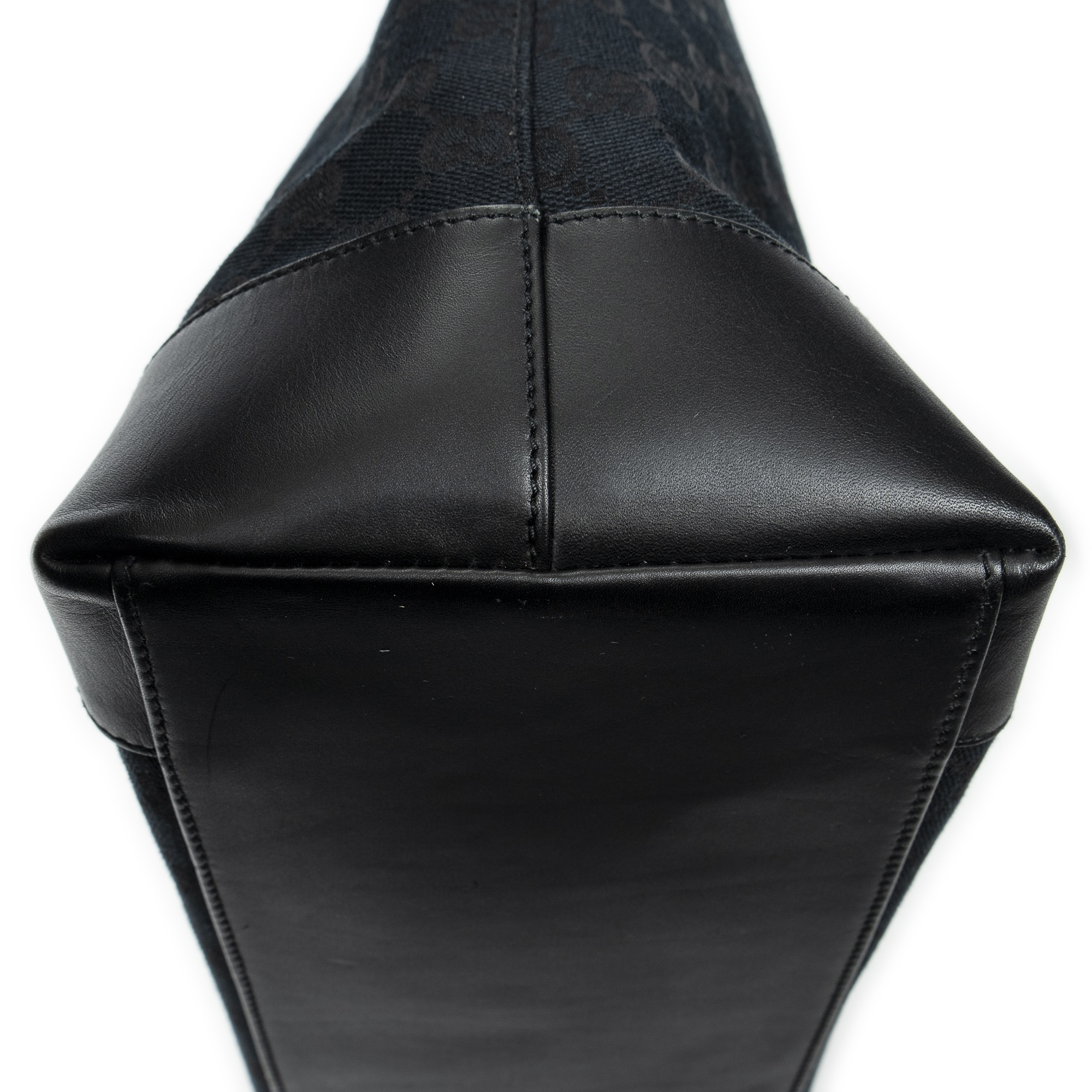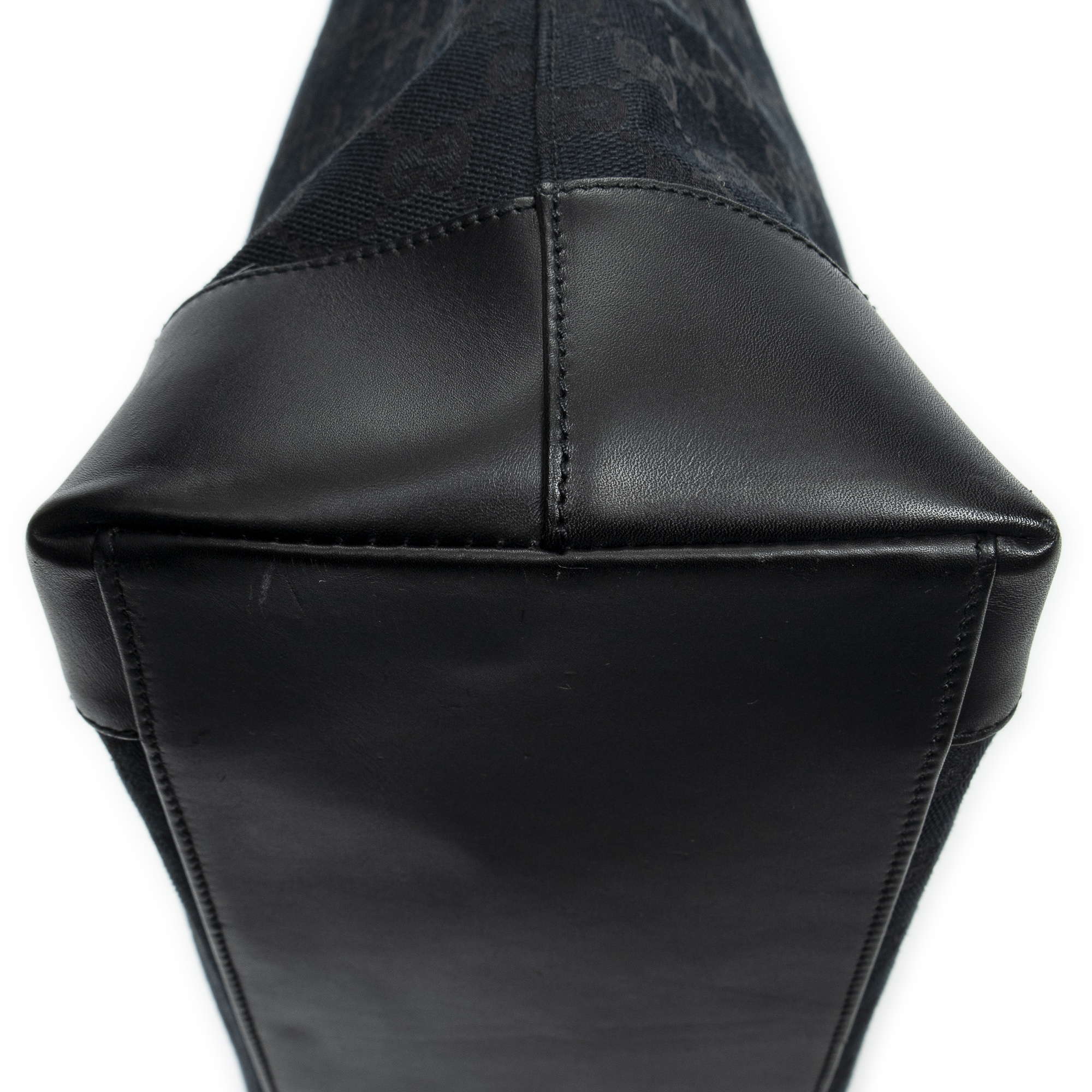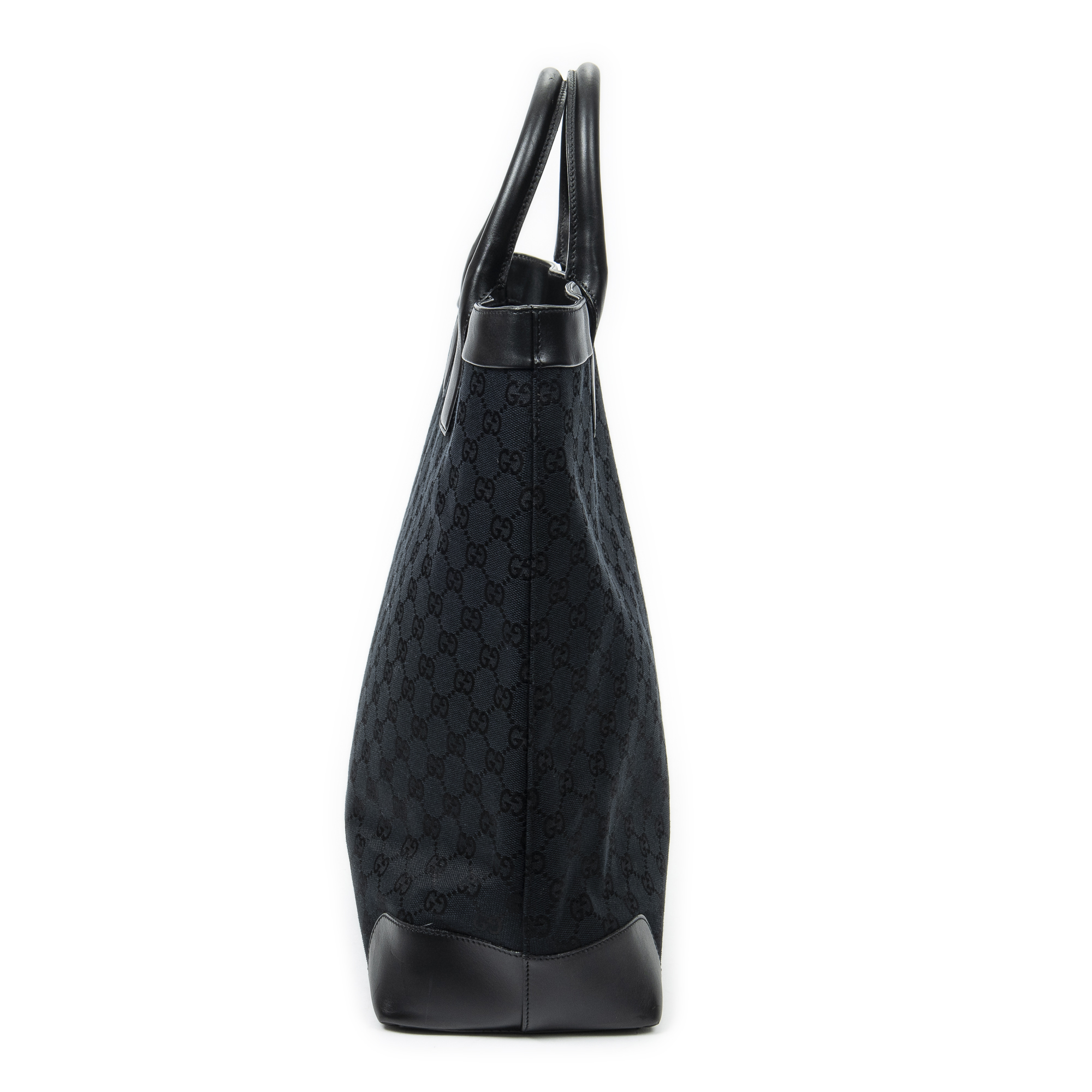 Gucci Shoulder Bag Tall Shopping Tote in Black Monogrammed Canvas and Gold hardware. The product is in Excellent Condition (A).