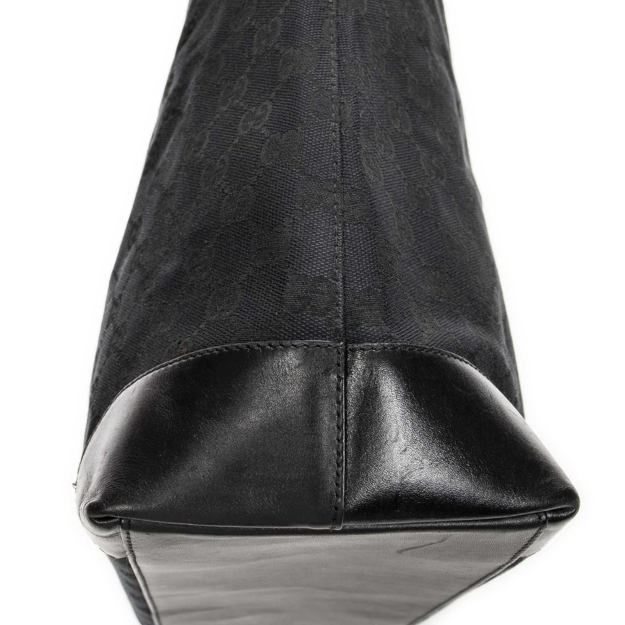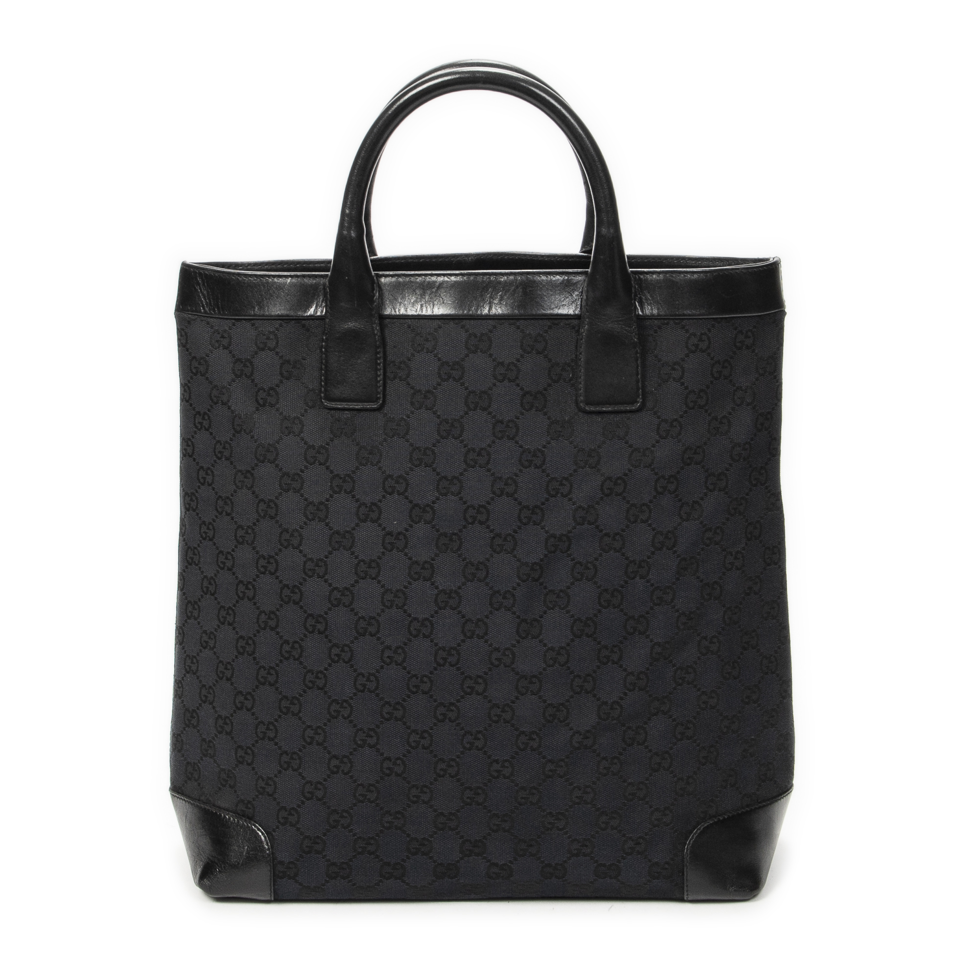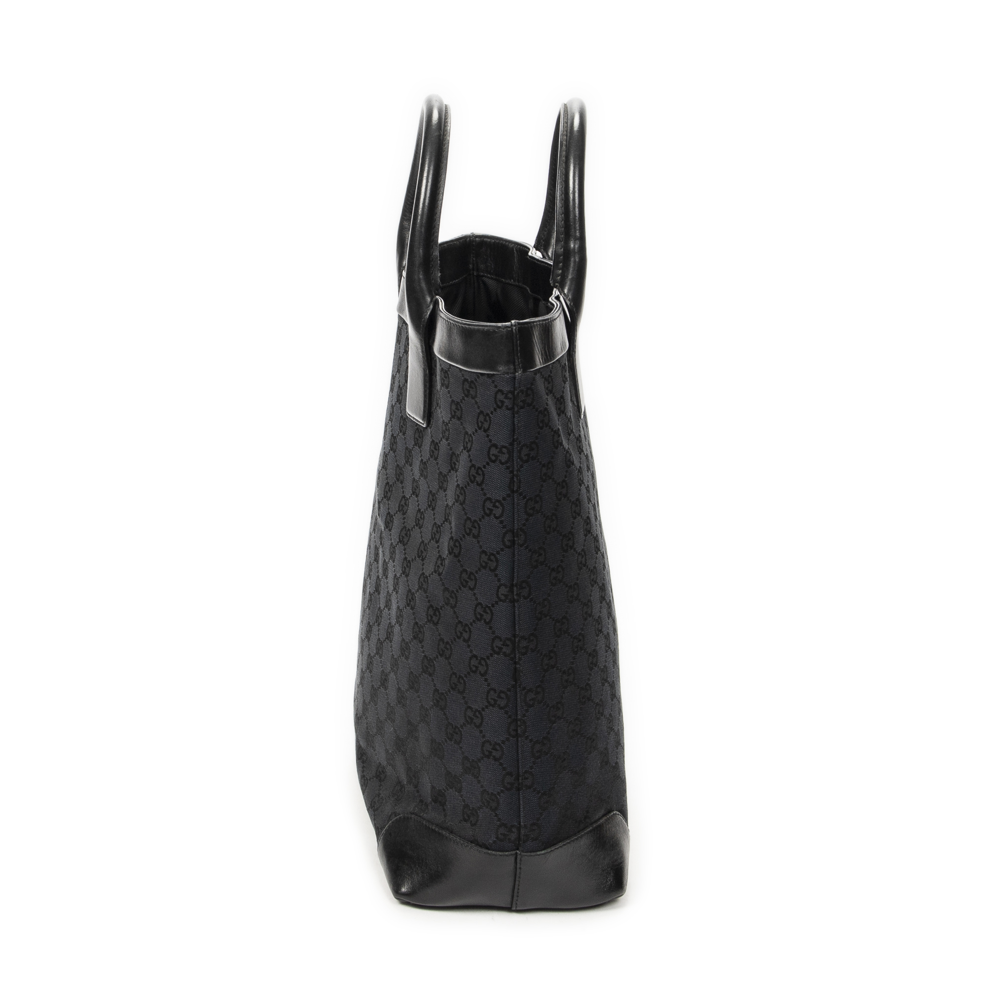 Gucci Shoulder Bag Tall Shopping Tote in Black Monogrammed Canvas and Silver hardware. The product is in Excellent Condition (A).