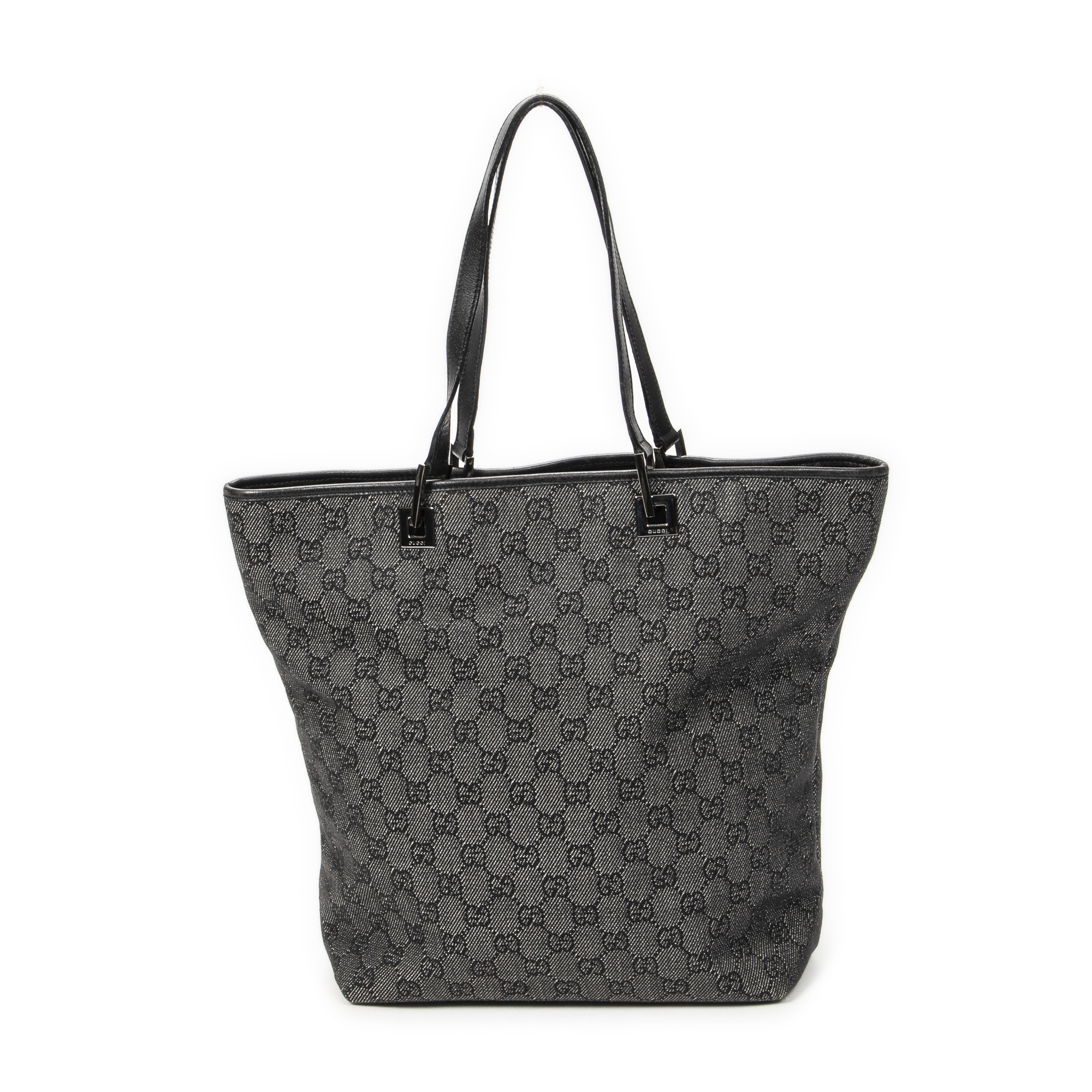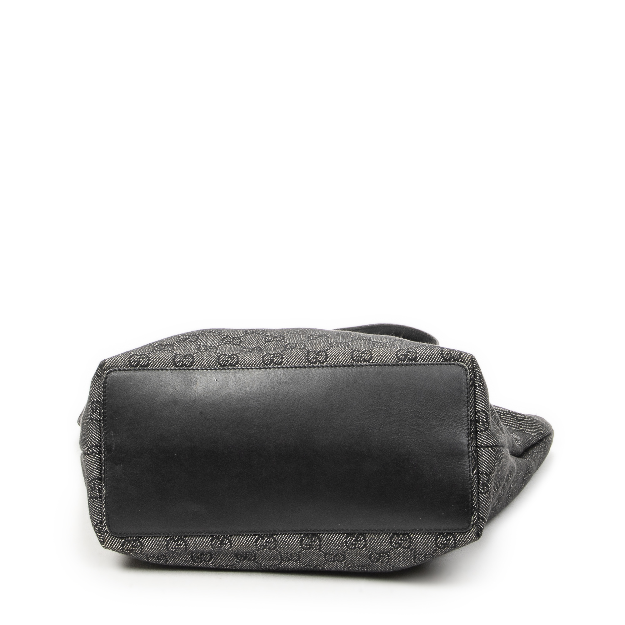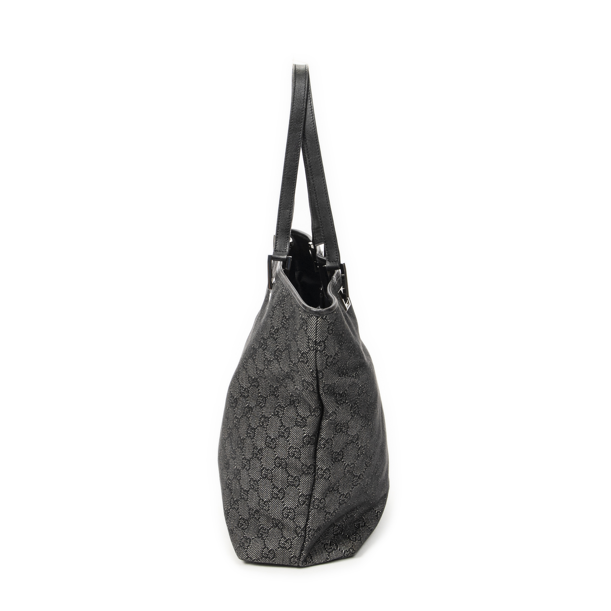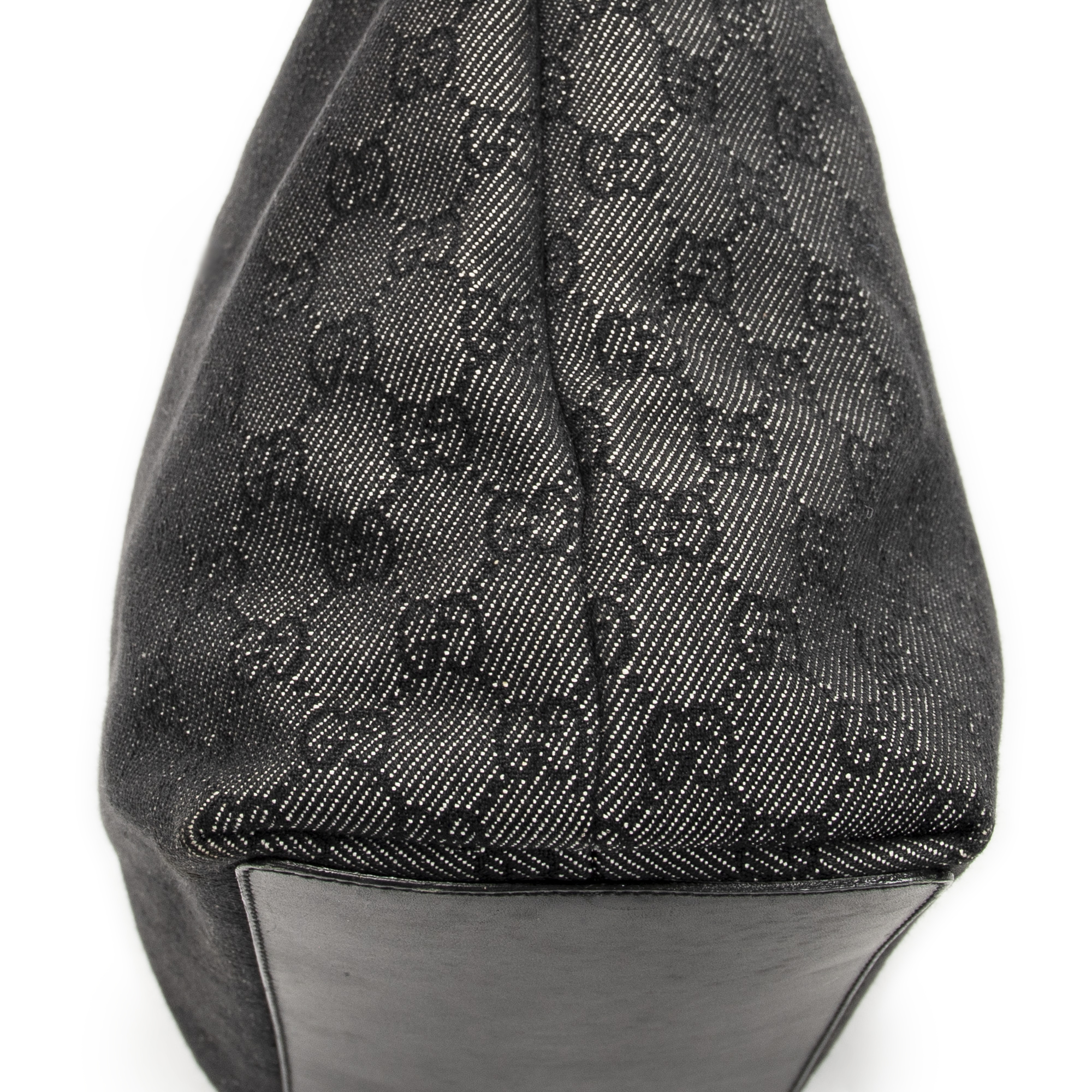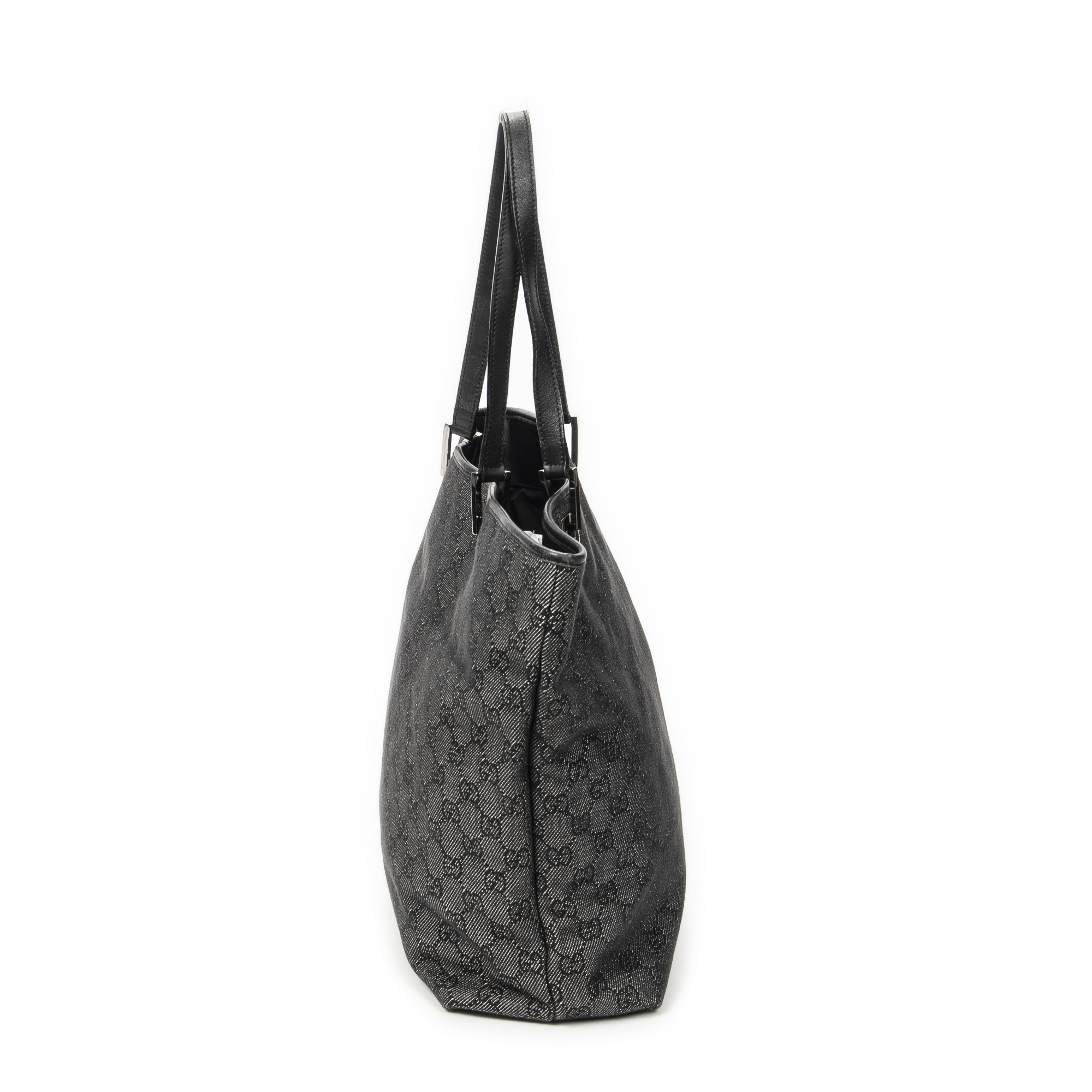 Gucci Shoulder Bag Tall Tote in Black Monogrammed Denim Canvas and Silver hardware. The product is in Very Good Condition (AB).