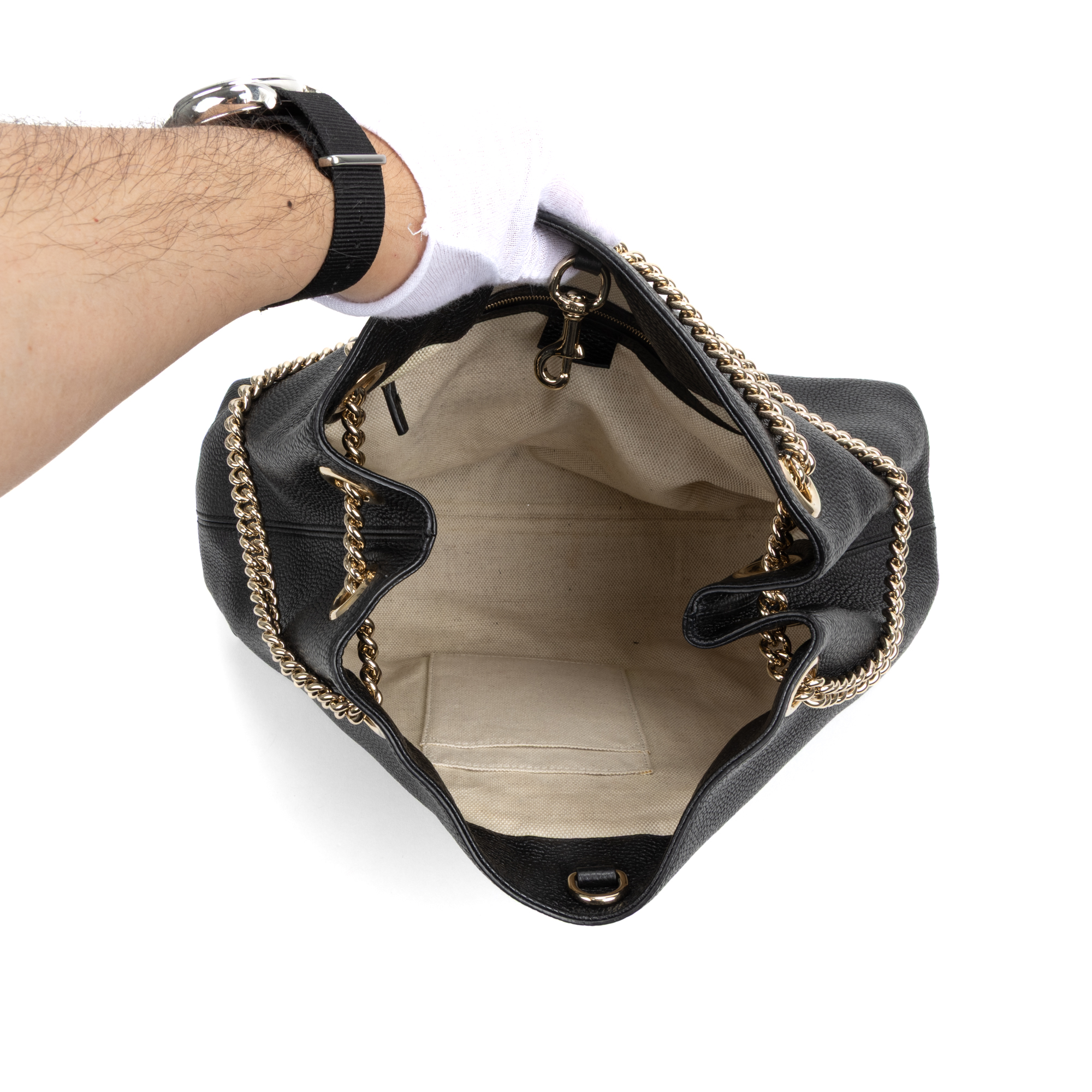 Description : Gucci Shoulder Bag Tassel Soho Chain Shopping Tote Medium in Black Calfskin Leather and Gold hardware. The product is in Perfect Condition (AA). Dimensions: 40x27x12 cm SKU: GTA0015 Serial number: 536196-493492 Accessories Included: Tassel; Dustbag Delivery: We have a 5 to 7 business days delivery policy, hassle-free and duties/tariffs included! BrandCo Paris finds rare and top condition items at great deals, they are worth your patience! Shop with confidence - All BrandCo Paris items are carefully selected and authenticated by our team of experts. All the items come with an authenticity certificate and packaging delivered by BrandCo Paris. Item Condition Grading Table N (Like New) AA (Perfect Condition) A (Excellent Condition) AB (Very Good Condition) B (Good/Fair)