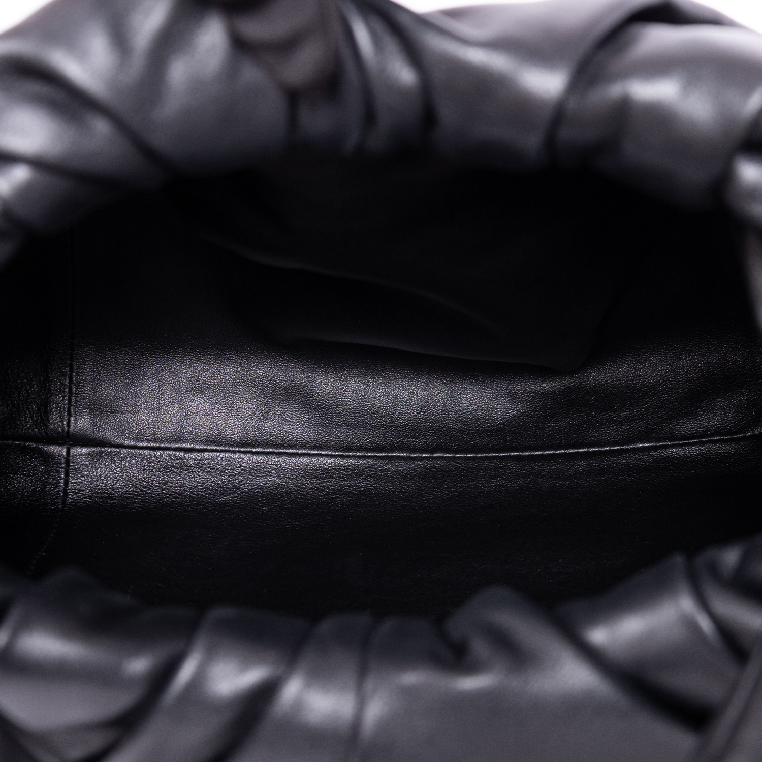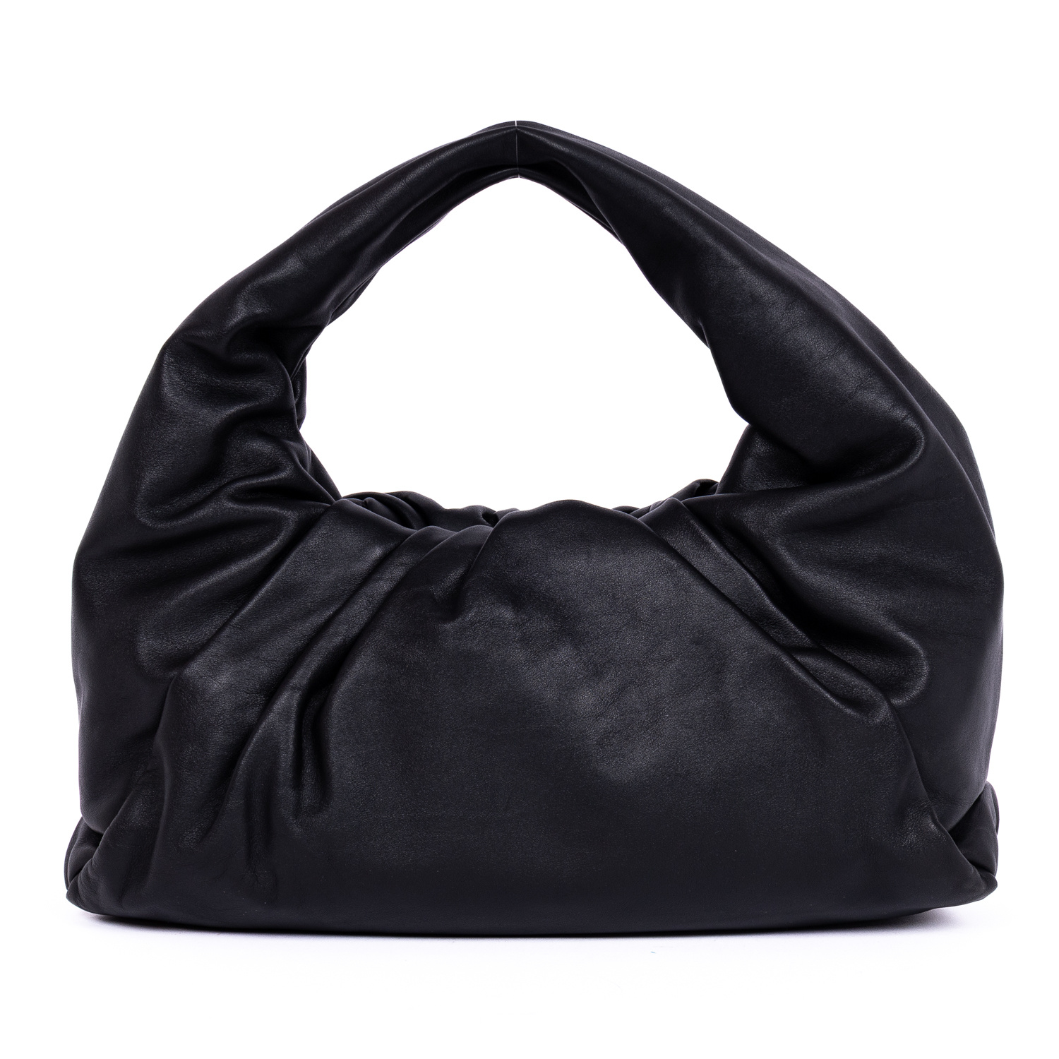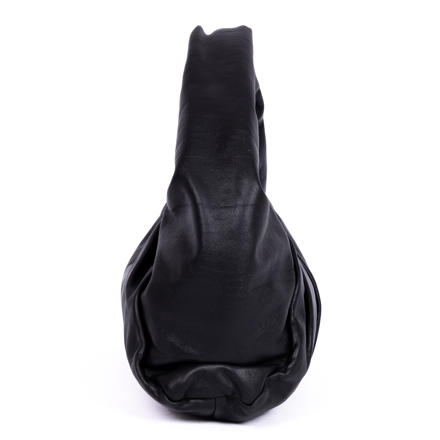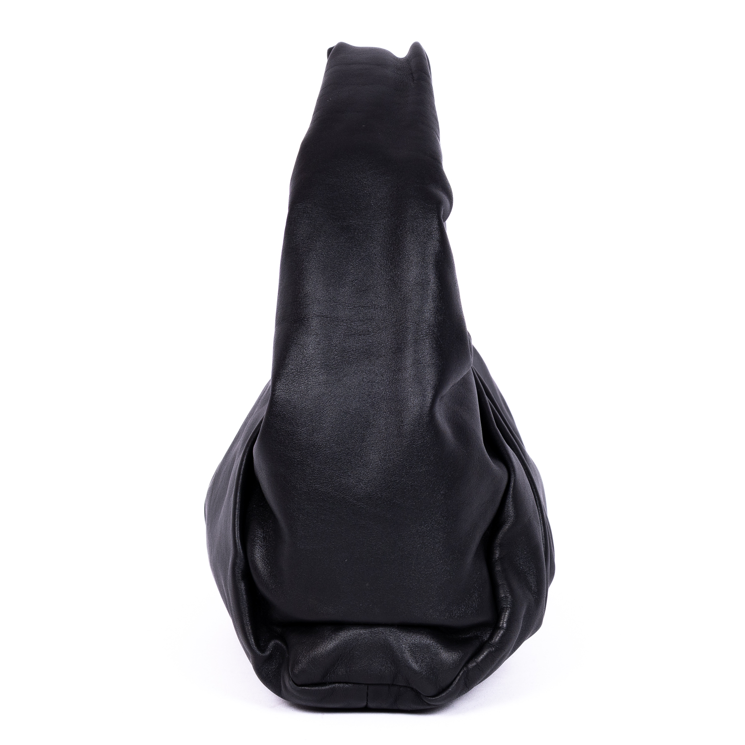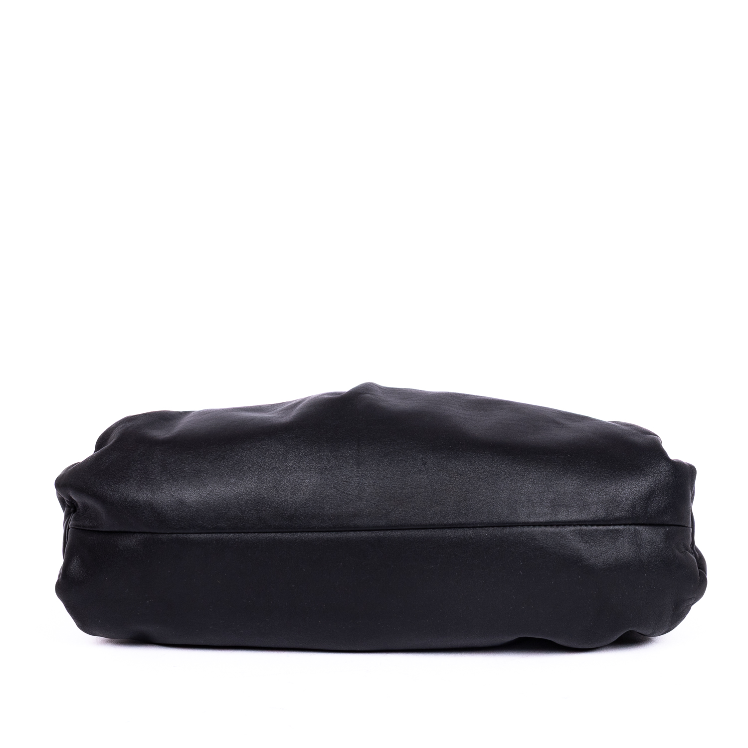 Bottega Veneta Shoulder Bag The Shoulder Pouch in Black Calfskin Leather and Silver hardware. The product is in Perfect Condition (AA).
