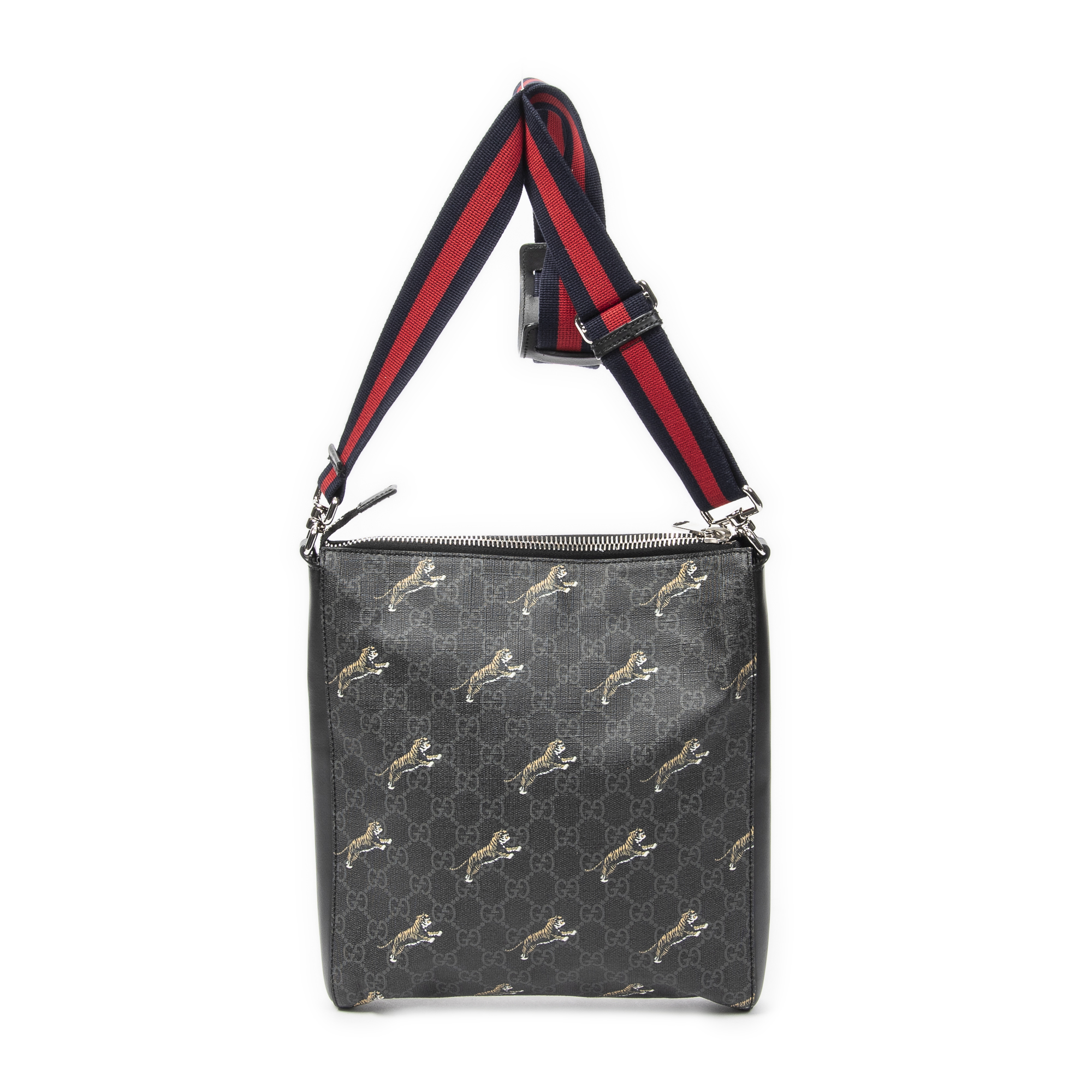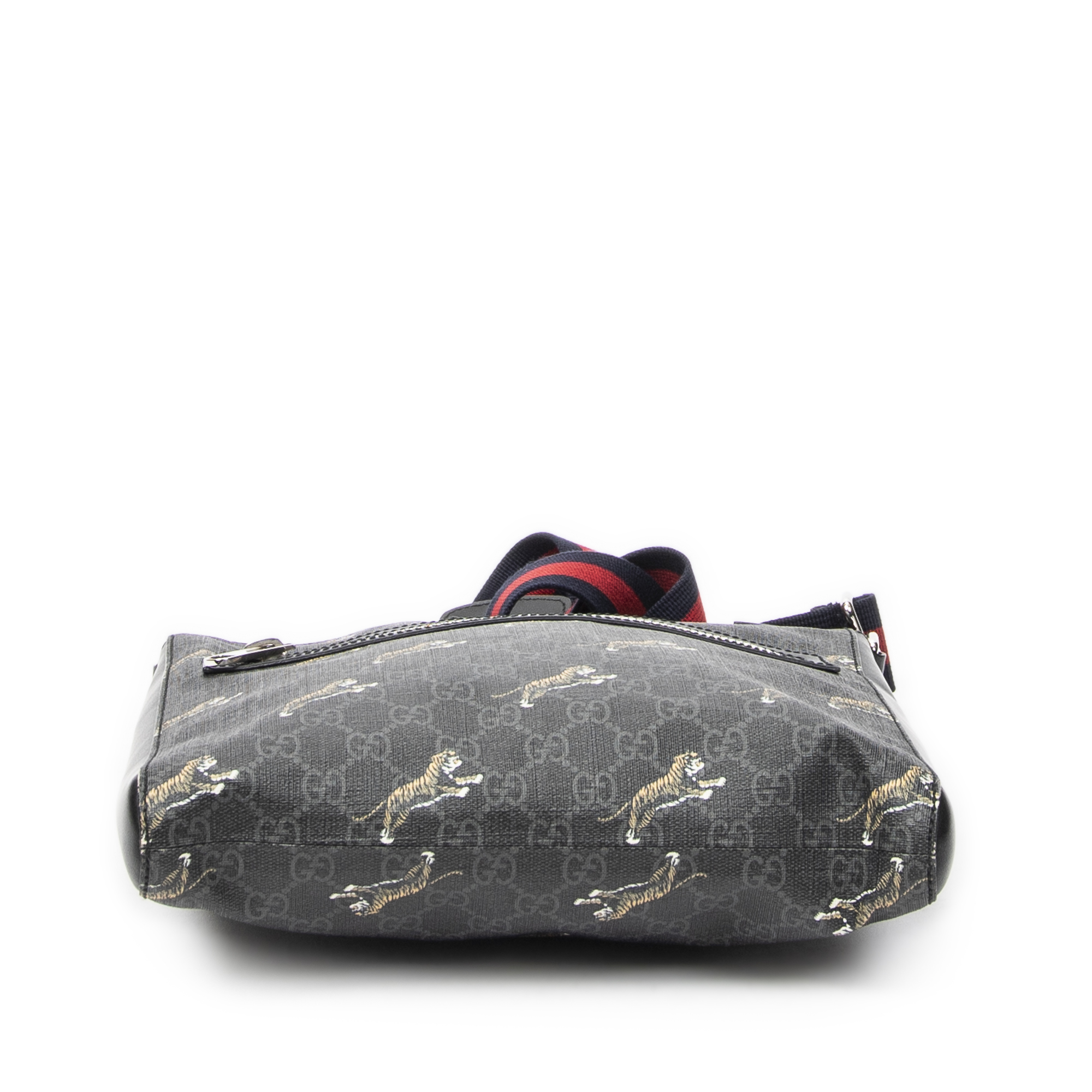 Gucci Shoulder Bag Tigers GG Square Messenger in Black Supreme Coated Canvas and Silver hardware. The product is in Excellent Condition (A).