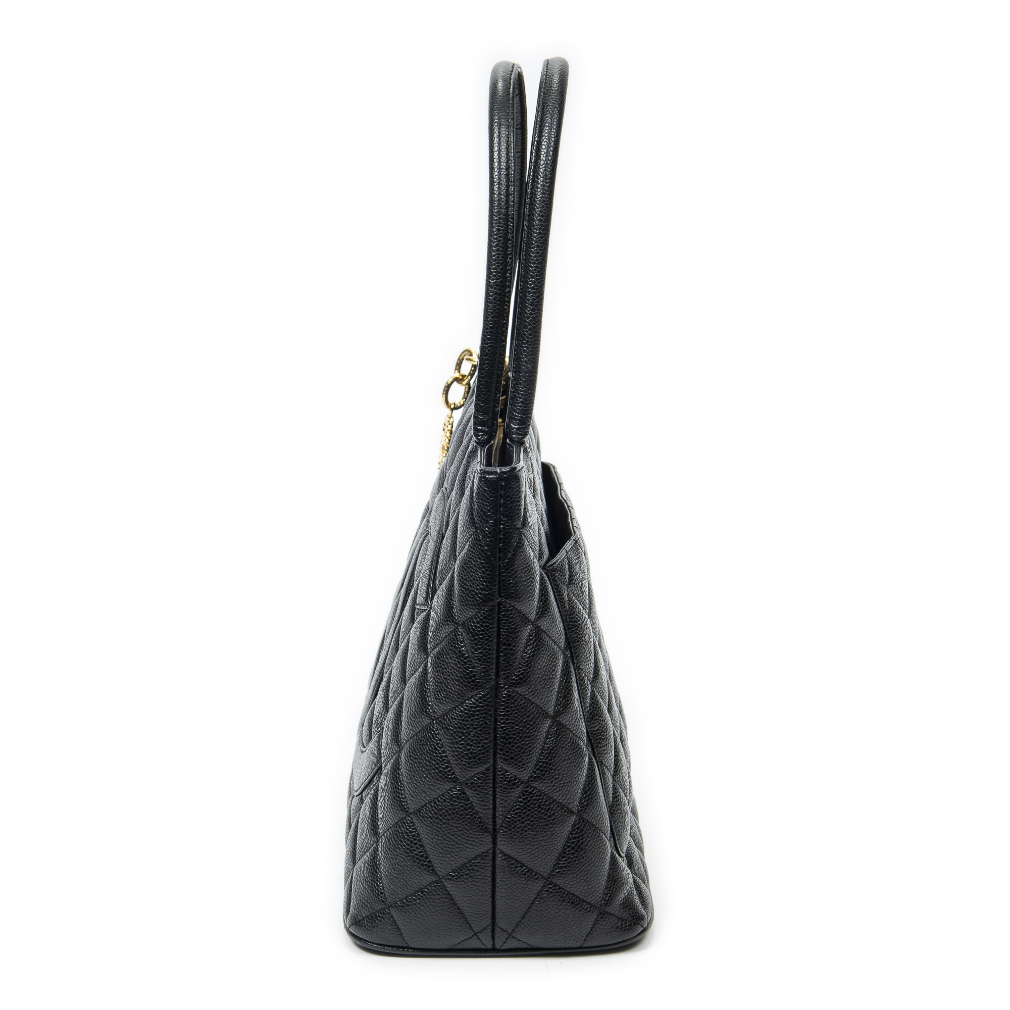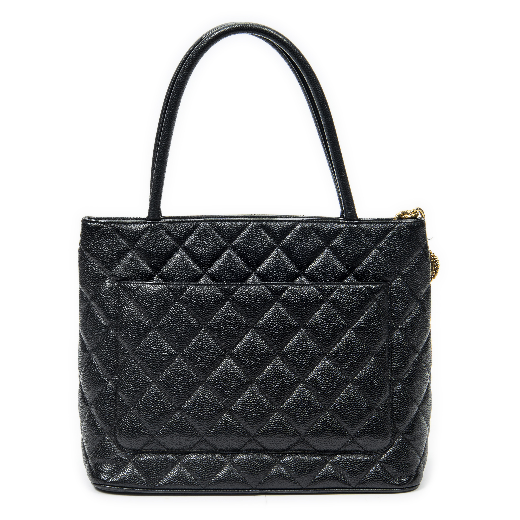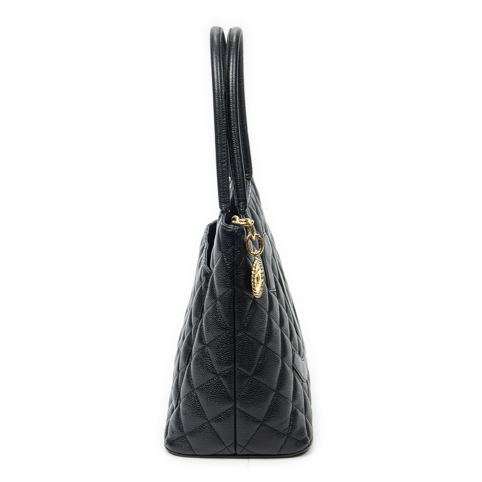 Chanel Shoulder Bag Timeless Medallion Tote in Black Quilted Caviar Leather and Gold hardware. The product is in Excellent Condition (A).