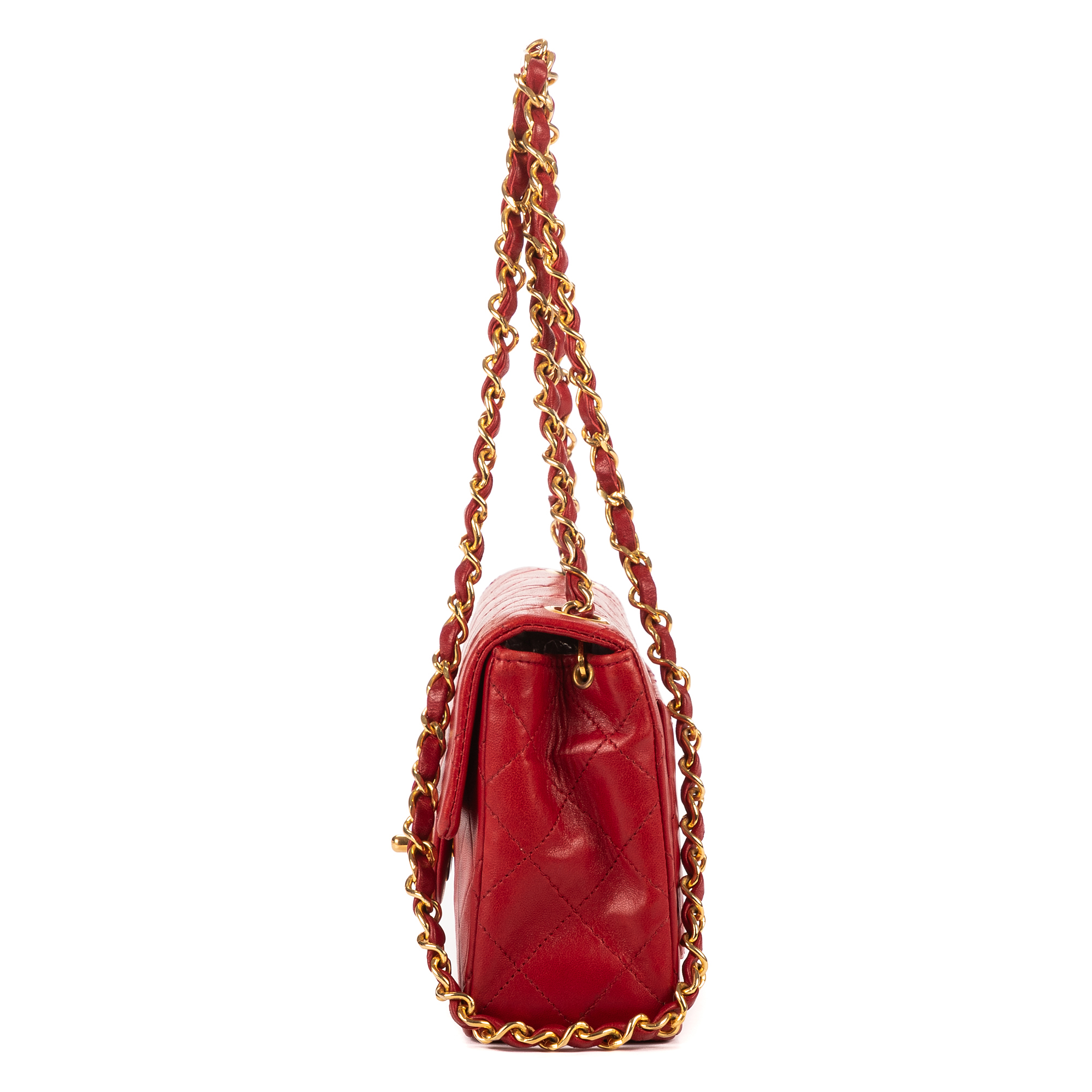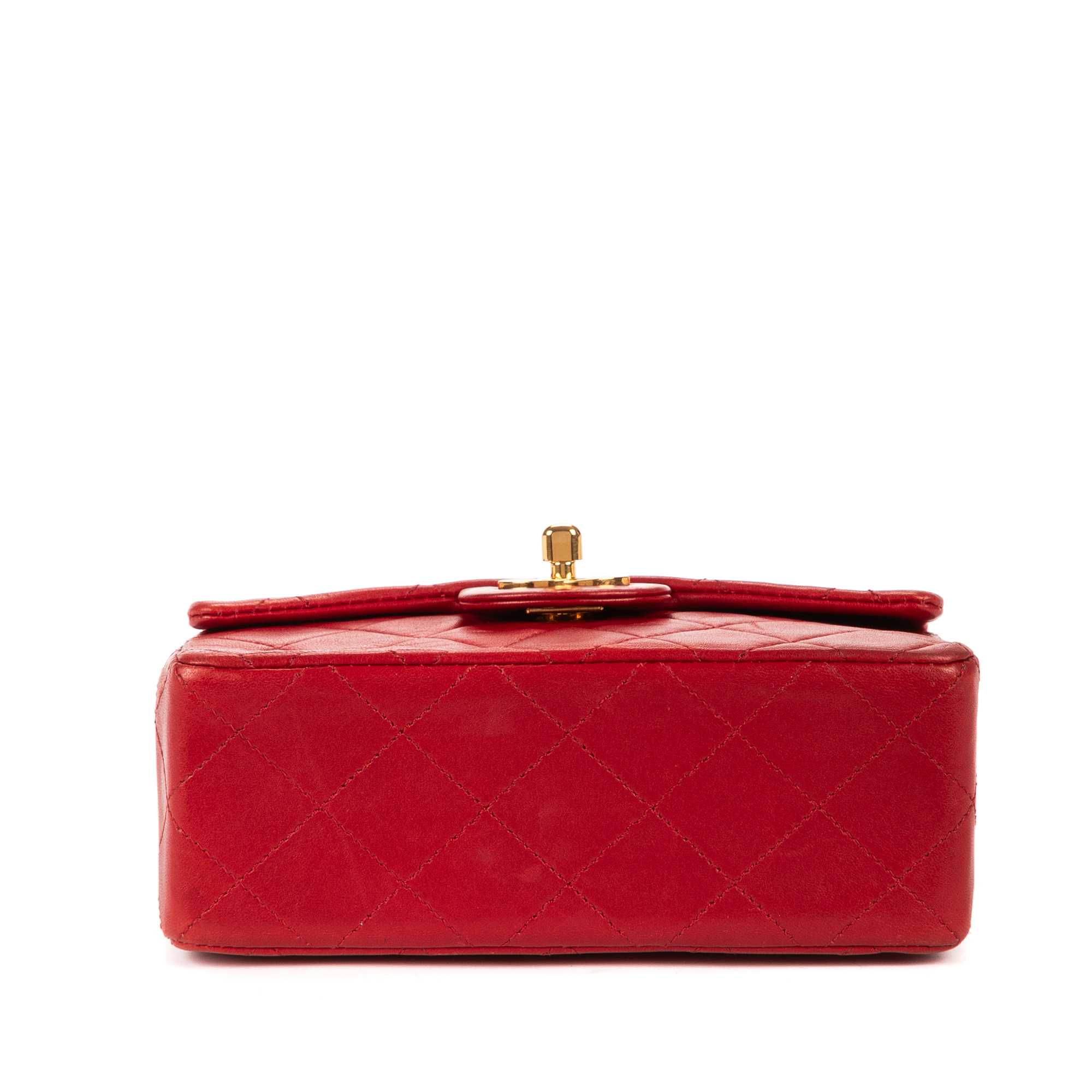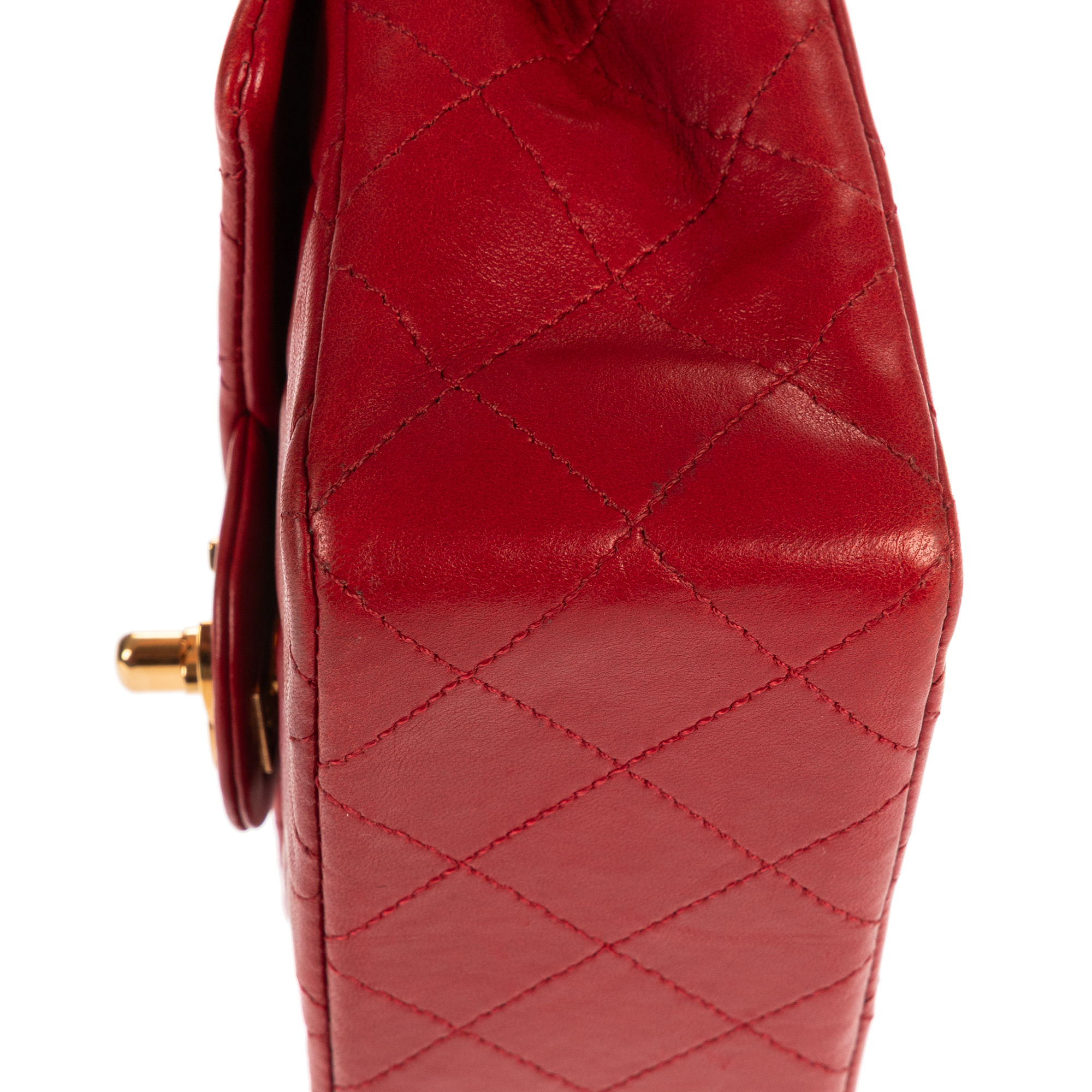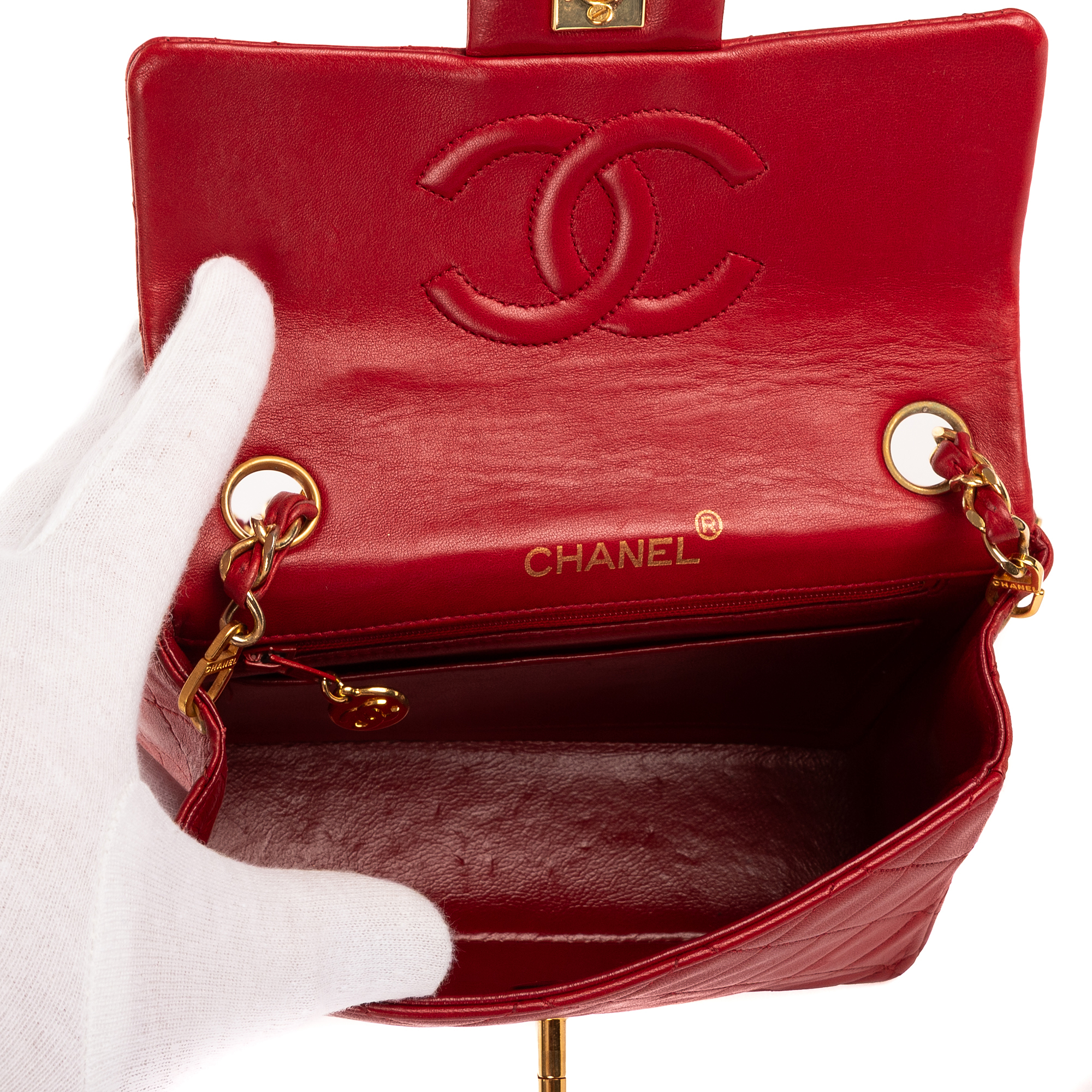Chanel Shoulder Bag Timeless Mini in Red Smooth Quilted Leather and Gold hardware. The product is in Excellent Condition (A).
