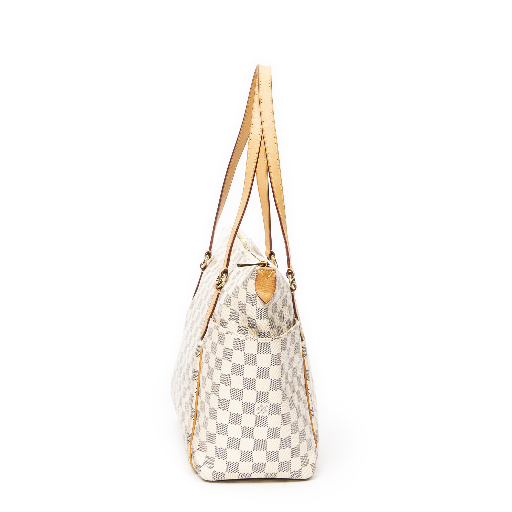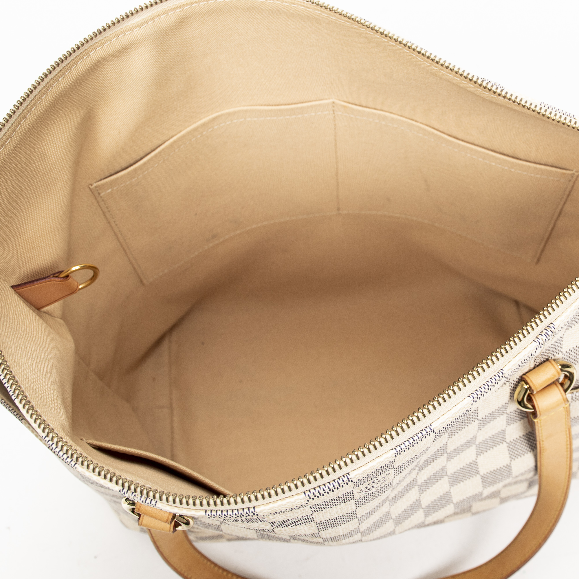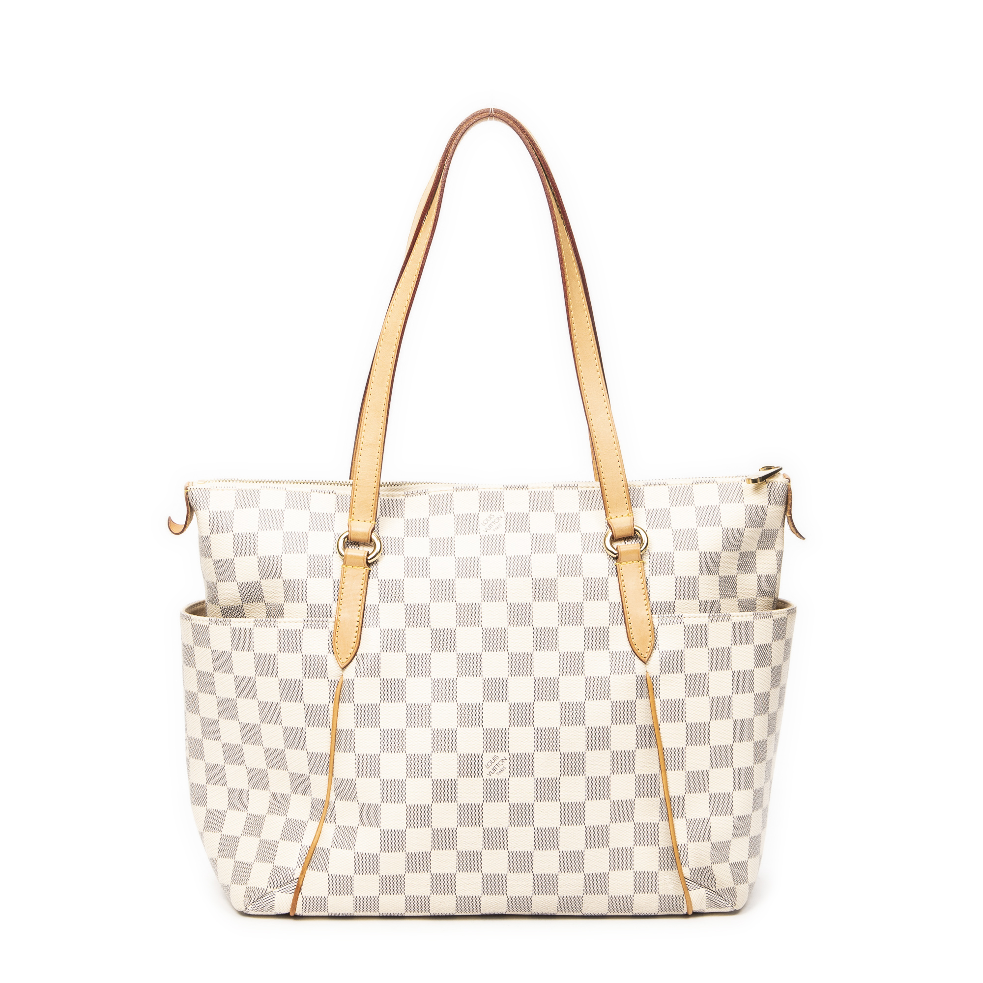 Louis Vuitton Shoulder Bag Totally MM in Ivory Damier Azur and Golden Brass hardware. The product is in Excellent Condition (A).