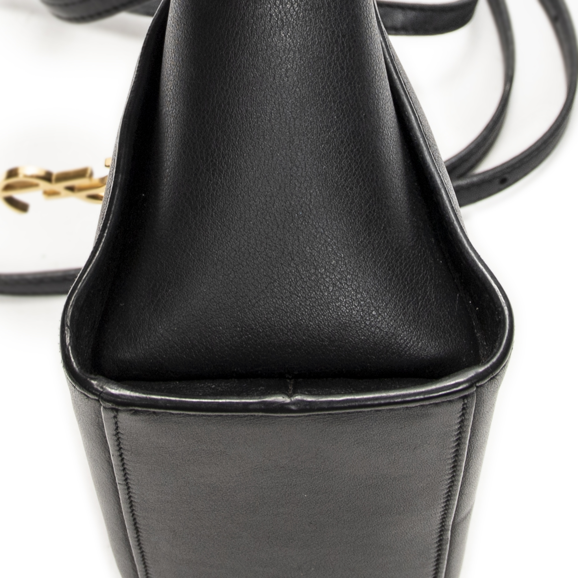 Yves Saint Laurent Shoulder Bag Toy Monogram Cabas in Black Calfskin Leather and Gold hardware. The product is in Very Good Condition (AB).