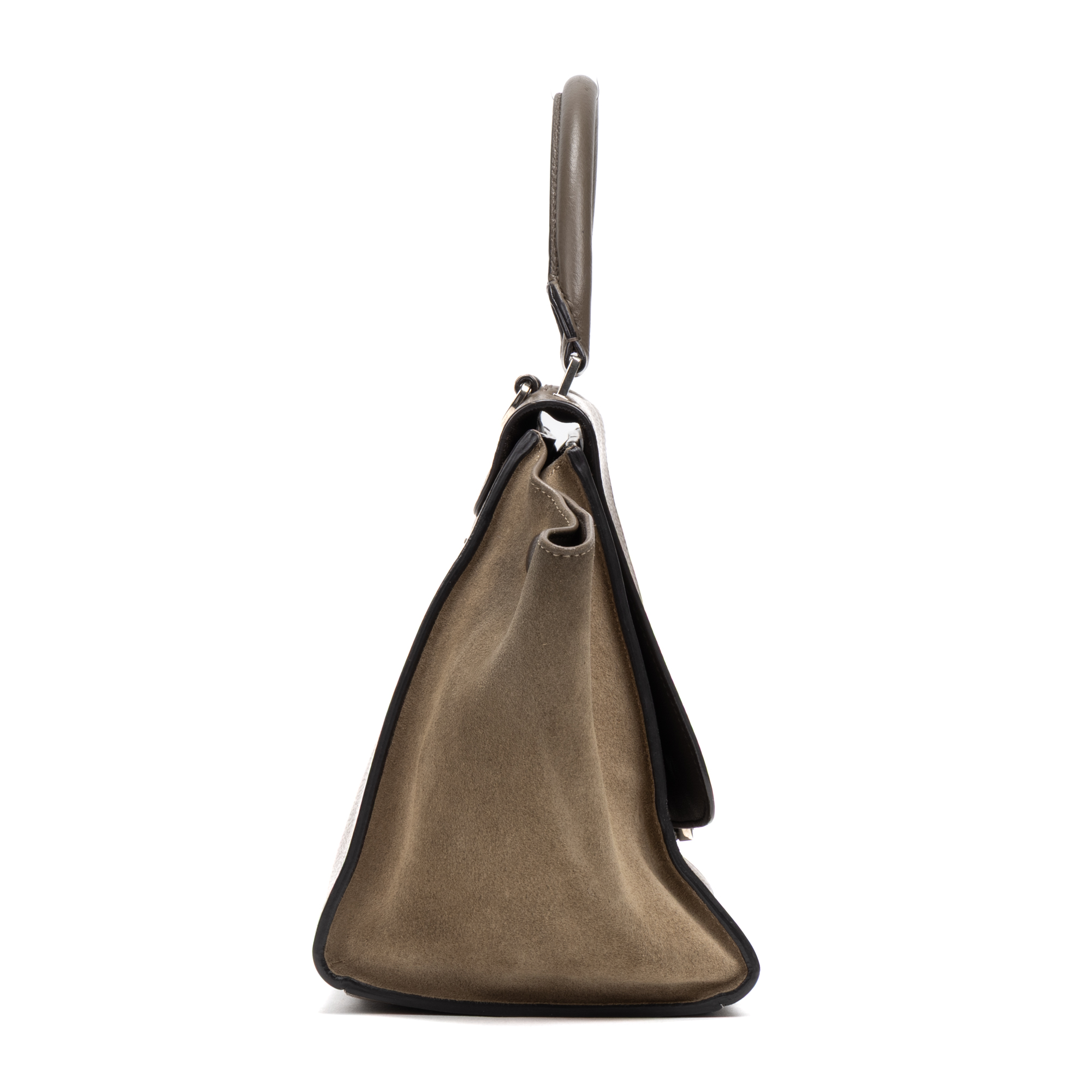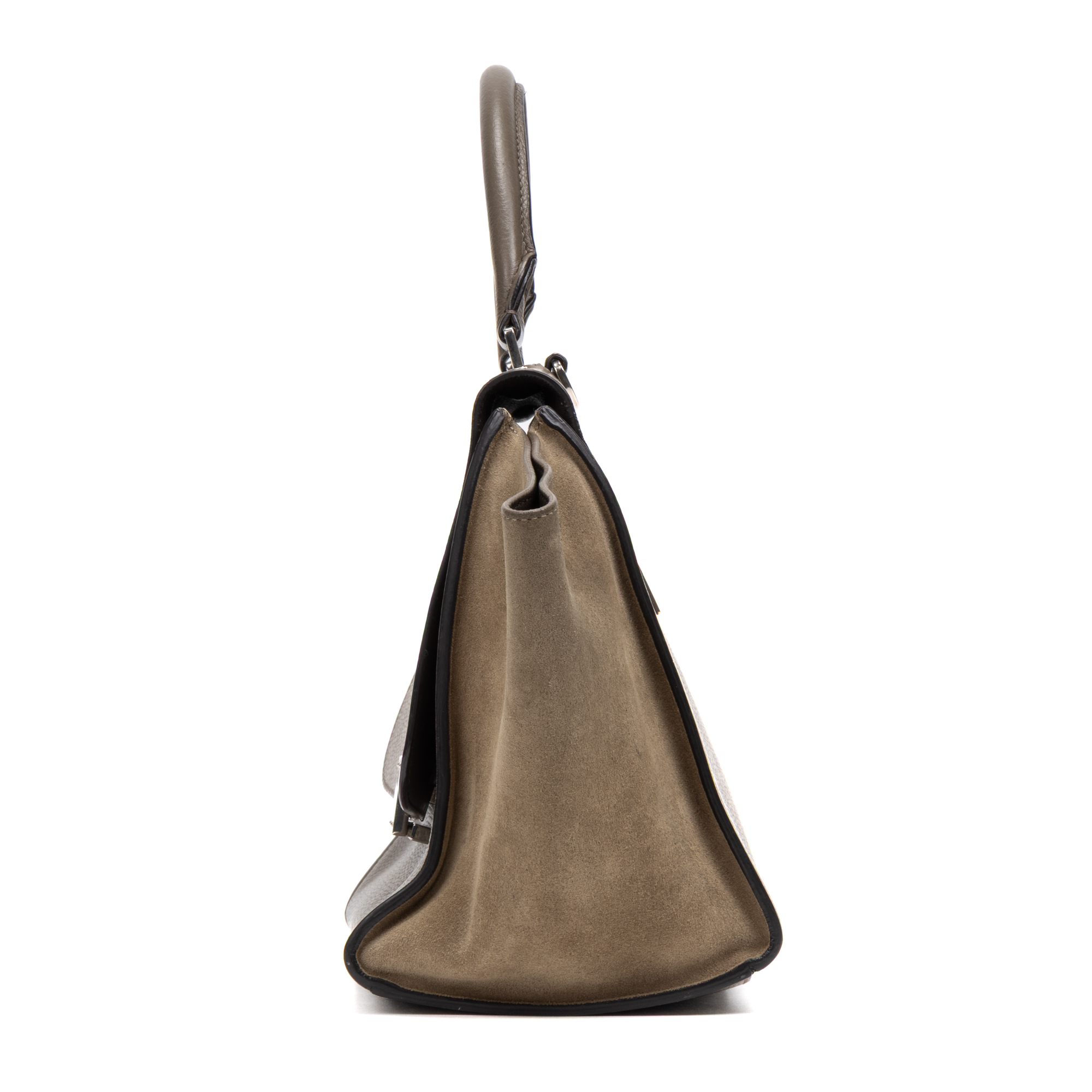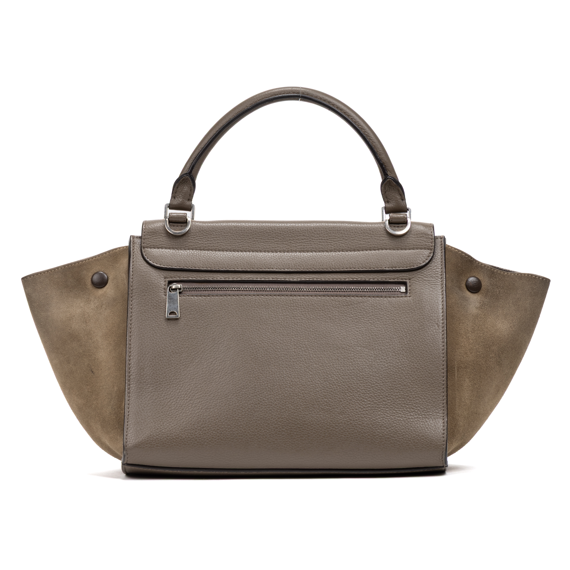 Celine Shoulder Bag Trapeze MM in Taupe Grained/Suede Leather and Silver hardware. The product is in Excellent Condition (A).