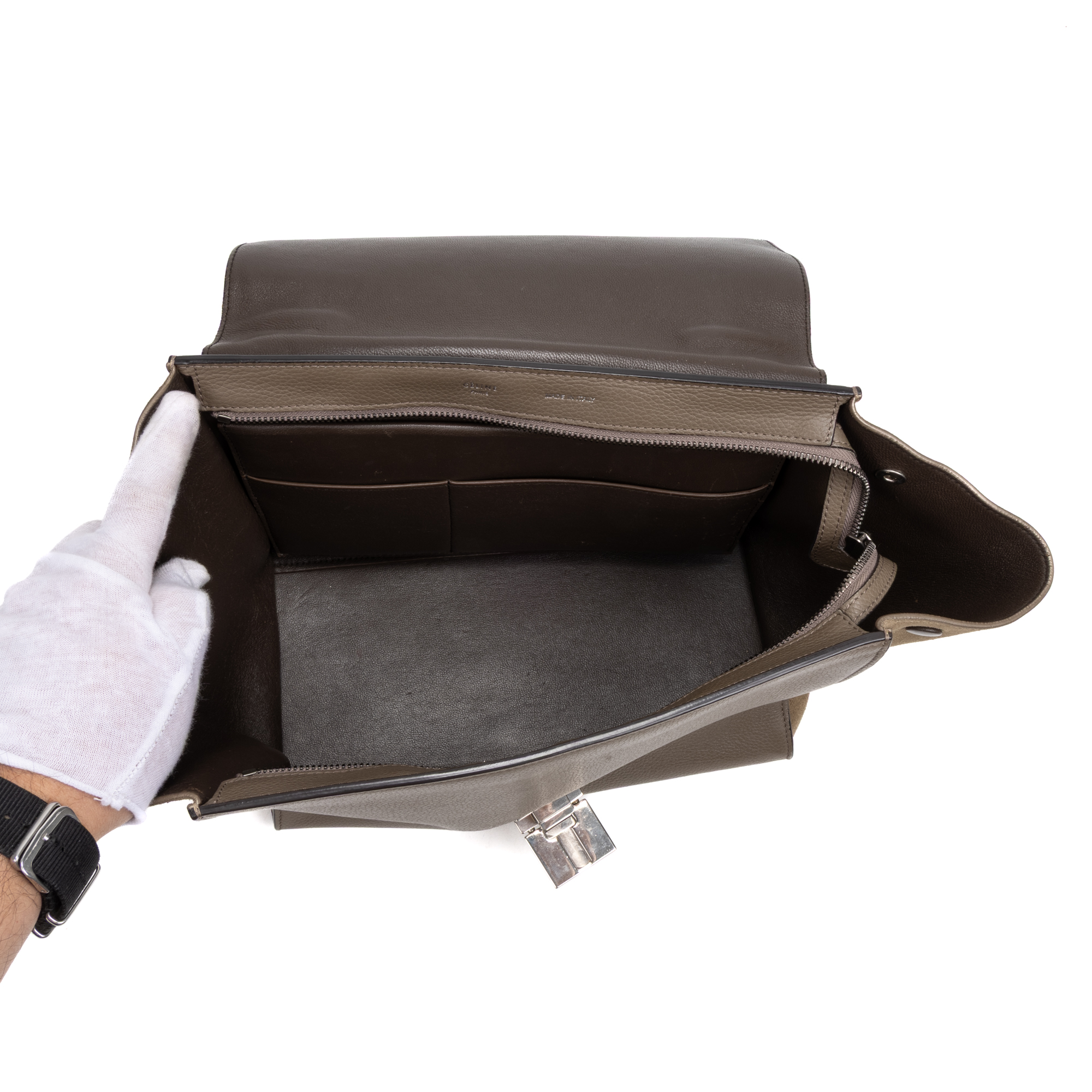 Description : Celine Shoulder Bag Trapeze MM in Taupe Grained/Suede Leather and Silver hardware. The product is in Excellent Condition (A). Dimensions: 30x25x17 cm SKU: AAL7331 Serial number: None Accessories Included: Strap Delivery: We have a 5 to 7 business days delivery policy, hassle-free and duties/tariffs included! BrandCo Paris finds rare and top condition items at great deals, they are worth your patience! Shop with confidence - All BrandCo Paris items are carefully selected and authenticated by our team of experts. All the items come with an authenticity certificate and packaging delivered by BrandCo Paris. Item Condition Grading Table N (Like New) AA (Perfect Condition) A (Excellent Condition) AB (Very Good Condition) B (Good/Fair)