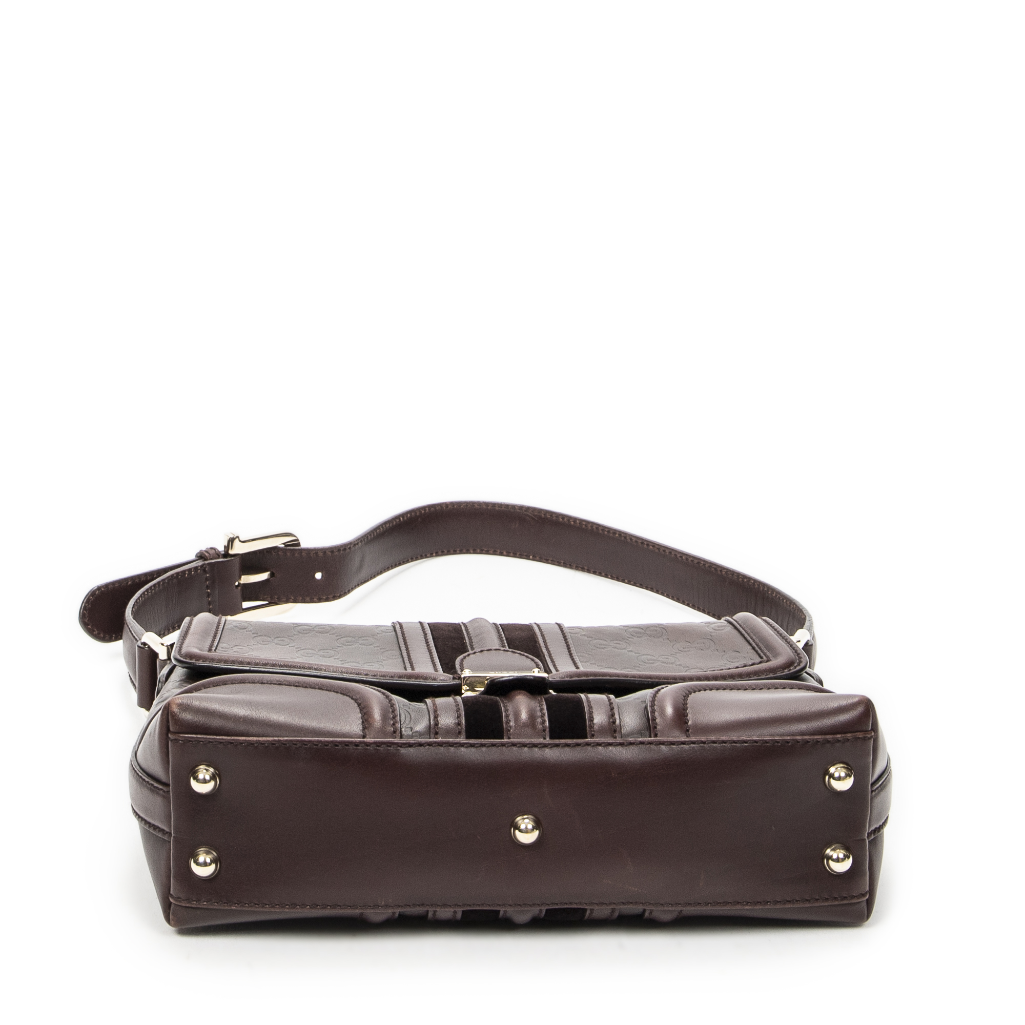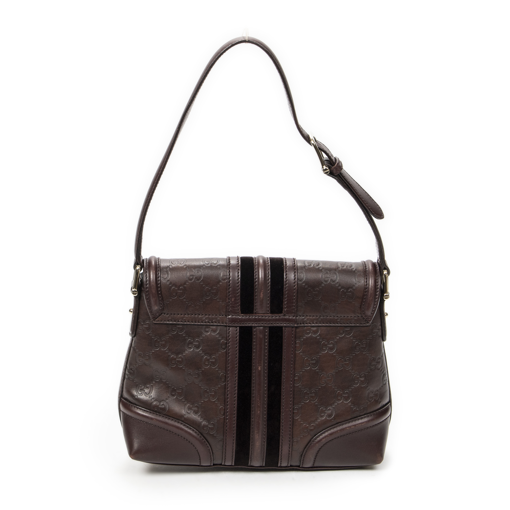 Gucci Shoulder Bag Treasure Flap in Plum Guccissima Leather and Gold hardware. The product is in Excellent Condition (A).