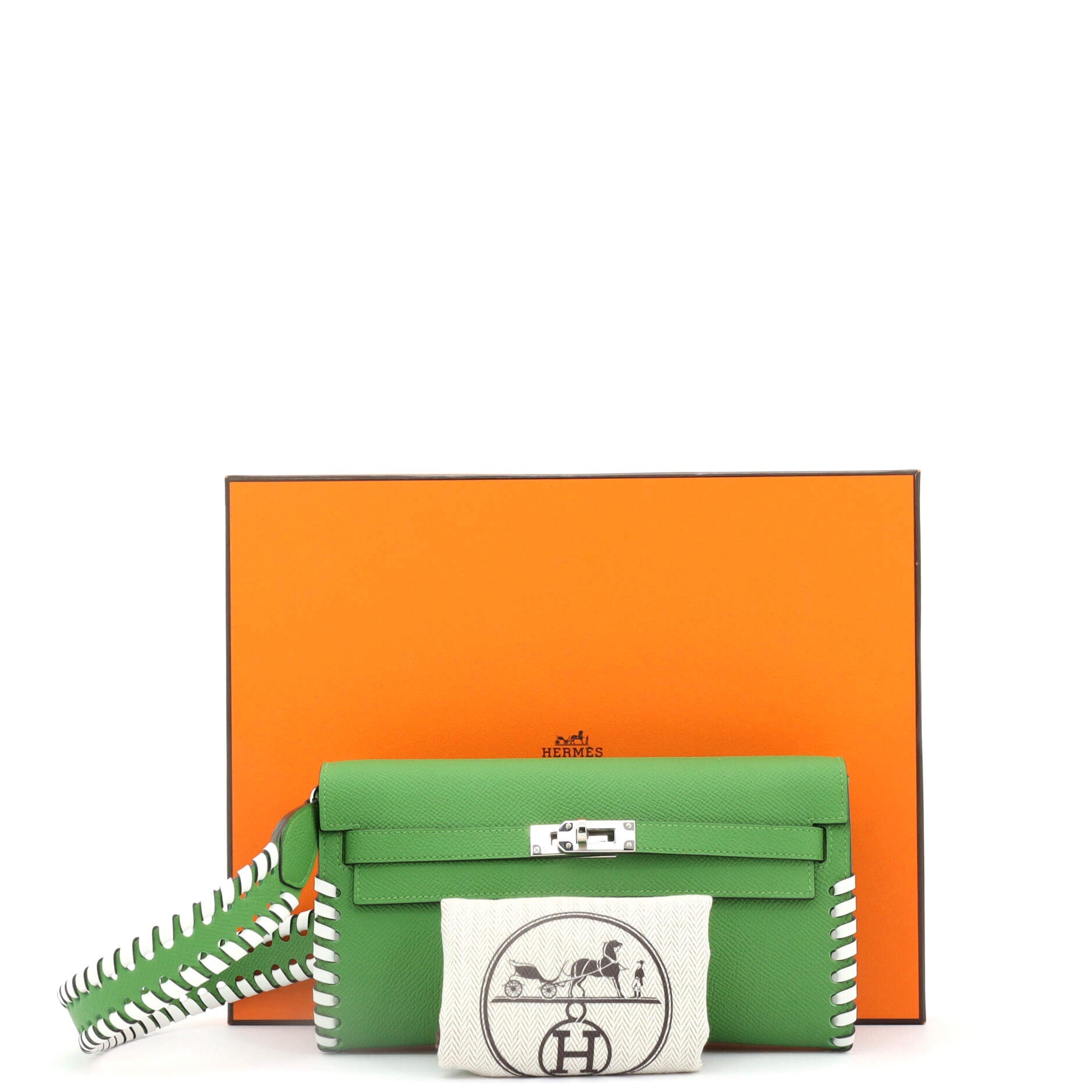 Hermès Shoulder Bag Tressage Kelly to Go Wallet in Green Epsom Leather and Palladium hardware. The product is in Perfect Condition (AA).