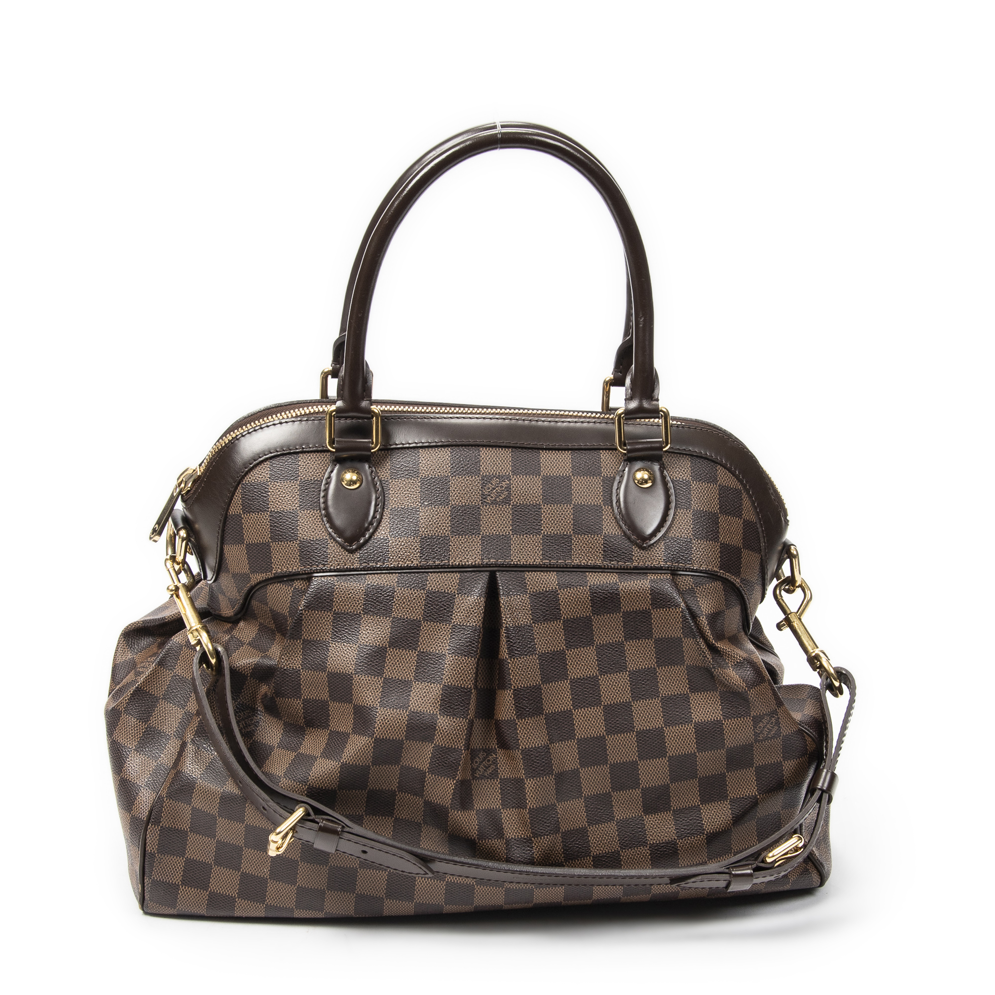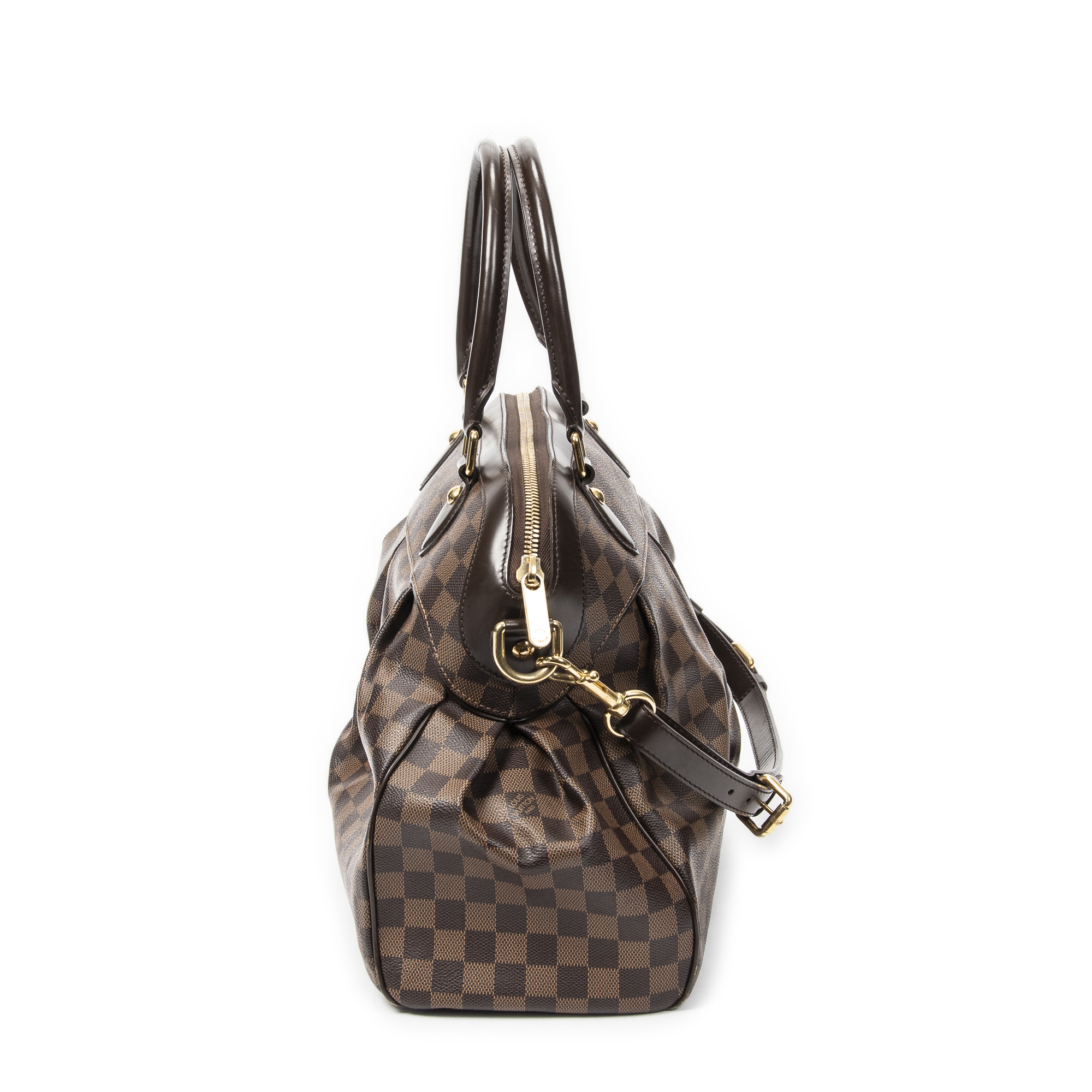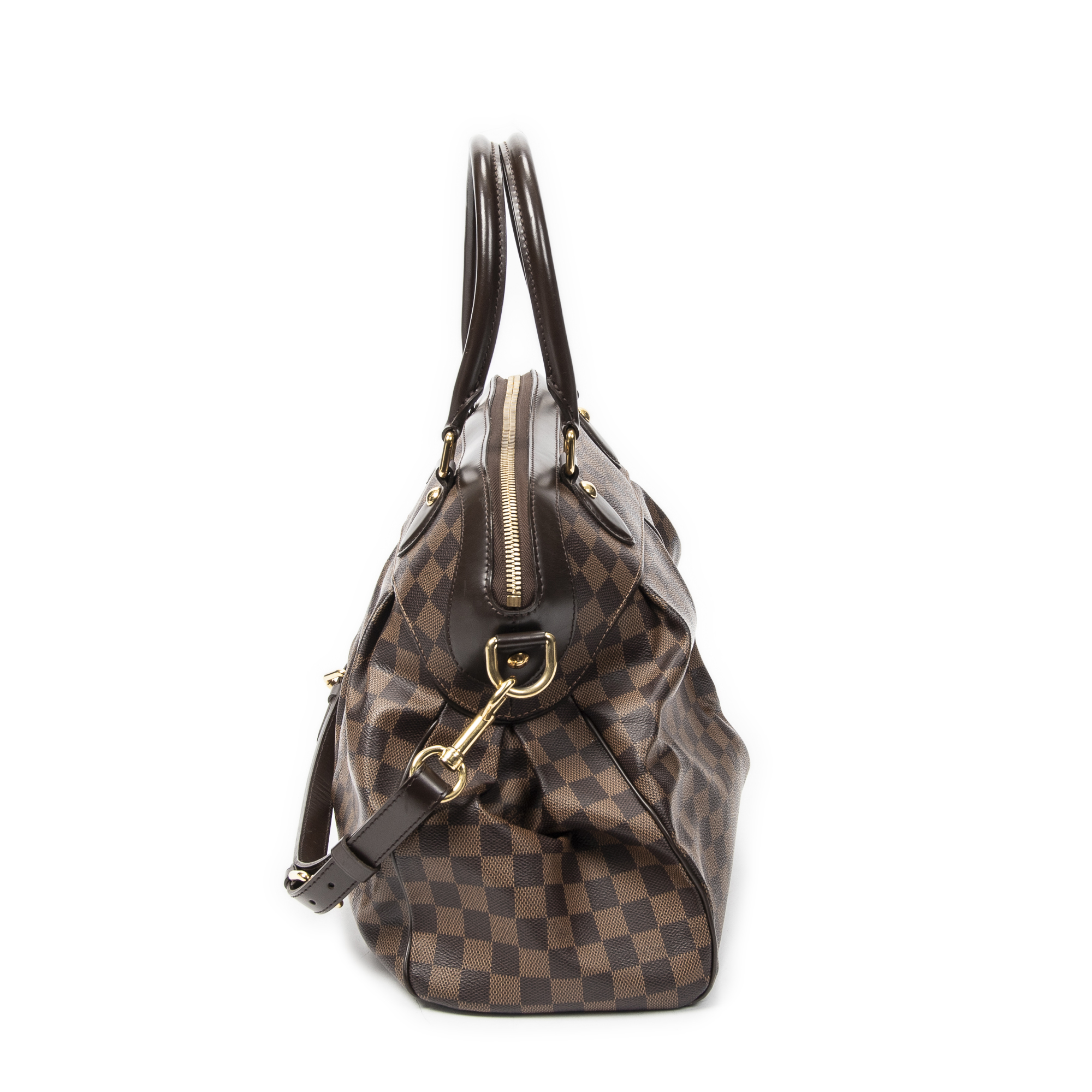 Louis Vuitton Shoulder Bag Trevi GM in Brown Damier Ebene and Golden Brass hardware. The product is in Excellent Condition (A).
