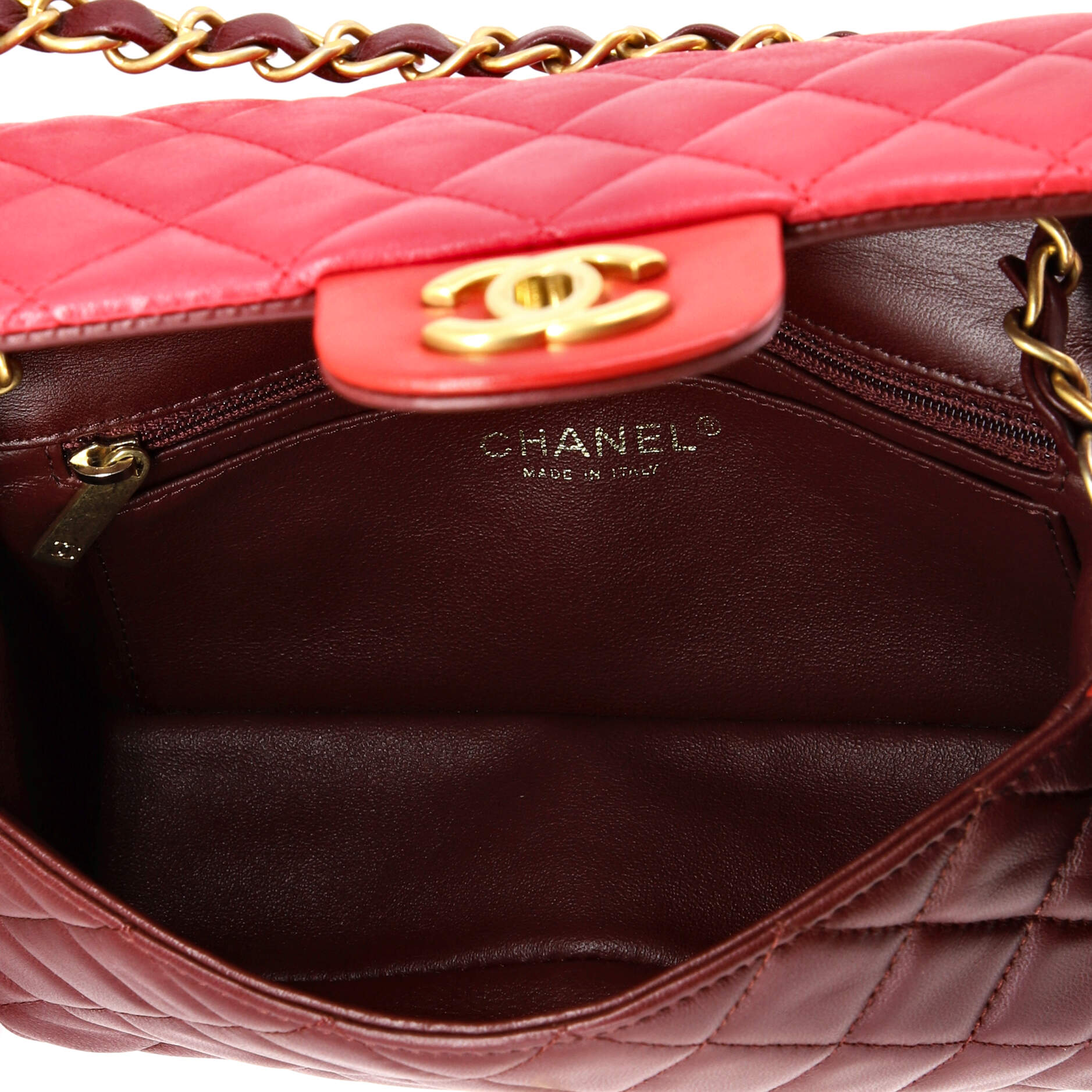 Chanel Shoulder Bag Tricolor Classic Single Flap Mini in Pink/Red/Brown Lambskin Quilted Leather and Gold hardware. The product is in Excellent Condition (A).