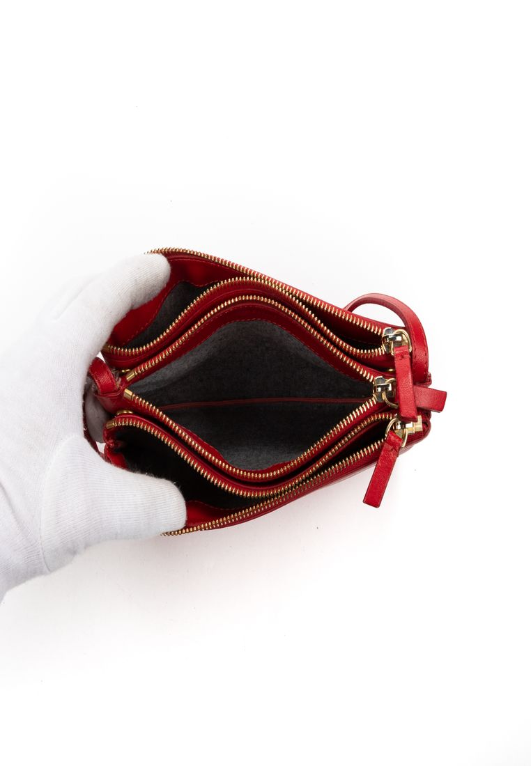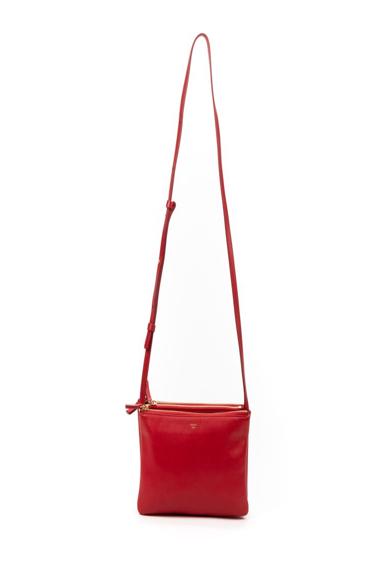 Celine Shoulder Bag Trio in Red Smooth Leather and Gold hardware. The product is in Very Good Condition (AB).