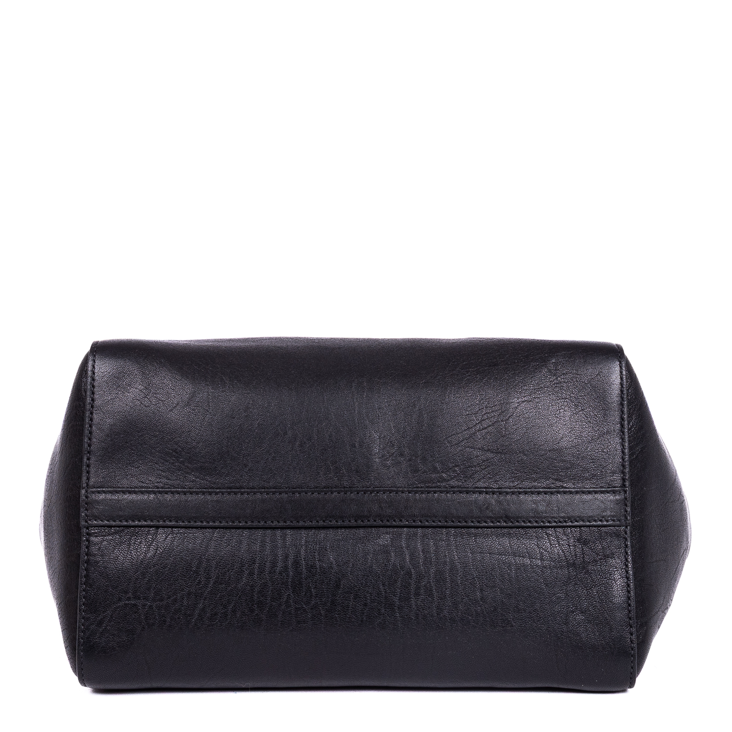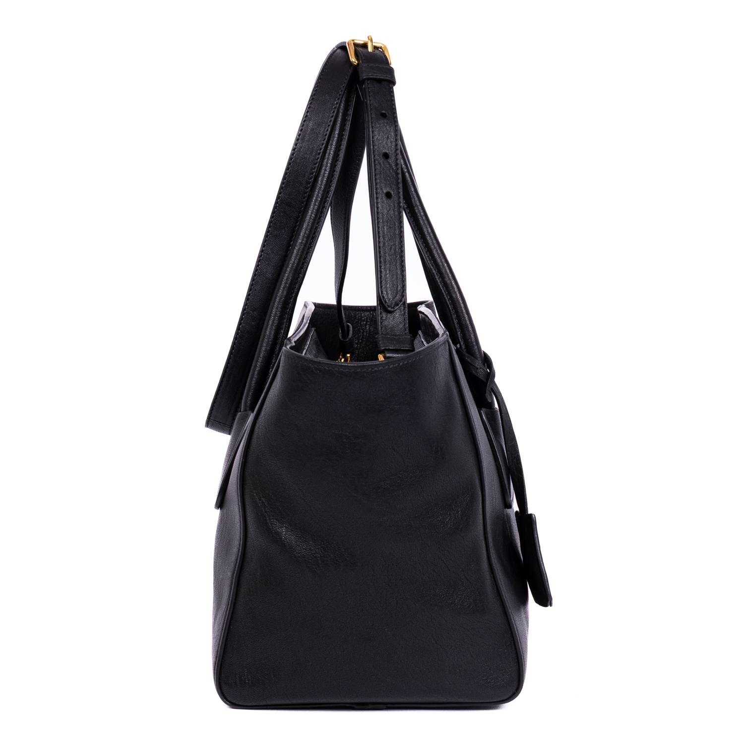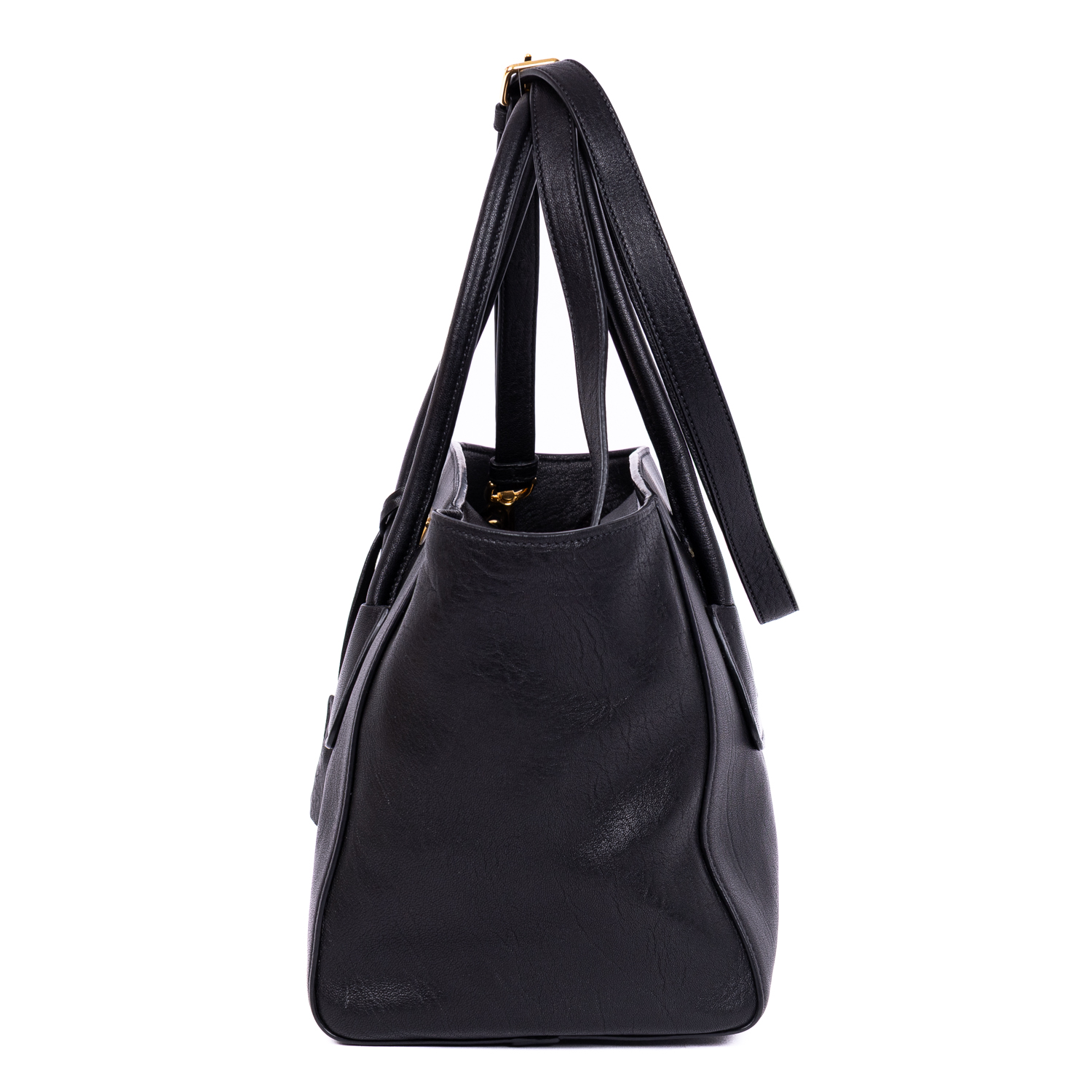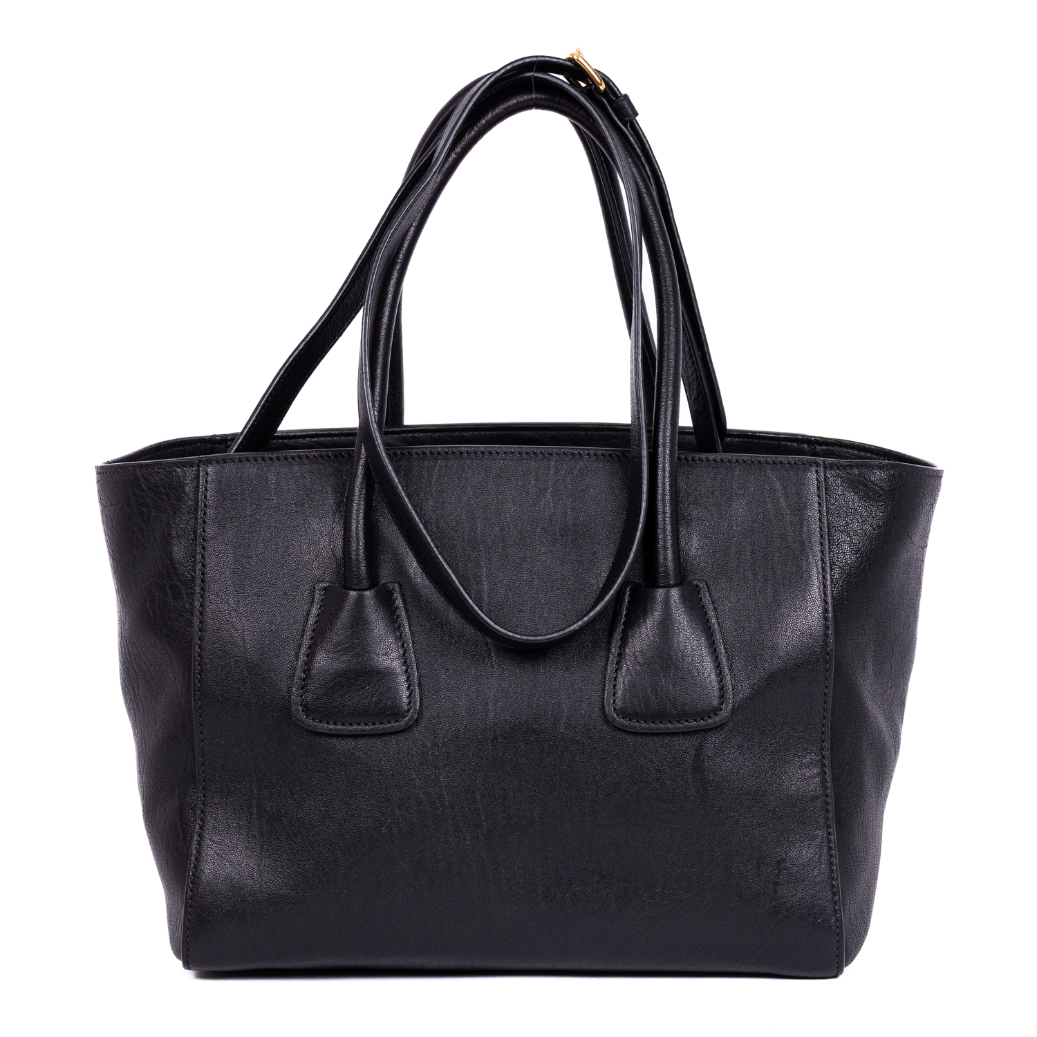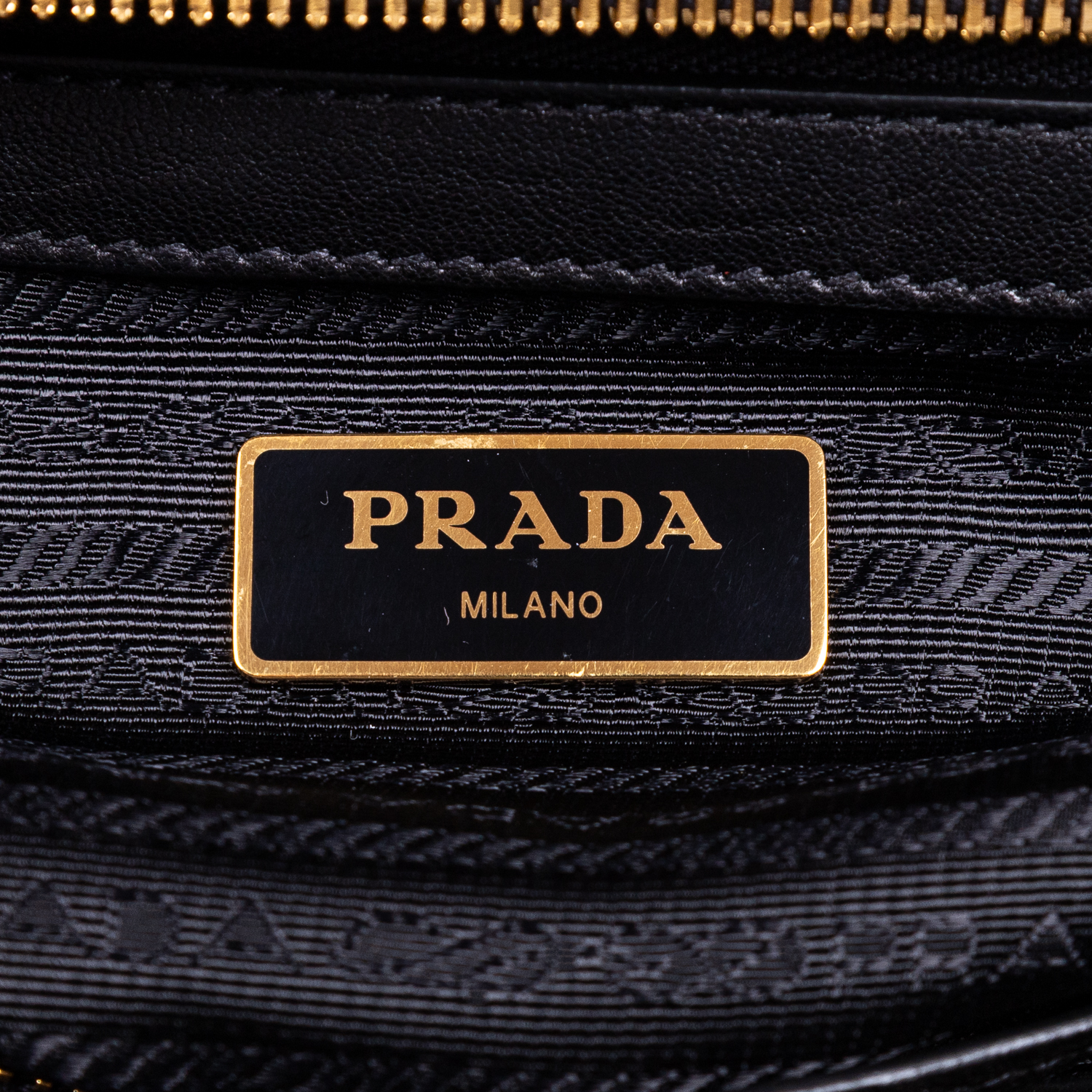 Prada Shoulder Bag Twin Pocket Double Handle Tote in Black Goatskin Leather and Gold hardware. The product is in Excellent Condition (A).